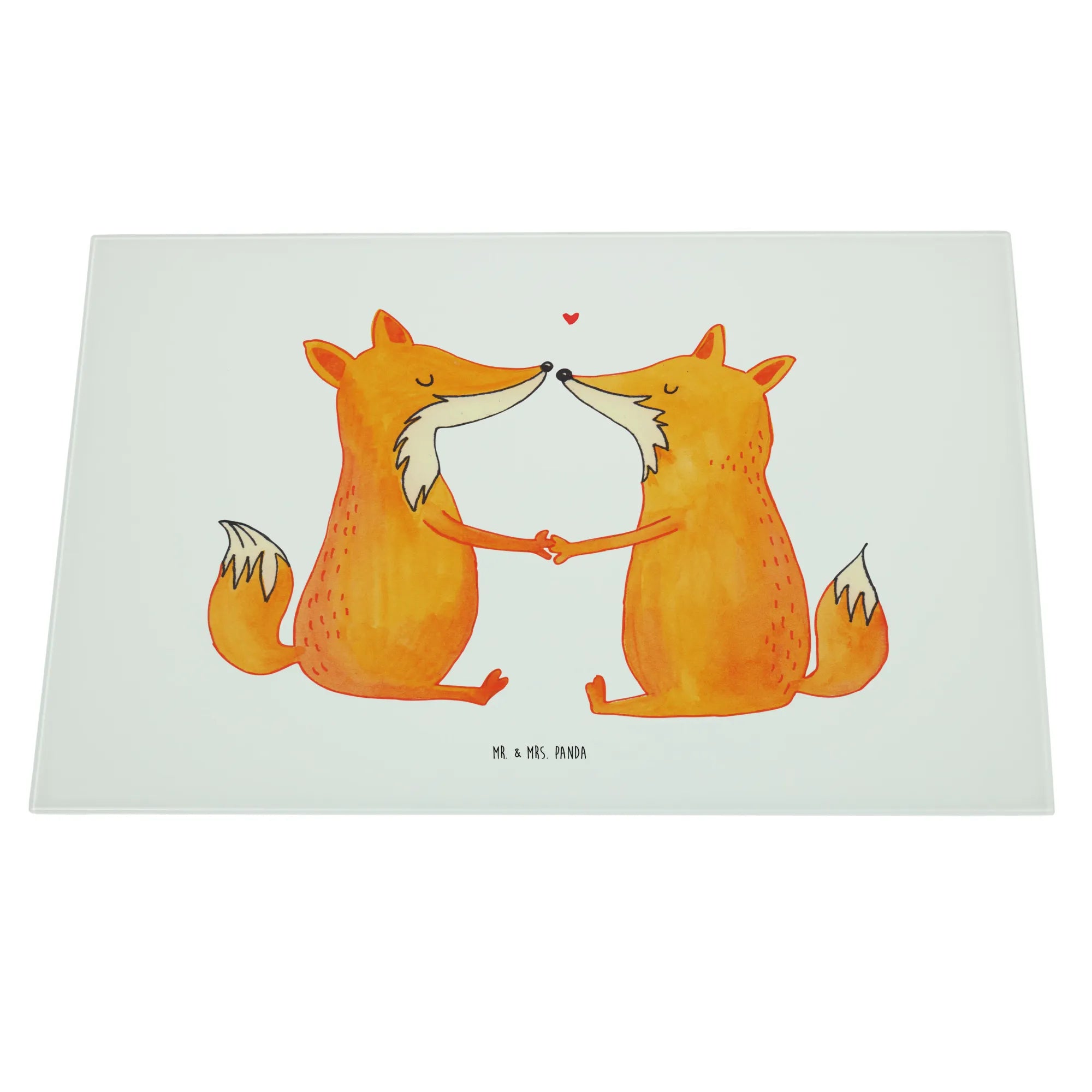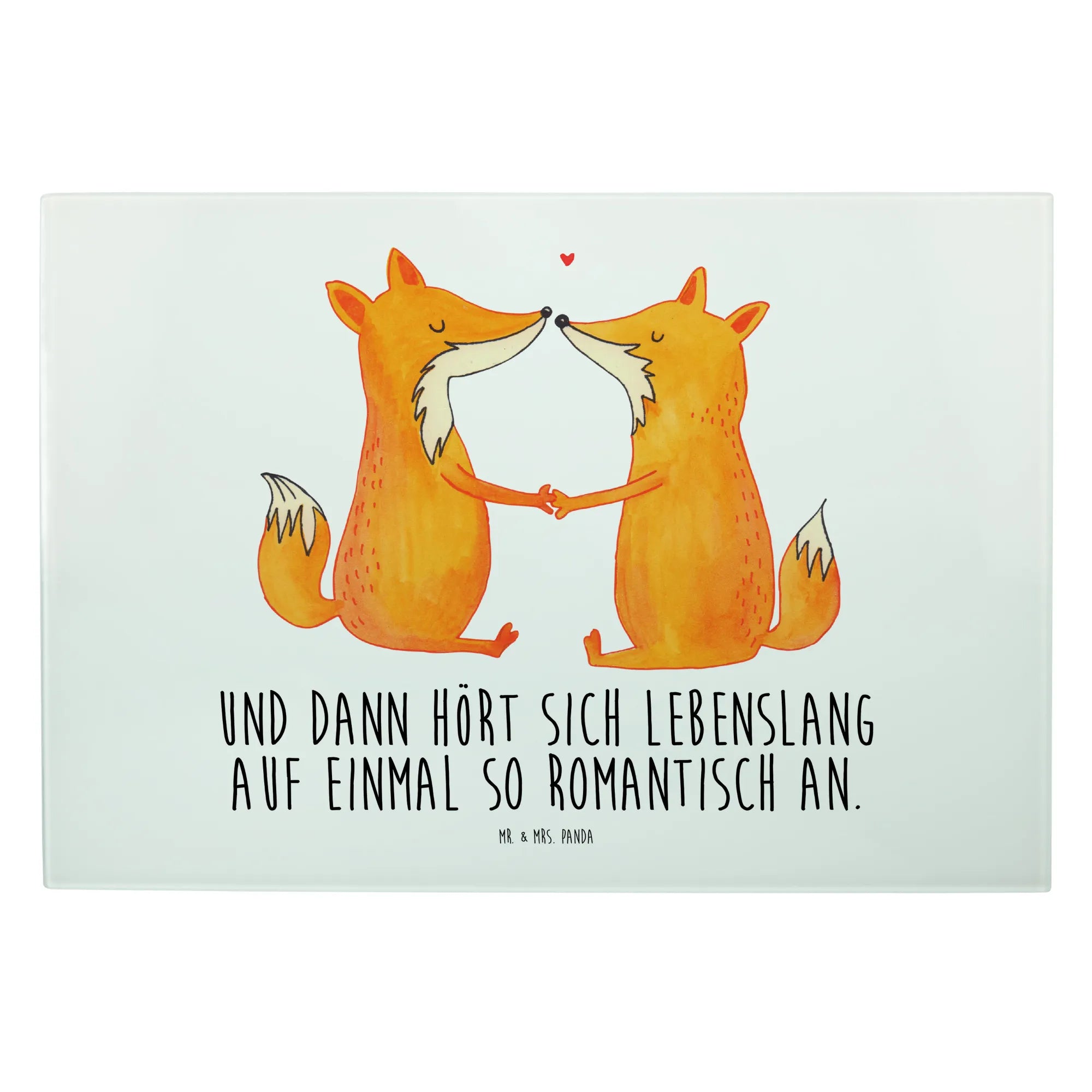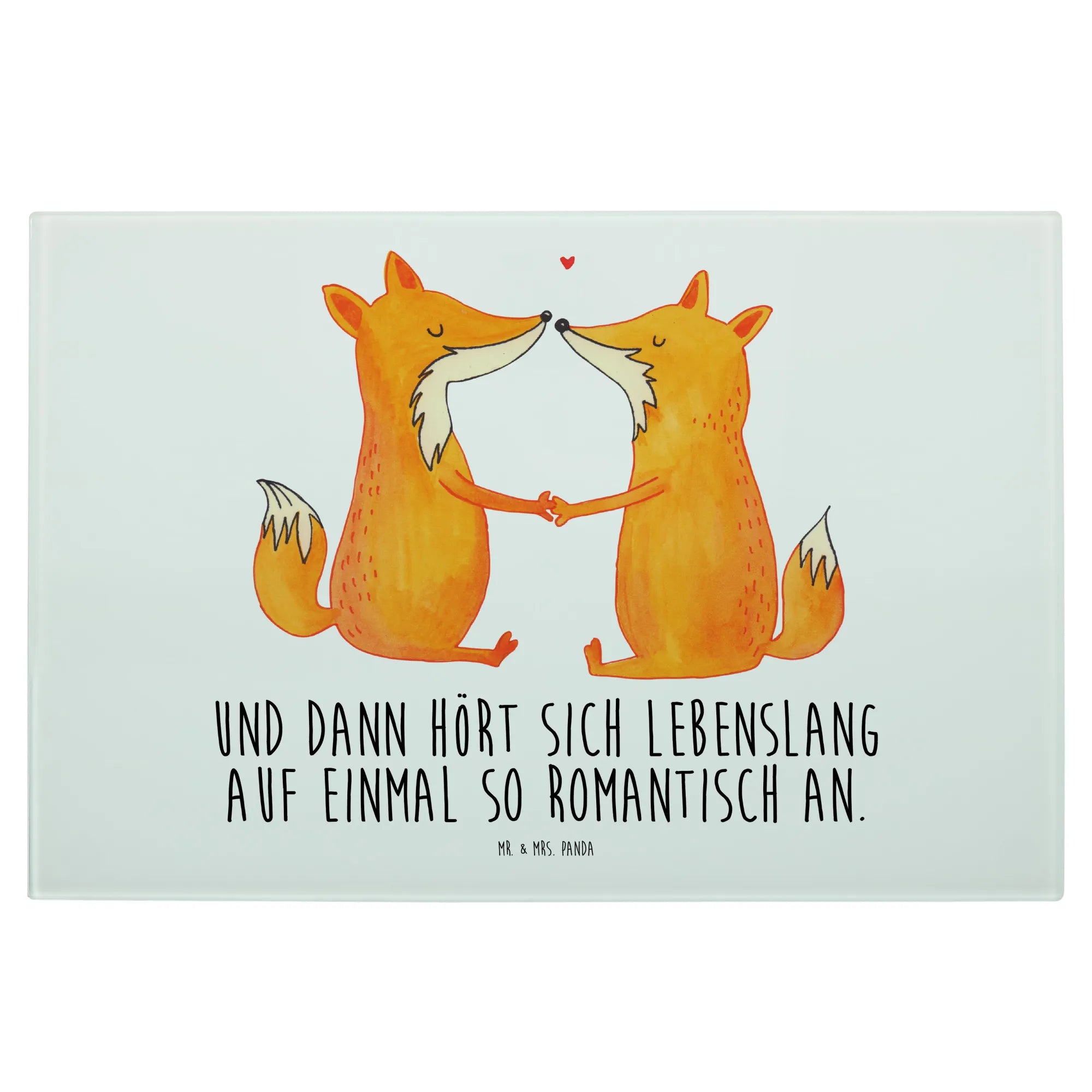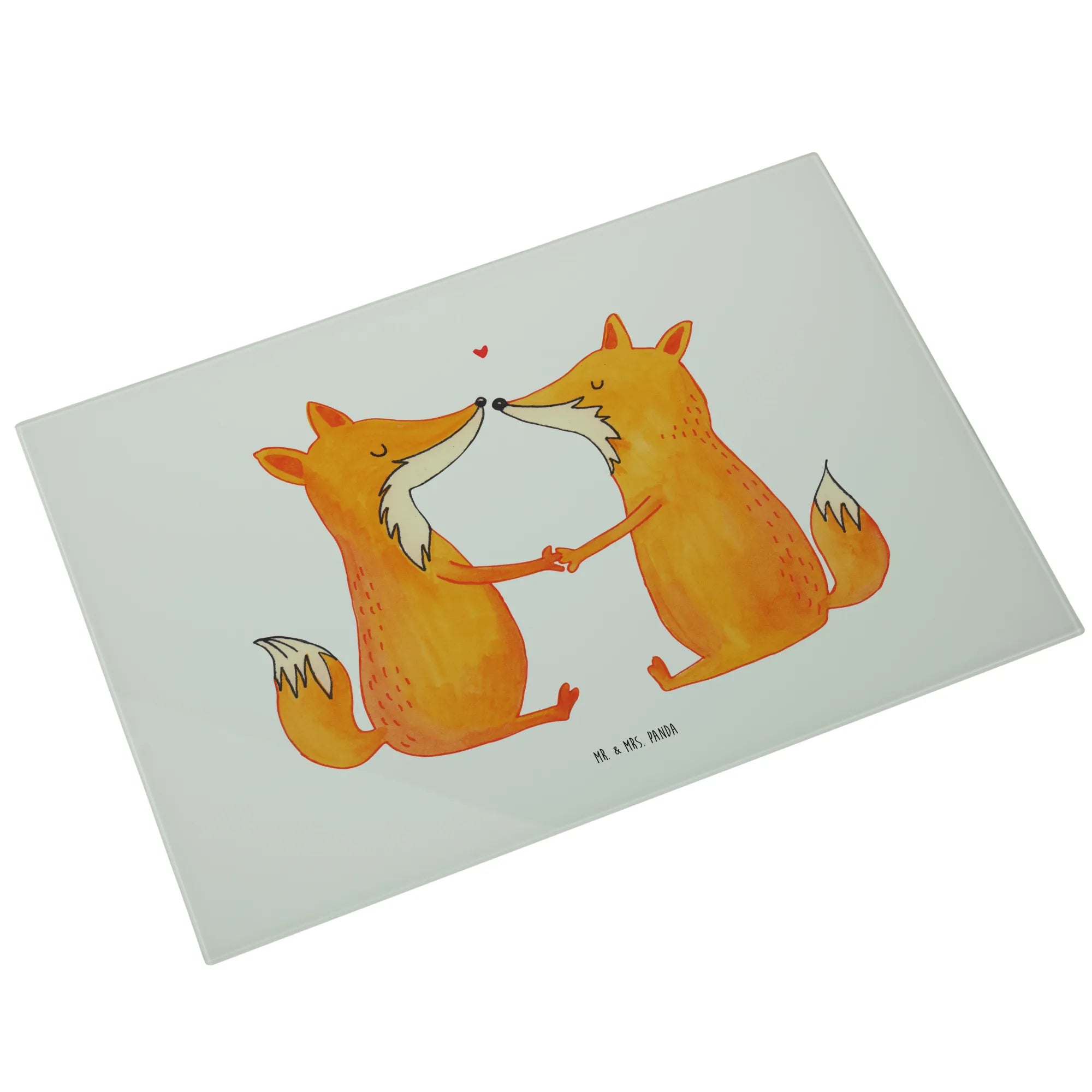 Das XL Glas Schneidbrett "Füchse Liebe" von Mr. & Mrs. Panda ist der perfekte Begleiter für alle, die in ihrer Küche einen Hauch von Romantik verbreiten möchten.