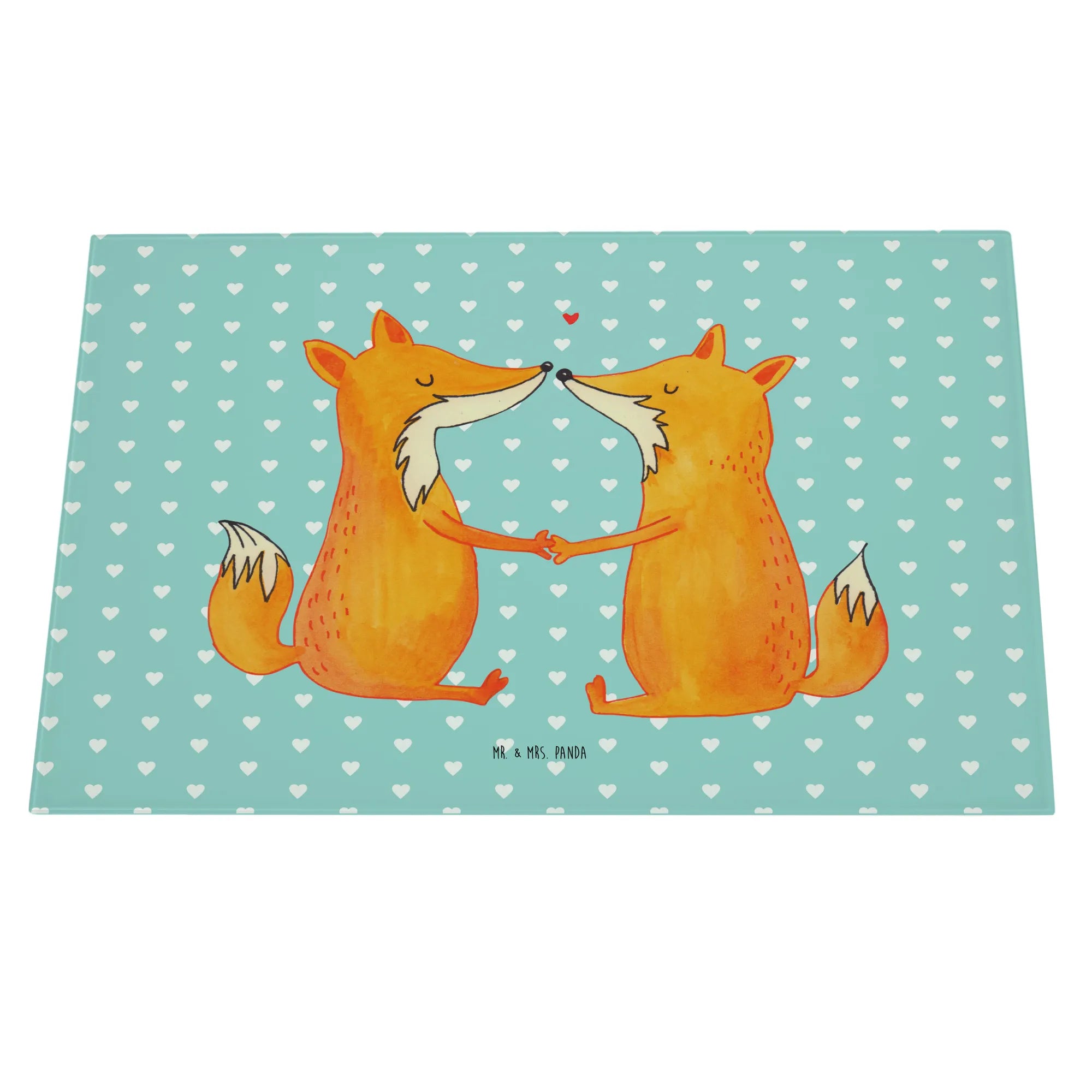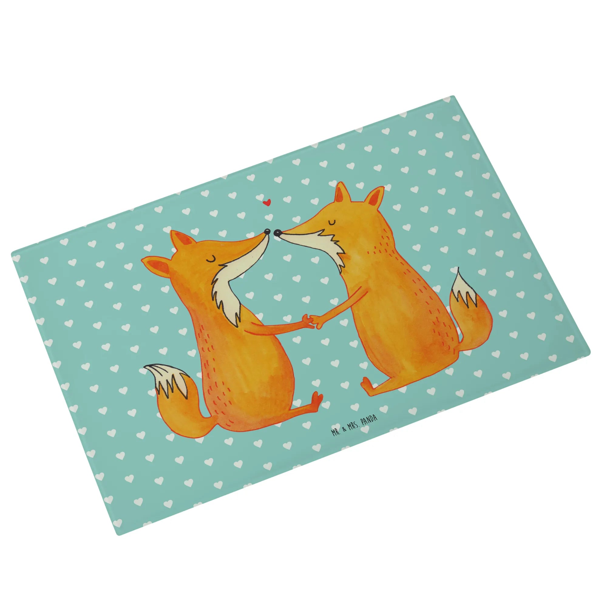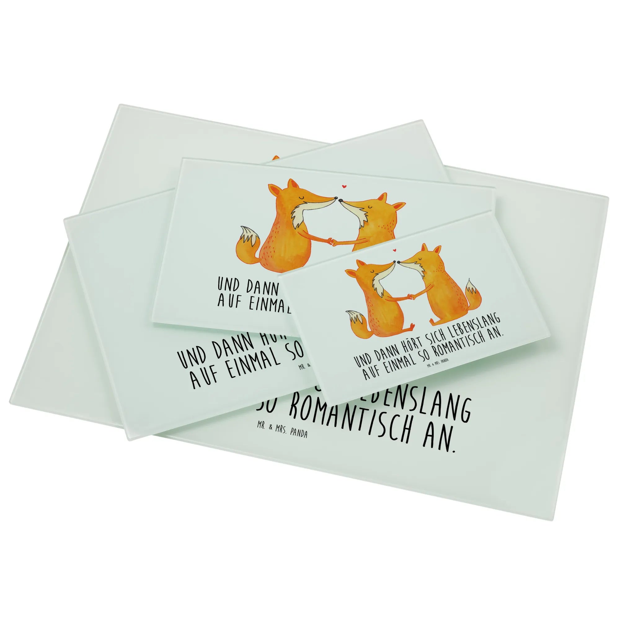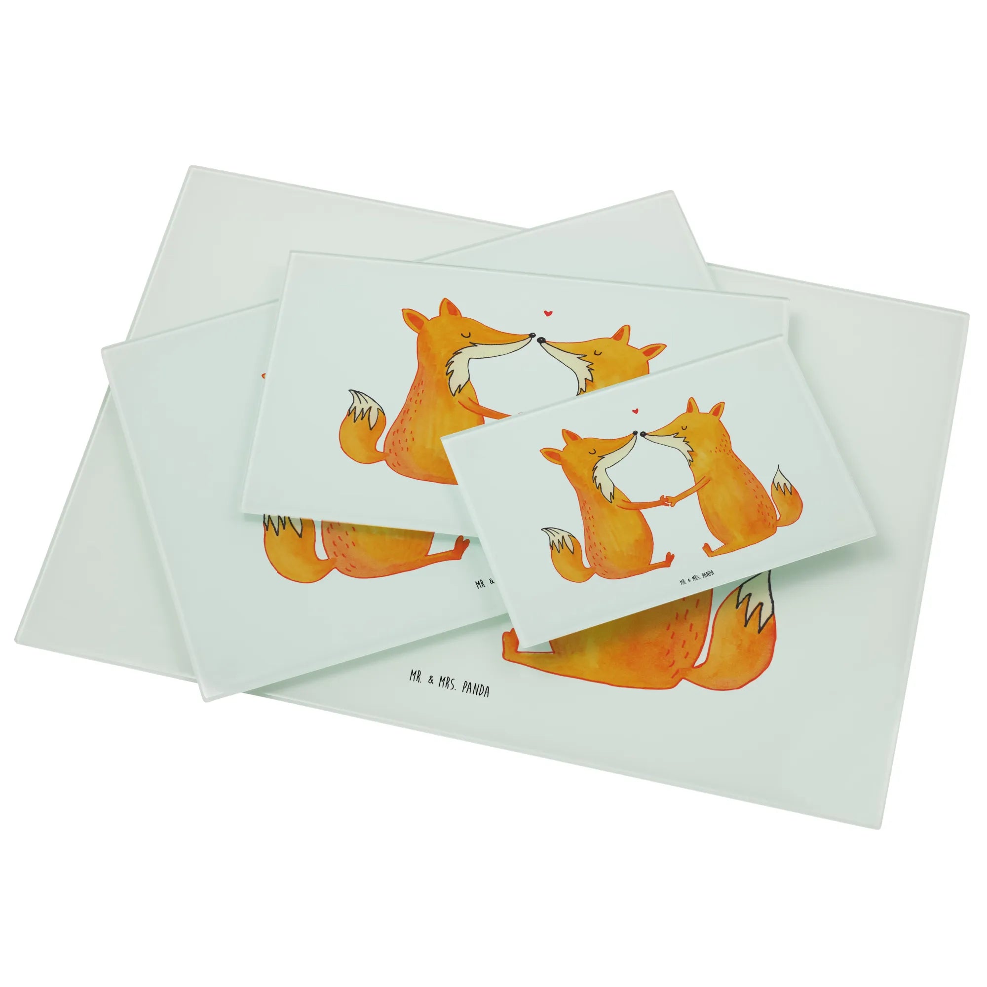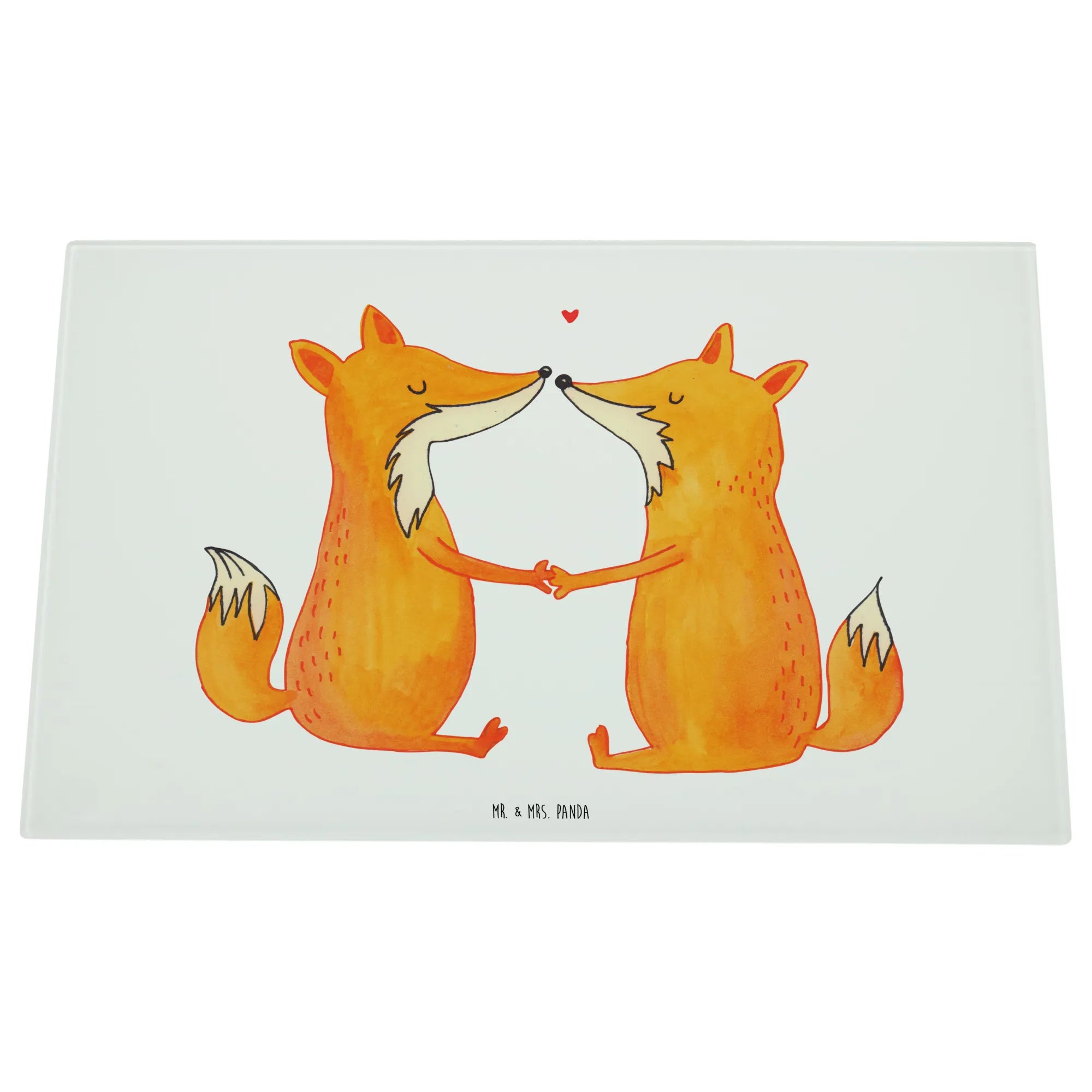 Das XL Glas Schneidbrett "Füchse Liebe" von Mr. & Mrs. Panda ist der perfekte Begleiter für alle, die in ihrer Küche einen Hauch von Romantik verbreiten möchten.