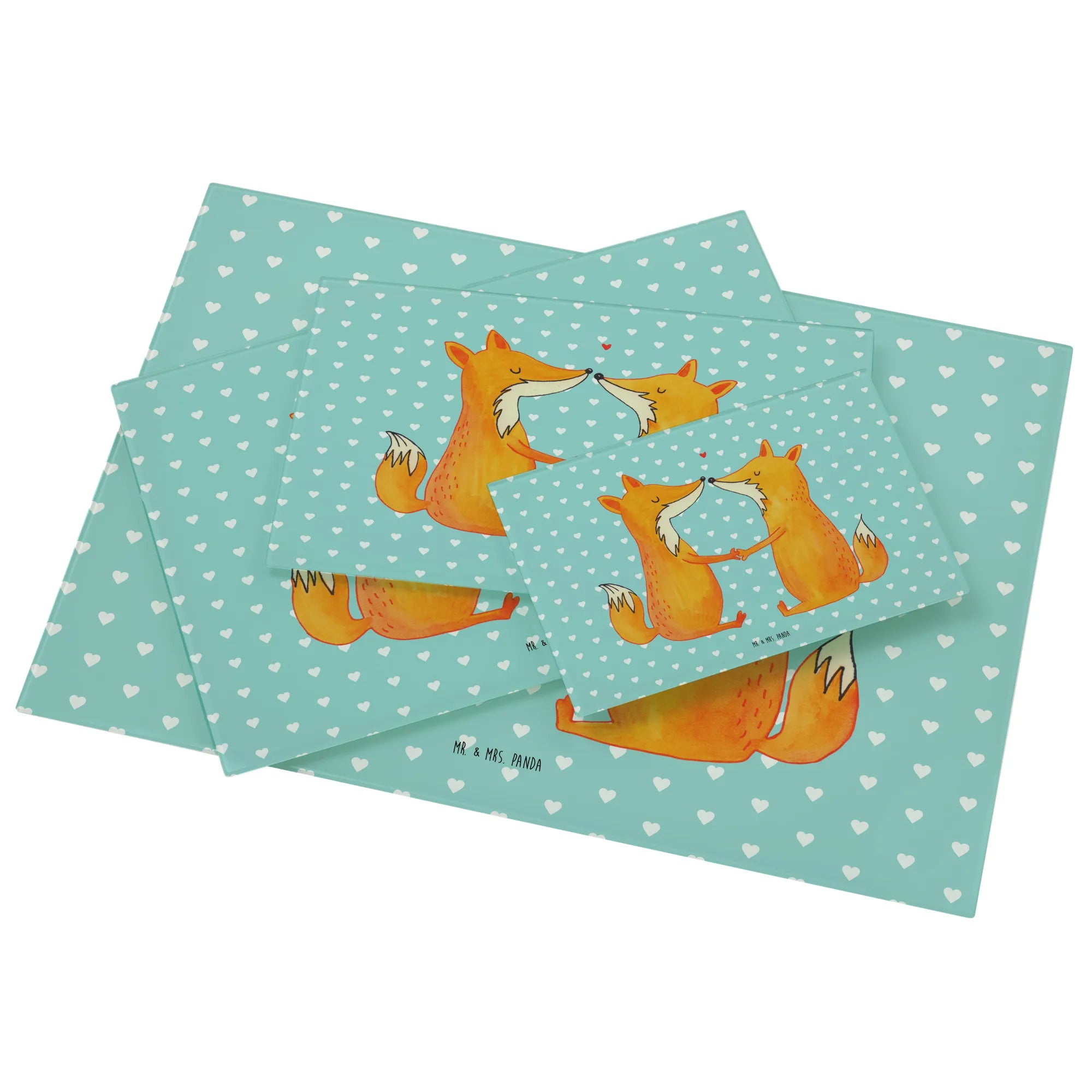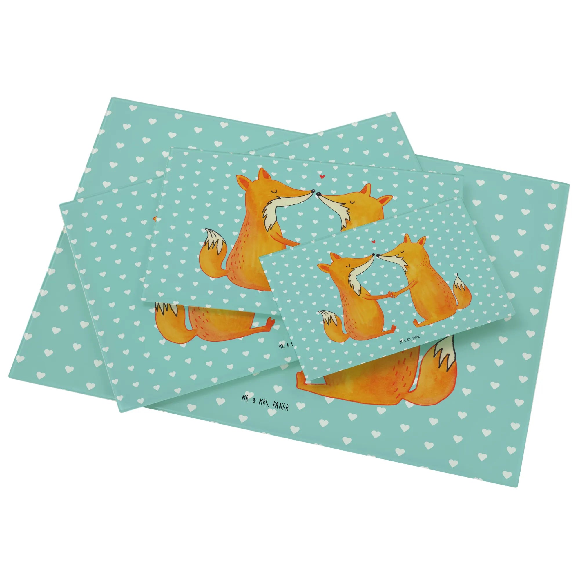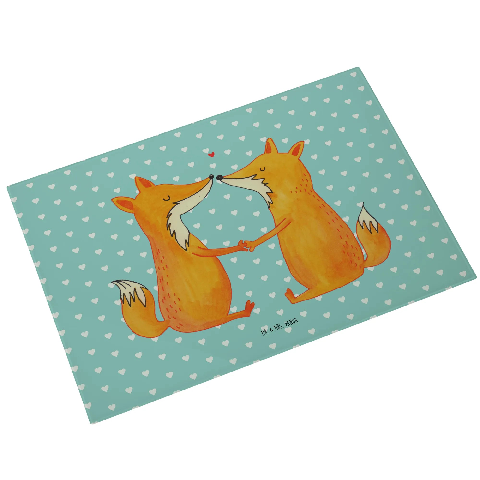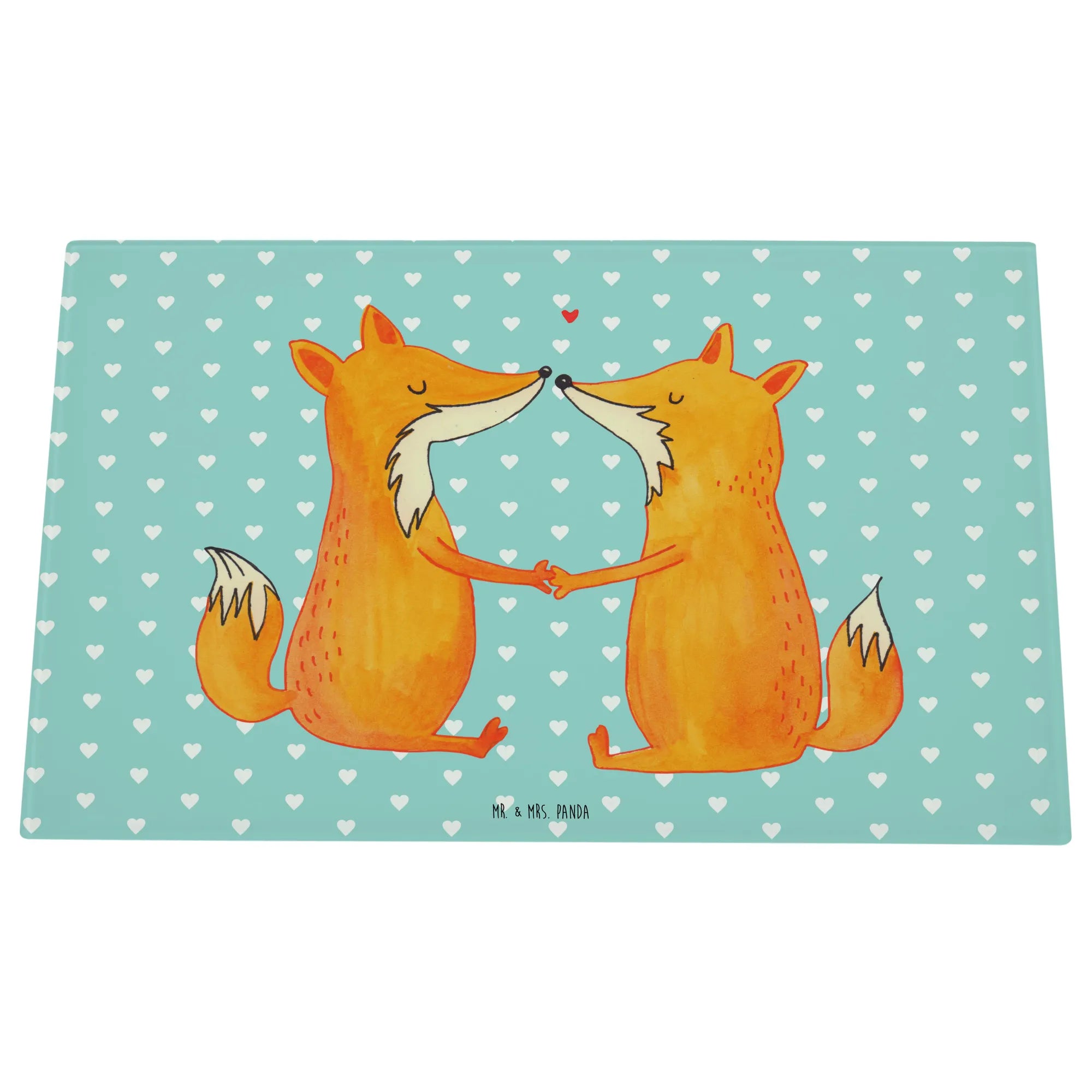 Das XL Glas Schneidbrett "Füchse Liebe" von Mr. & Mrs. Panda ist der perfekte Begleiter für alle, die in ihrer Küche einen Hauch von Romantik verbreiten möchten.