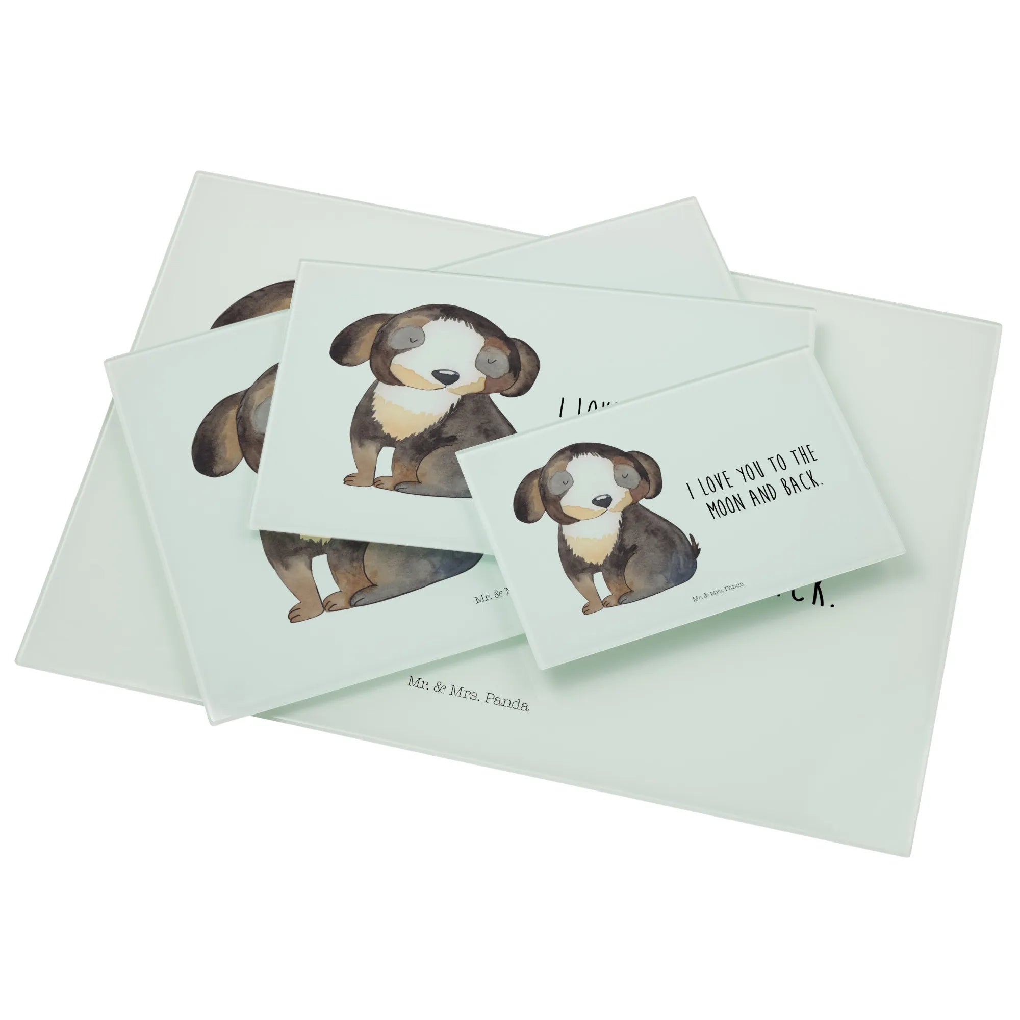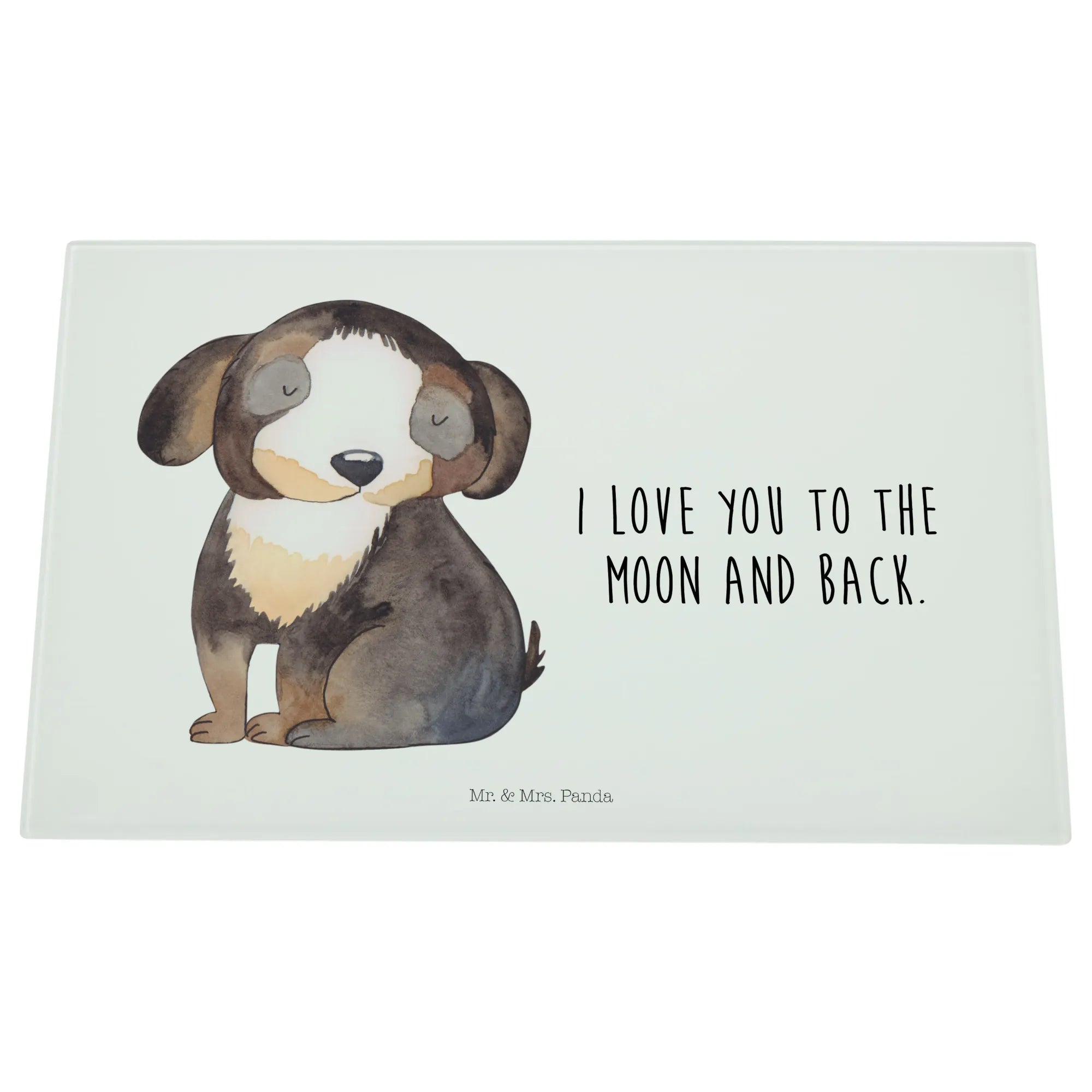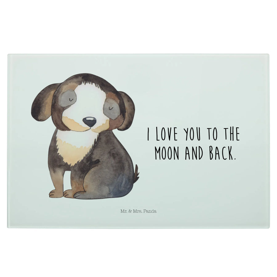 Das XL Glas Schneidbrett "Hund entspannt" von Mr. & Mrs. Panda ist das perfekte Geschenk für alle Hundeliebhaber und Tierfreunde! Mit einem süßen schwarz-weißen Hundemotiv und dem zauberhaften Spruch "I love you to the moon and back" bringt dieses Schneidebrett nicht nur Freude beim Kochen, sondern auch beim Zubereiten von Frühstück, Mittag- und Abendessen.
