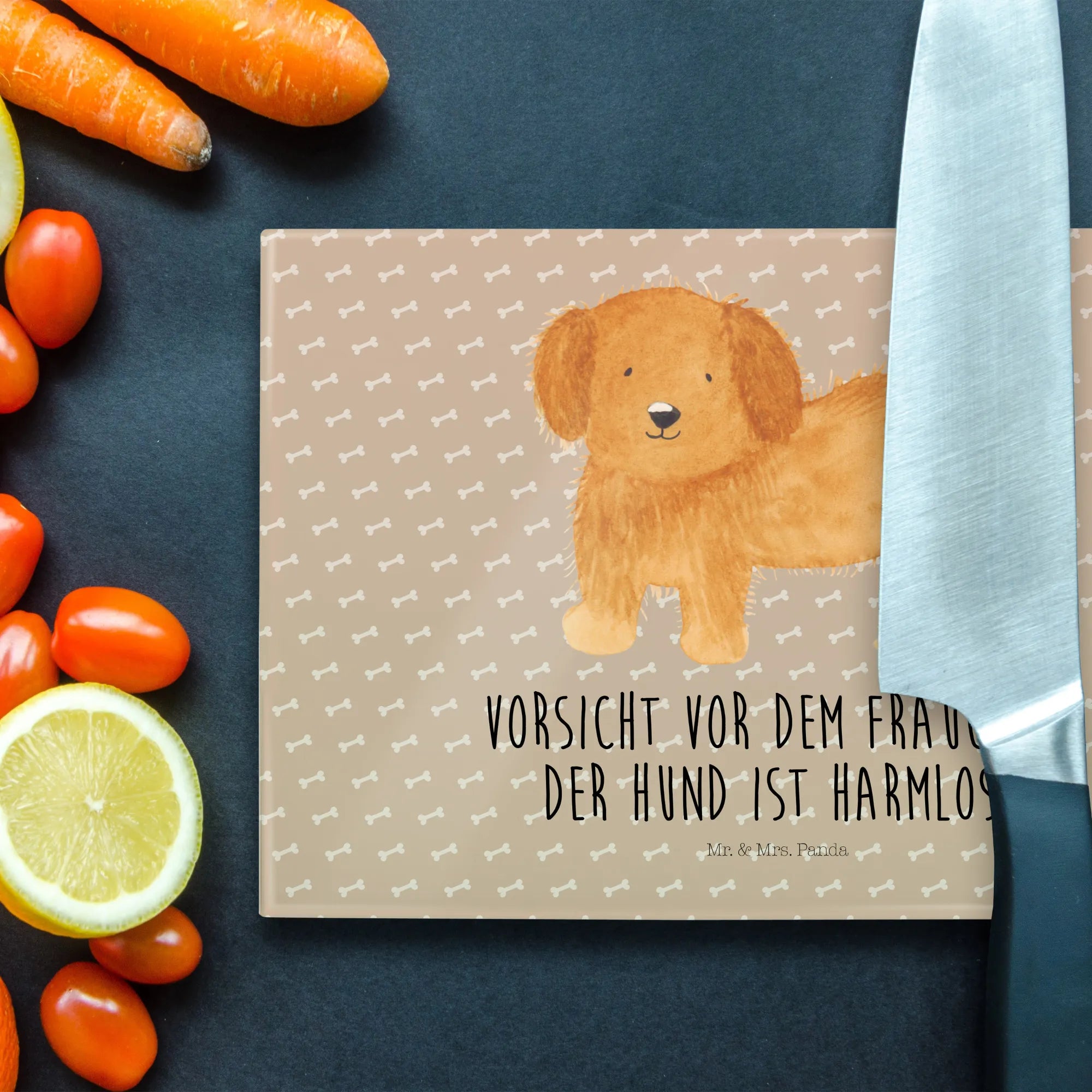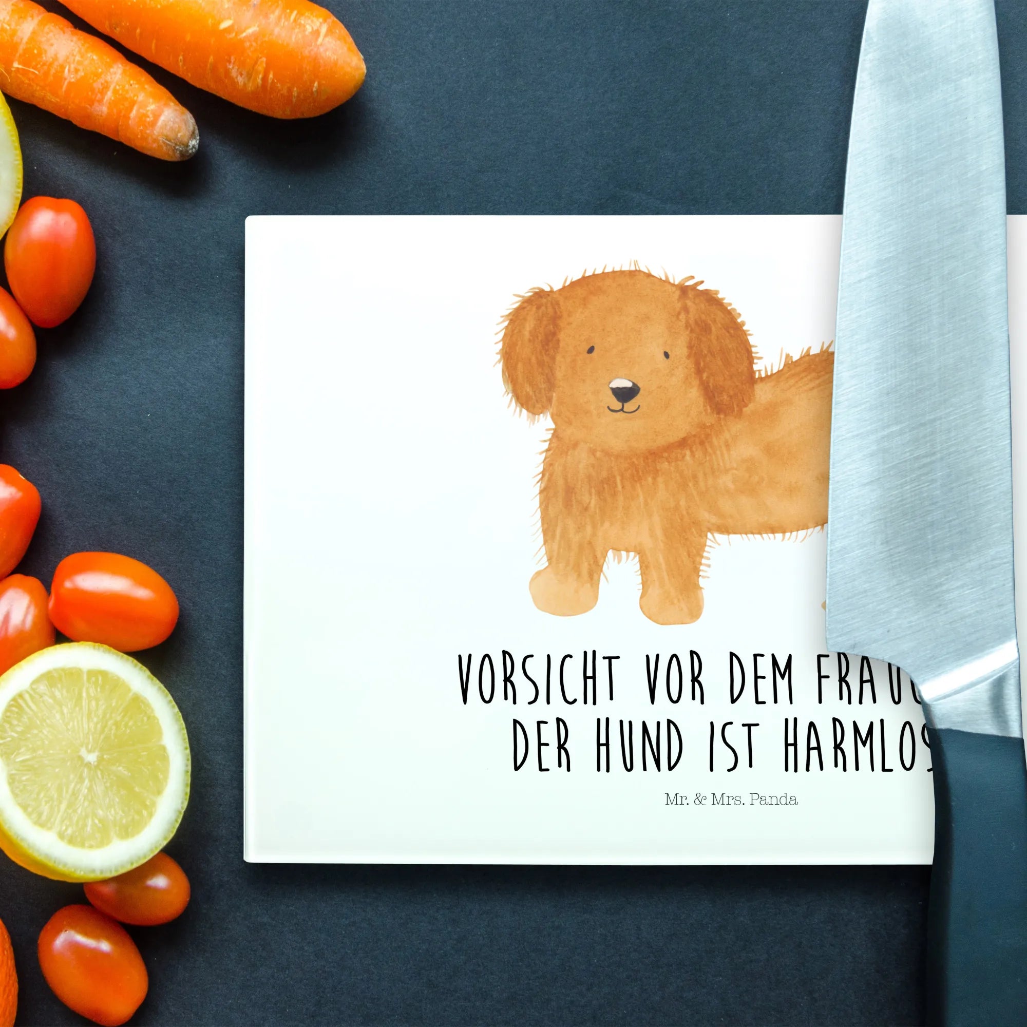 Das XL Glas Schneidbrett mit dem niedlichen Hundemotiv "Hund flauschig" aus der Hunde Kollektion von Mr. & Mrs. Panda ist das perfekte Geschenk für alle Hundebesitzer und Hunde-Liebhaber! 🐶💚