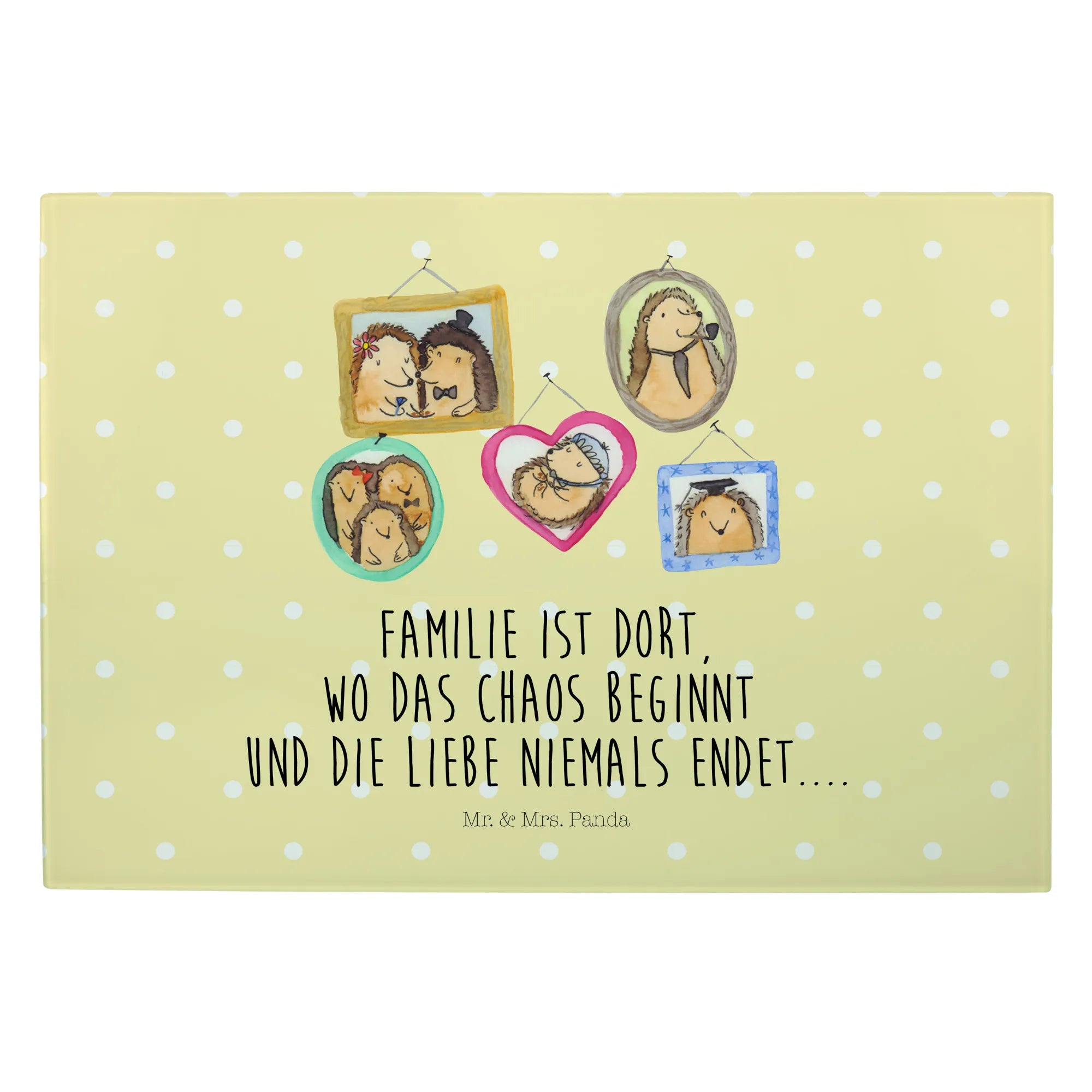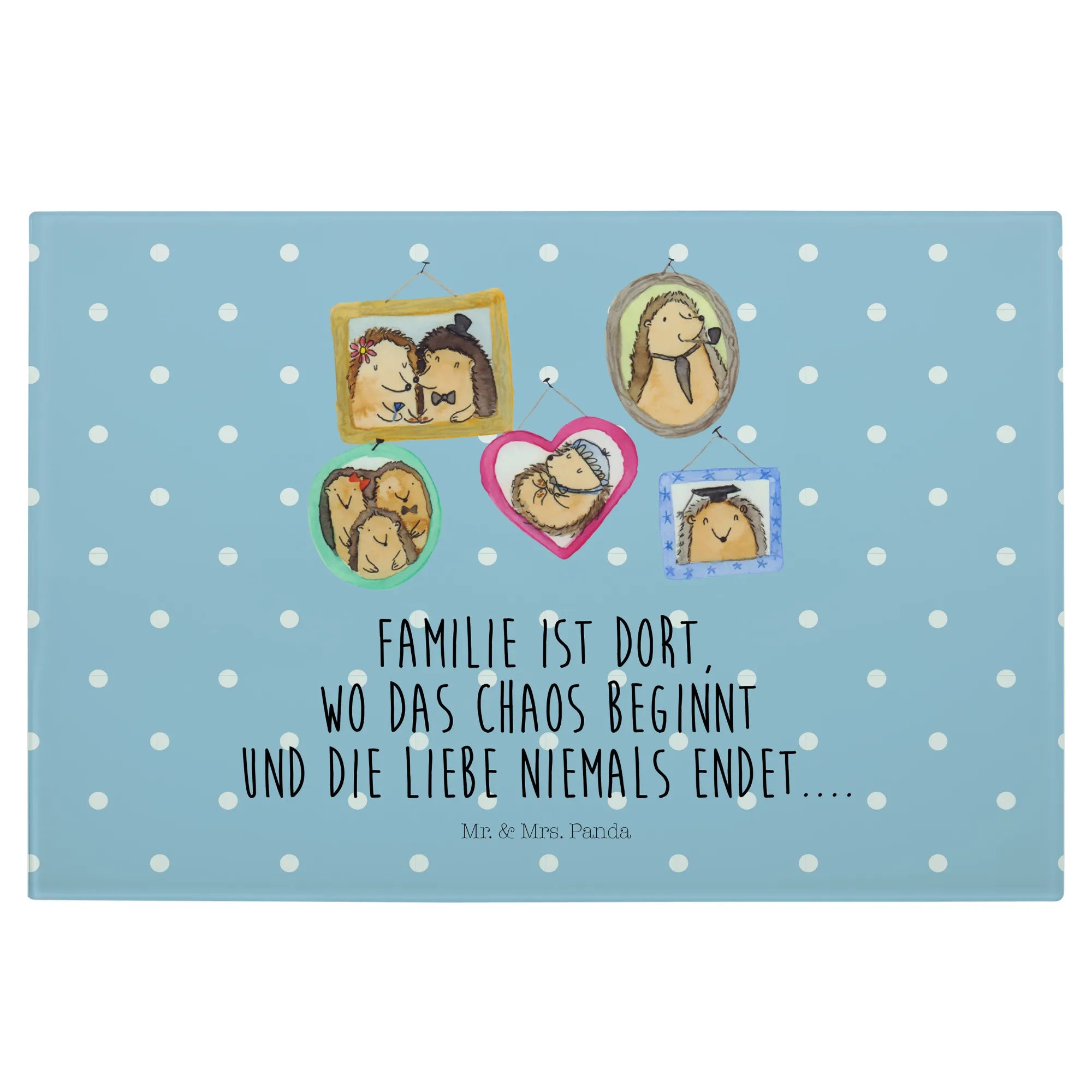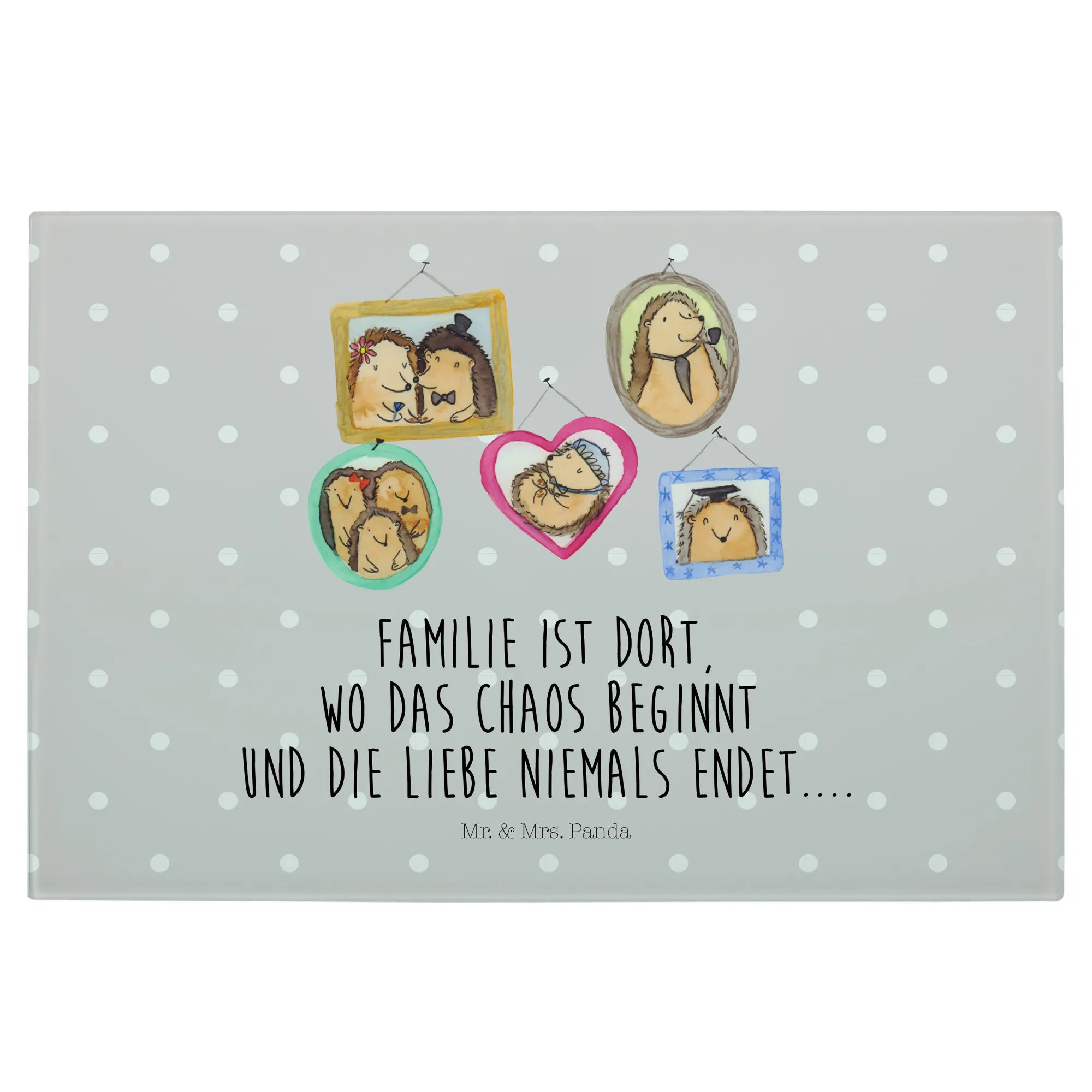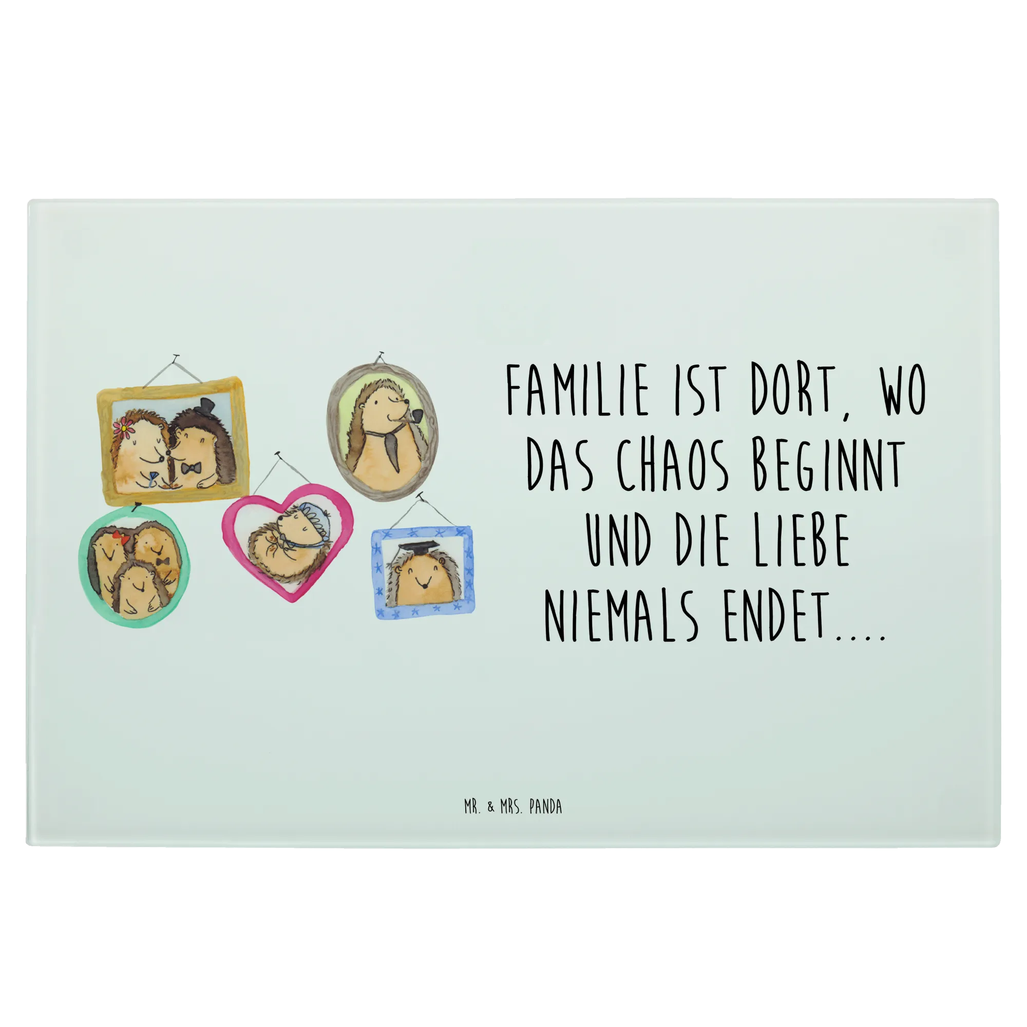 Entdecke unser zauberhaftes Medium Glas Schneidbrett mit dem liebevollen Motiv der Igel Familie! Dieses einzigartige und stabile Schneidebrett von Mr. & Mrs. Panda ist nicht nur funktional, sondern bringt auch ein Stückchen Herz in deine Küche. Es zeigt eine charmante Collage aus verschiedenen Porträts von Igeln in liebevollen und familiären Situationen, die Wärme und Zusammenhalt ausstrahlen. Mit dem Spruch "Familie ist dort, wo das Chaos beginnt und die Liebe niemals endet..." erinnert es dich daran, wie wichtig Familie ist und dass es auch in Momenten des Durcheinanders die Liebe gibt.
