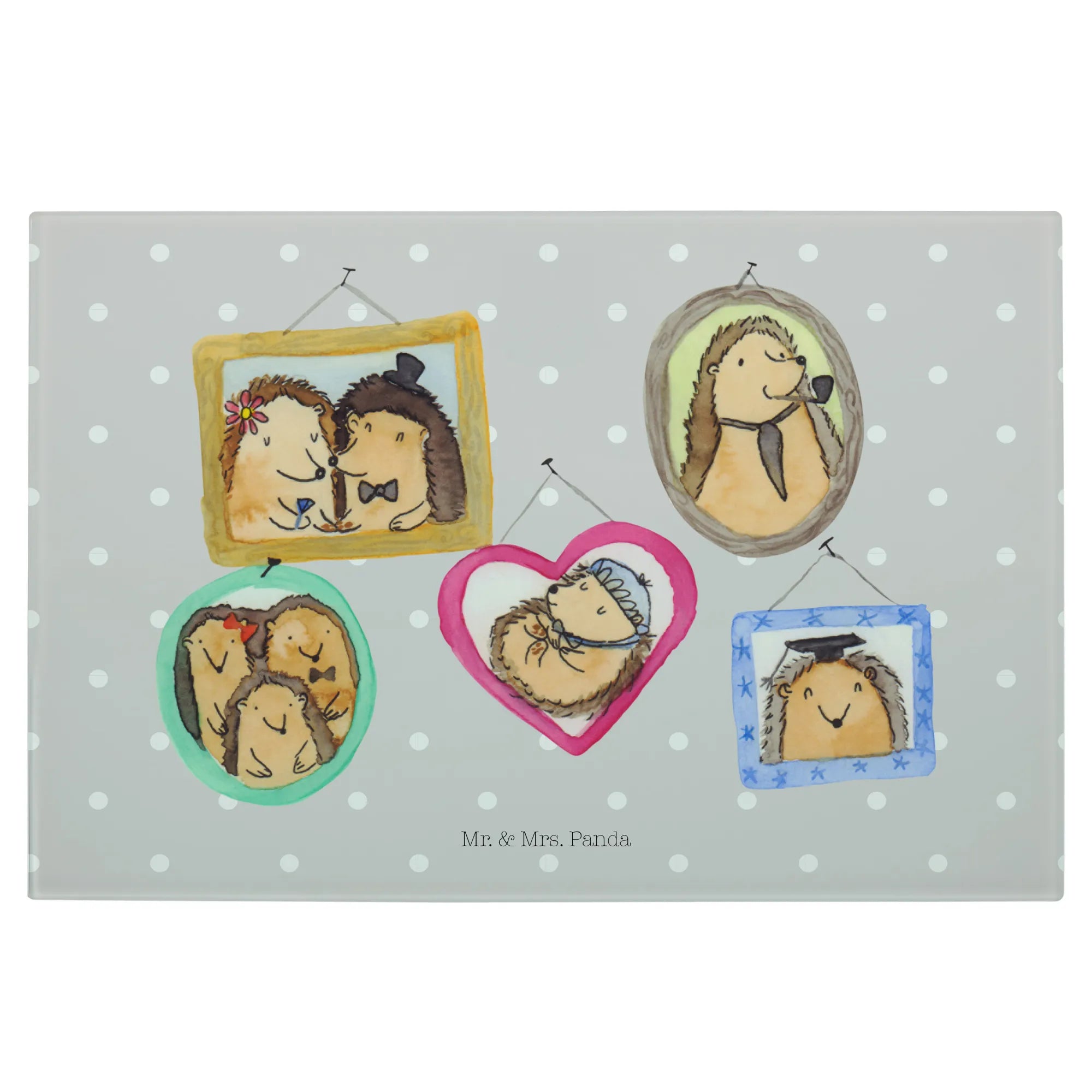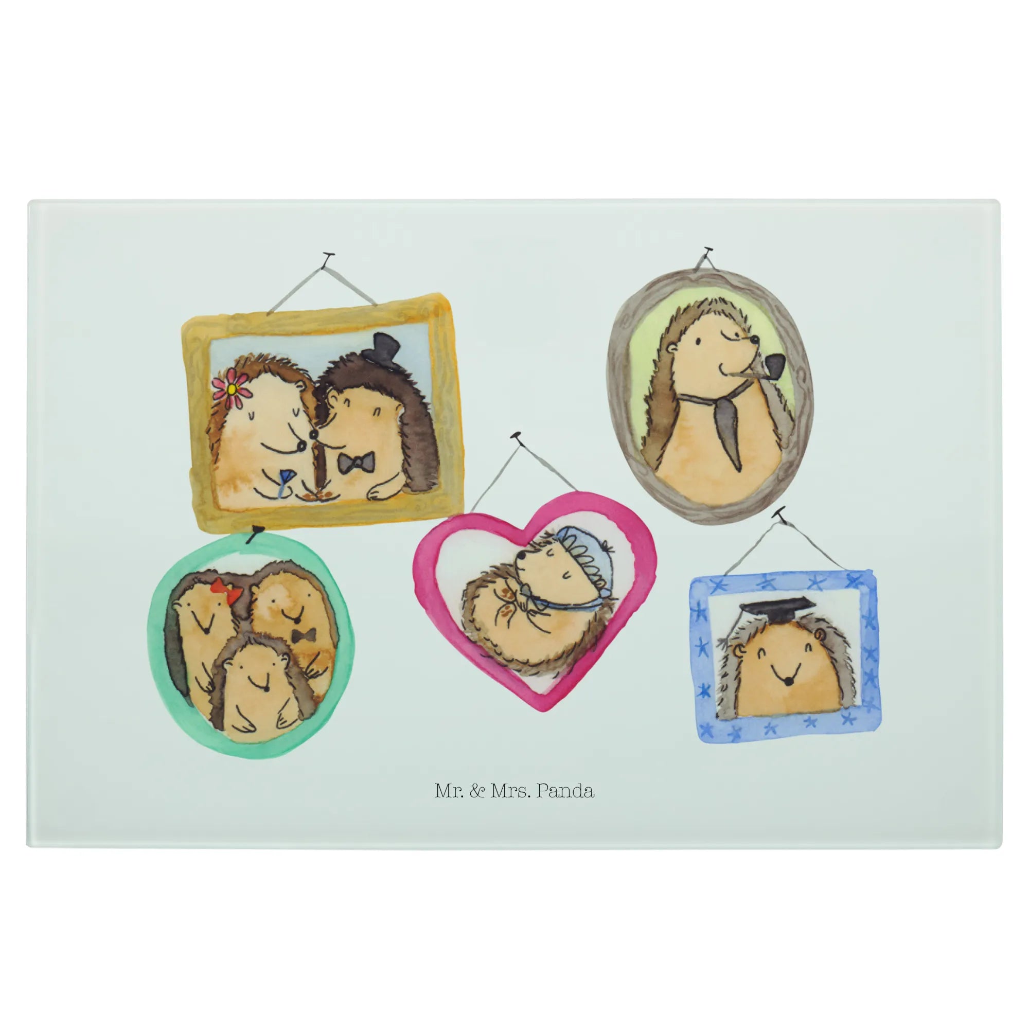 Das Medium Glas Schneidebrett mit dem süßen Motiv der Igel Familie von Mr. & Mrs. Panda ist die perfekte Geschenkidee für alle, die Familie und die kleinen Freuden des Lebens schätzen. Aus hochwertigem, kratzfestem Glas gefertigt, bietet dieses schöne Schneidebrett eine ideale Fläche zum Vorbereiten und Servieren deiner liebsten Speisen.