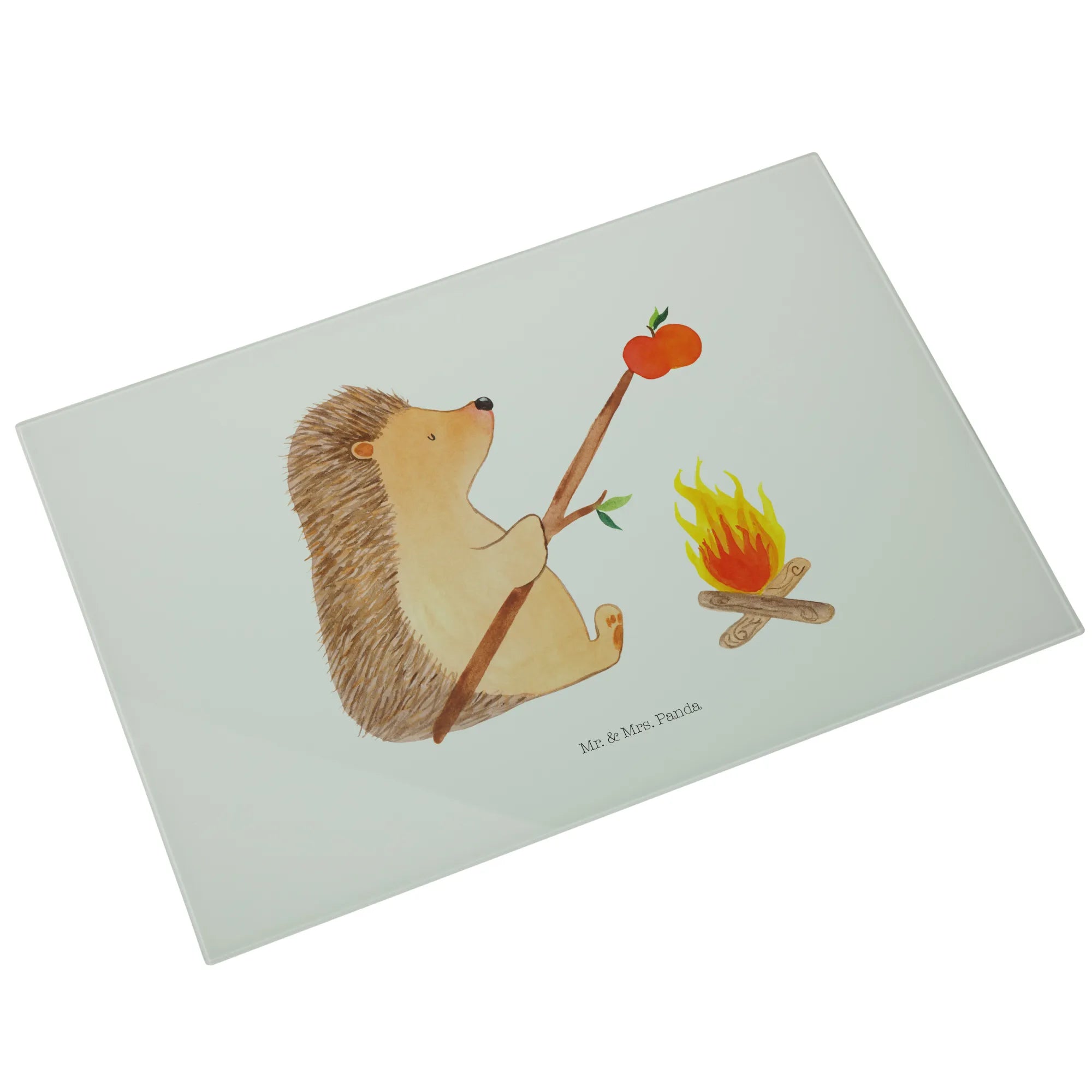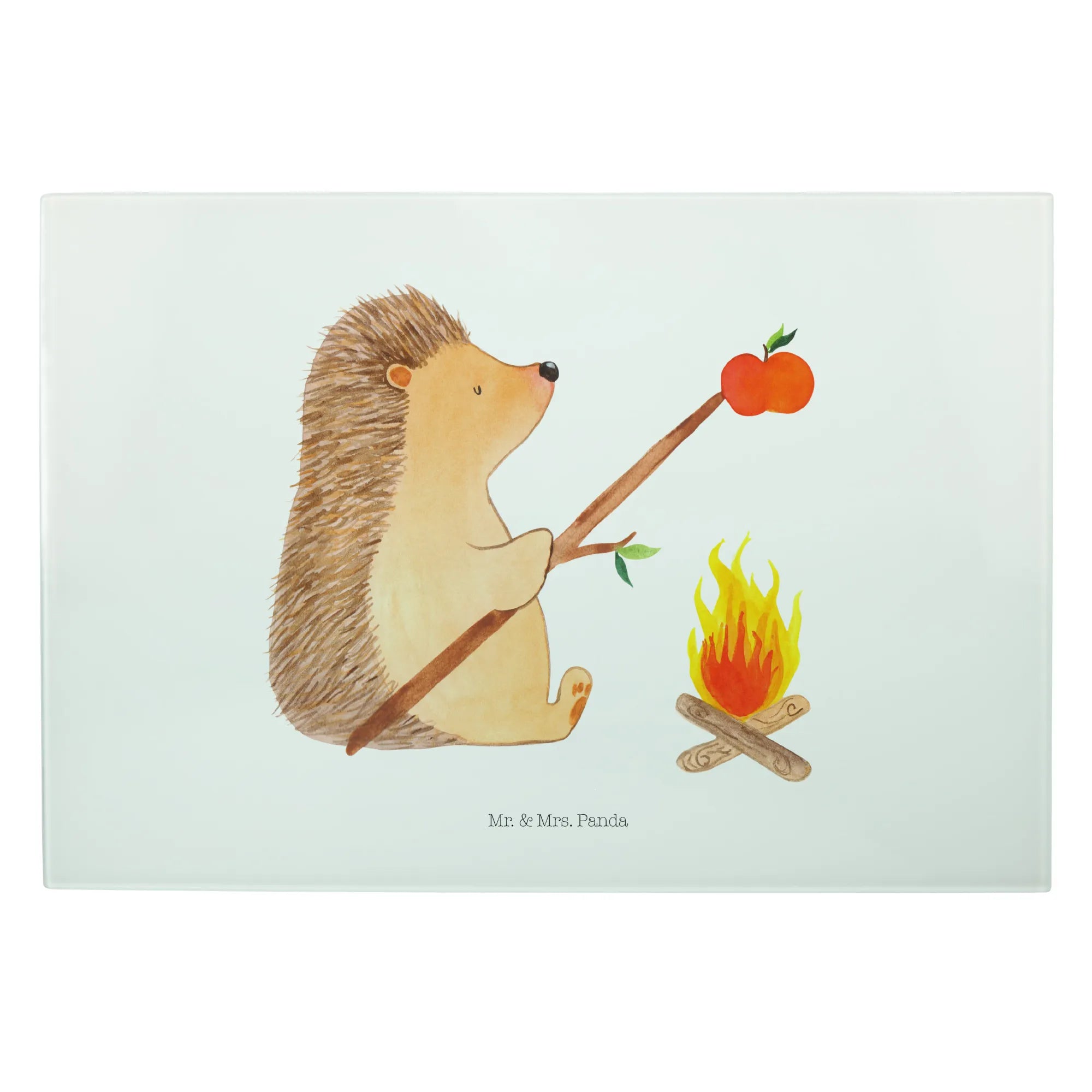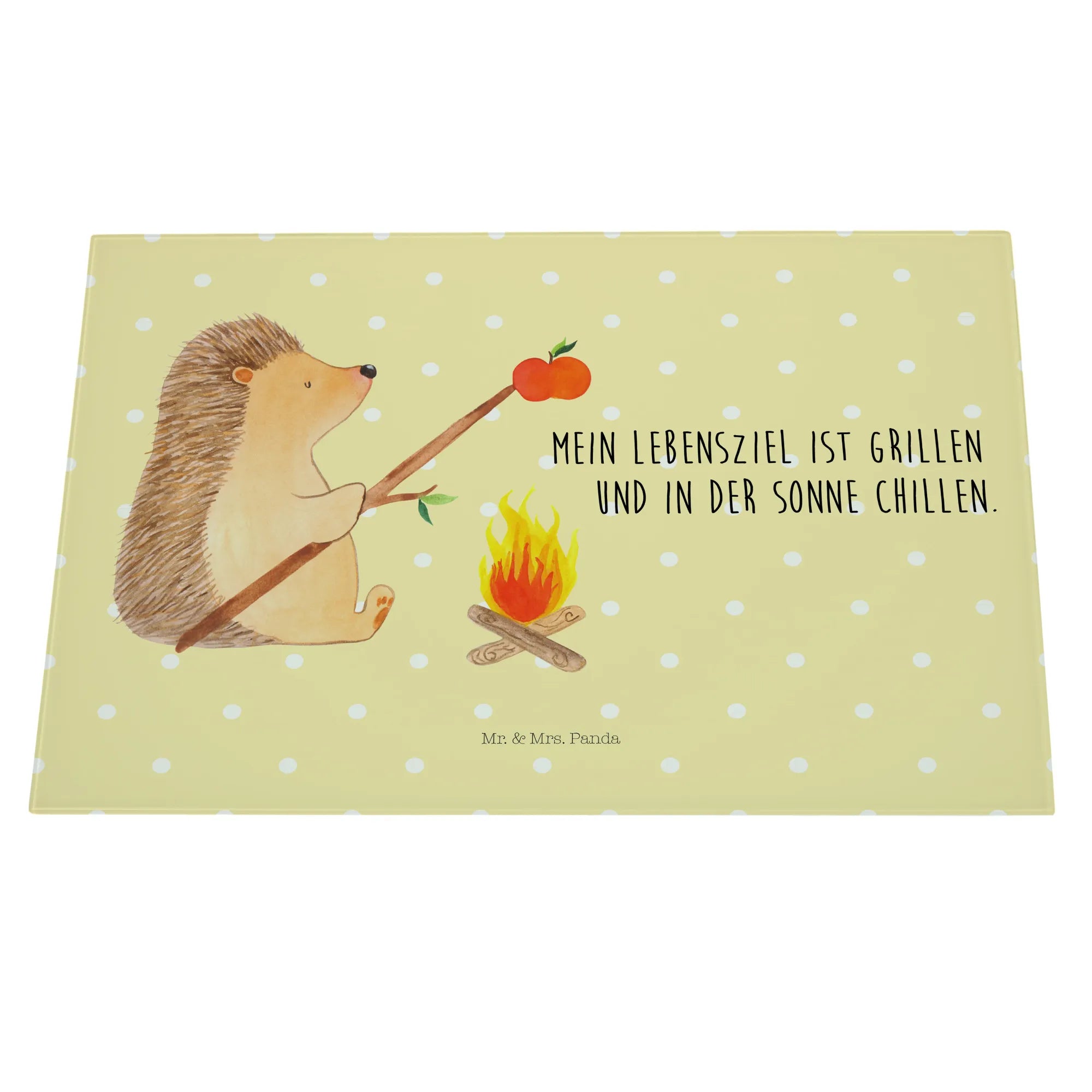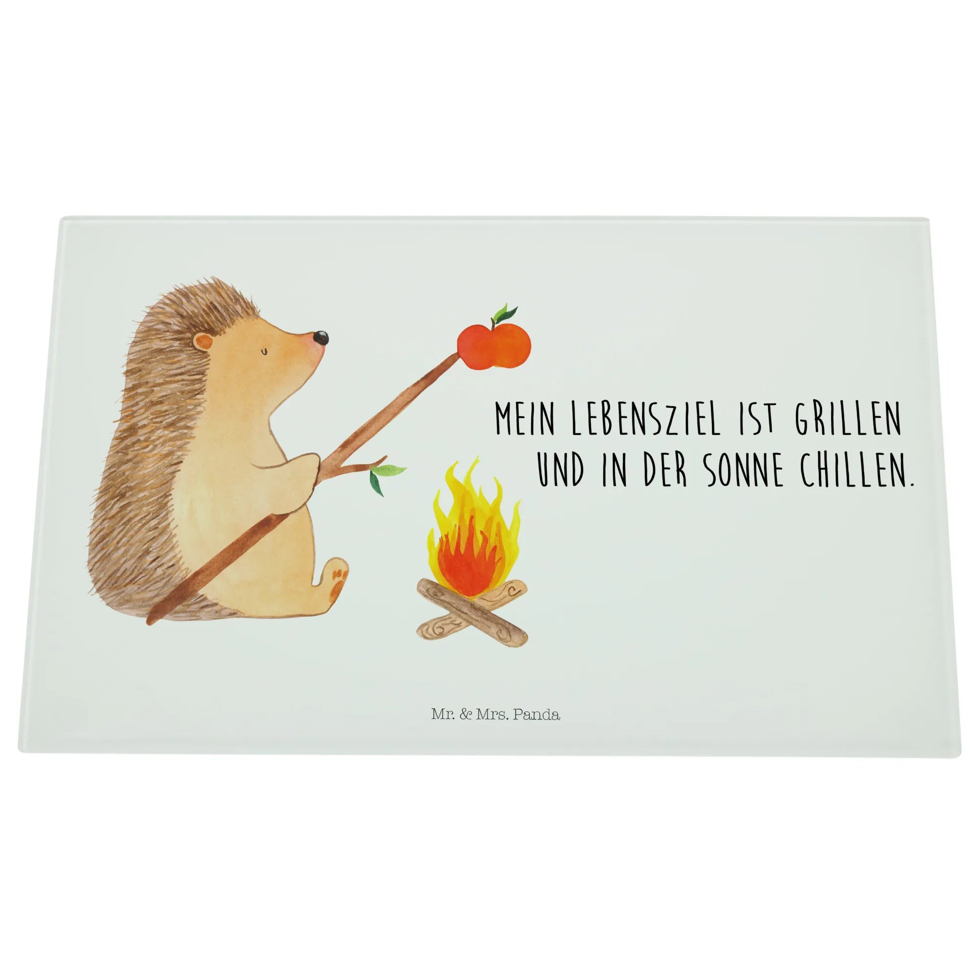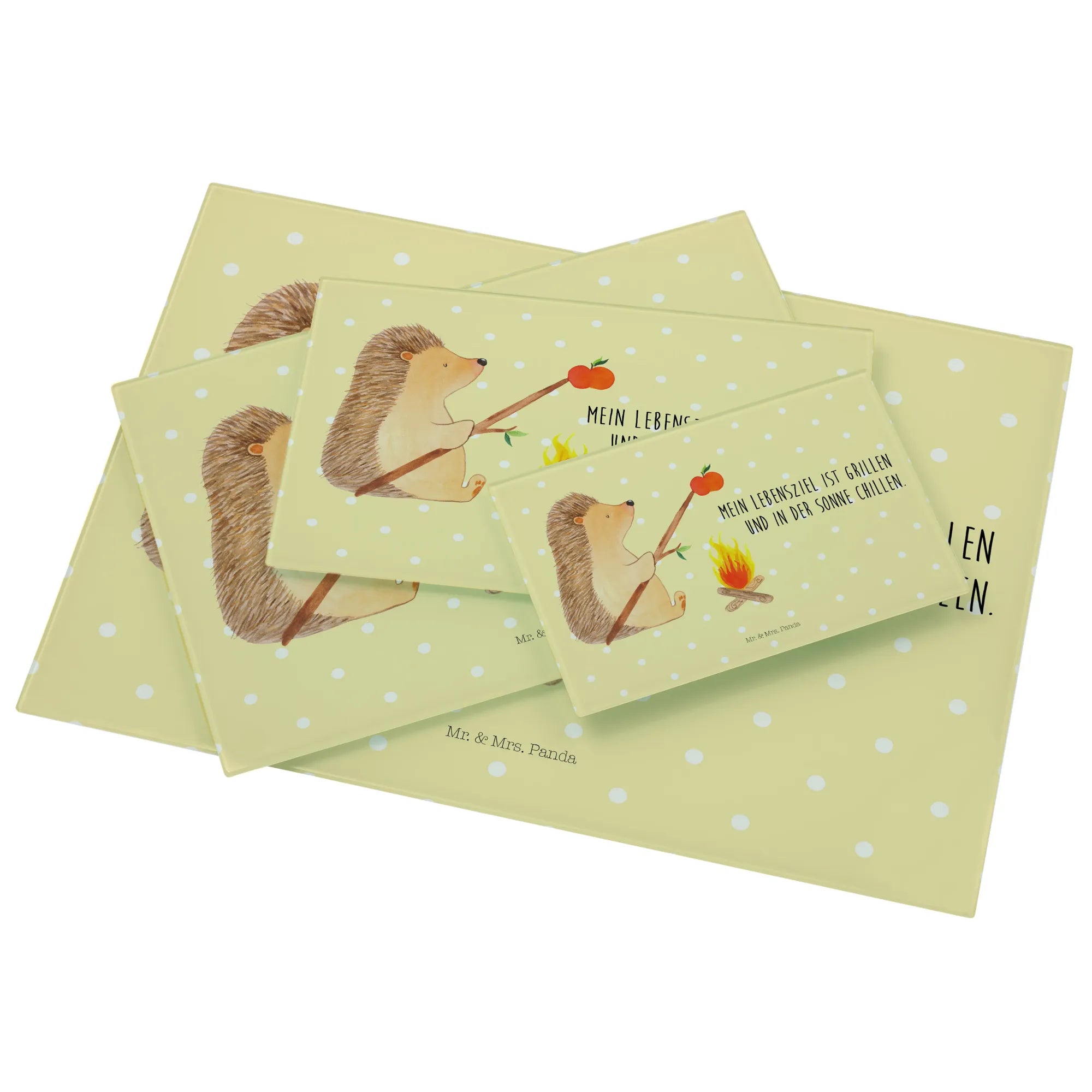 Das XL Glas Schneidbrett mit dem süßen Motiv "Igel grillt" aus unserer Small World Kollektion von Mr. & Mrs. Panda ist das perfekte Geschenk für alle, die das Grillen und die guten Dinge im Leben lieben!
