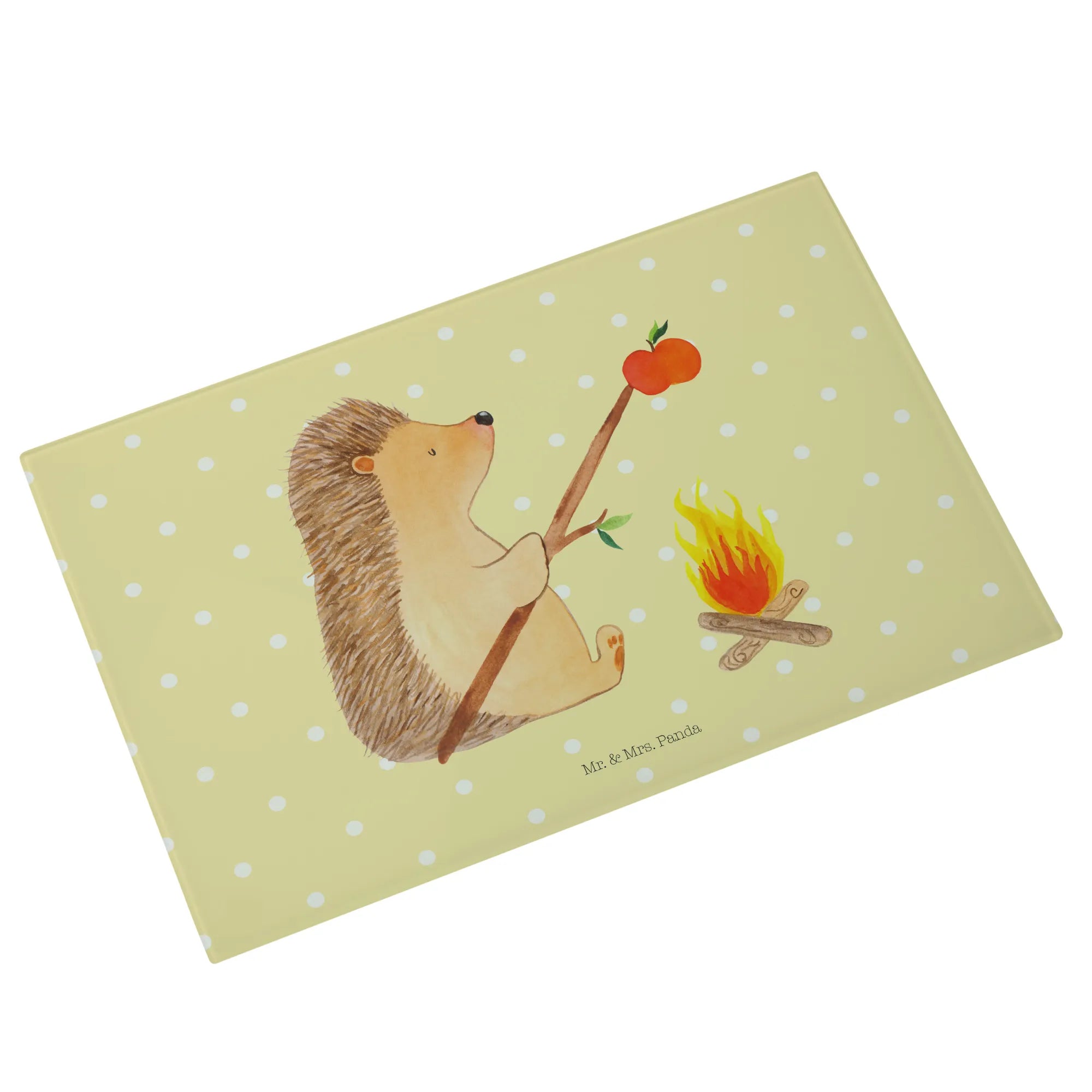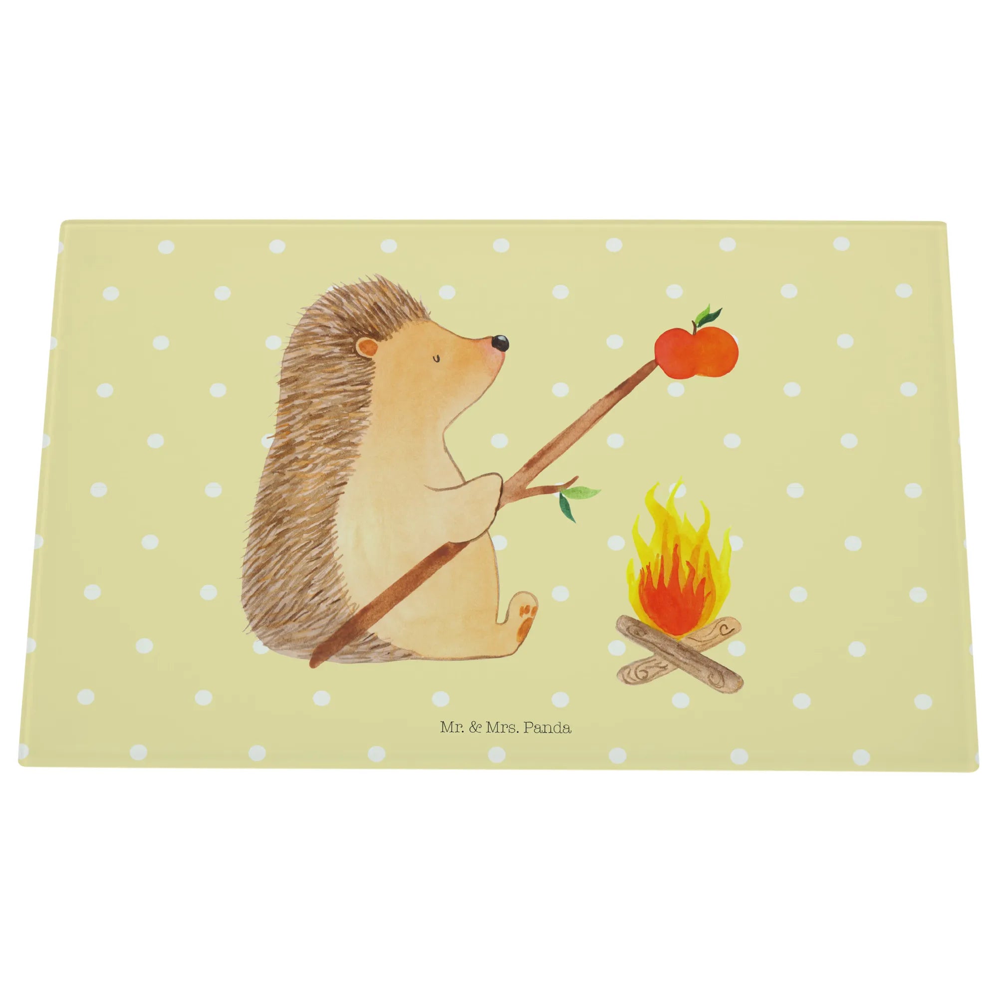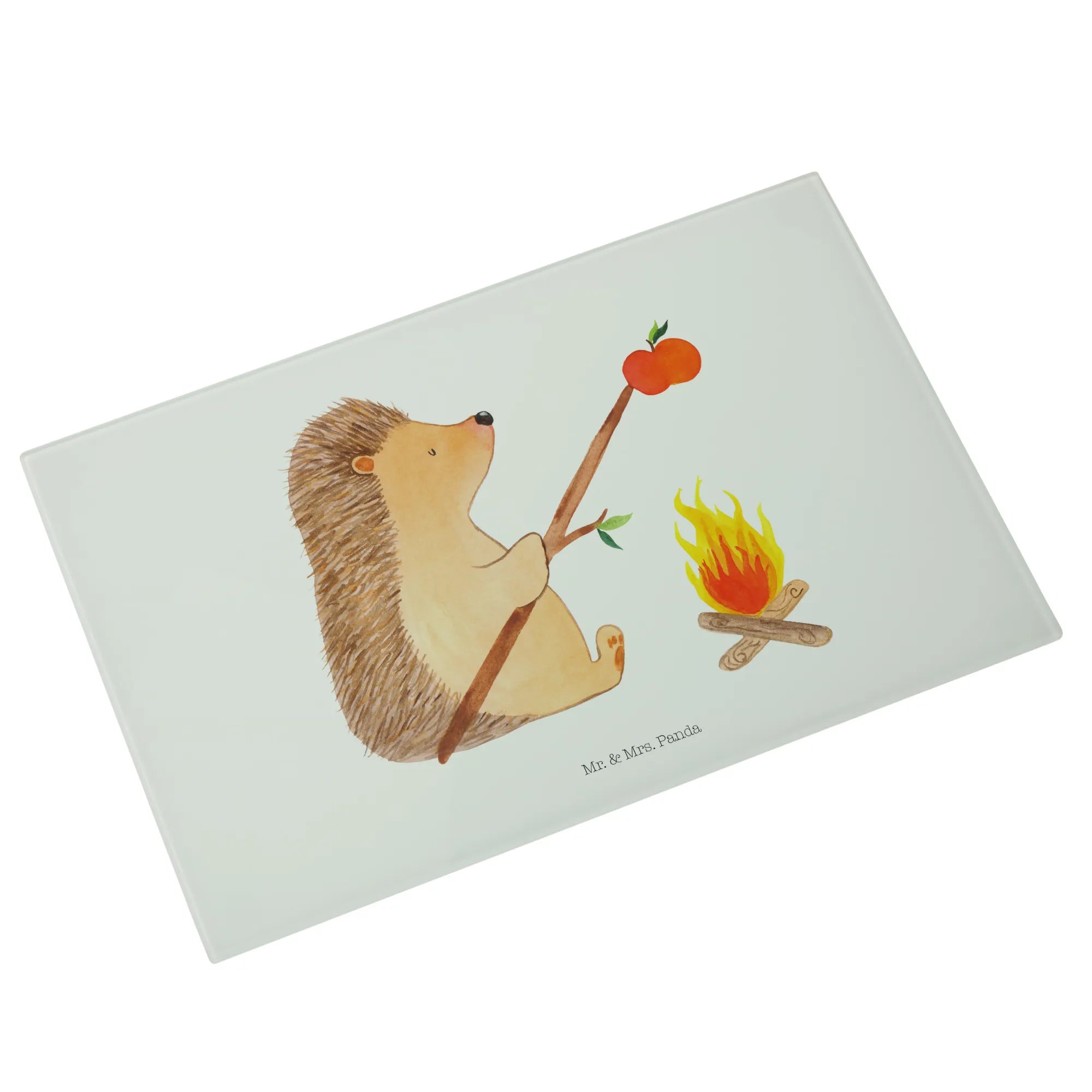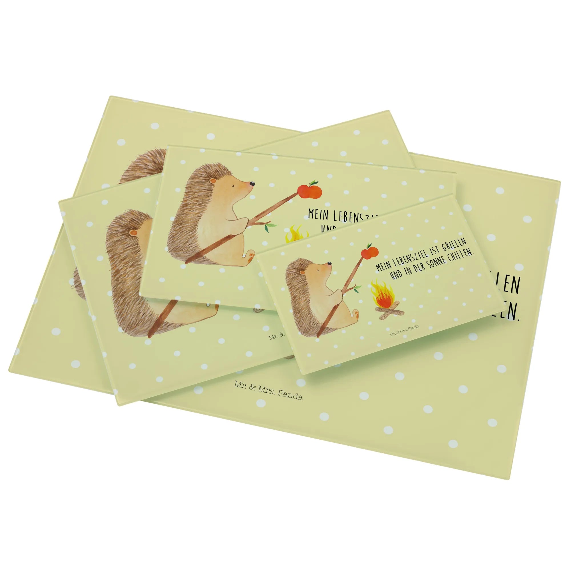 Das XL Glas Schneidbrett mit dem süßen Motiv "Igel grillt" aus unserer Small World Kollektion von Mr. & Mrs. Panda ist das perfekte Geschenk für alle, die das Grillen und die guten Dinge im Leben lieben!