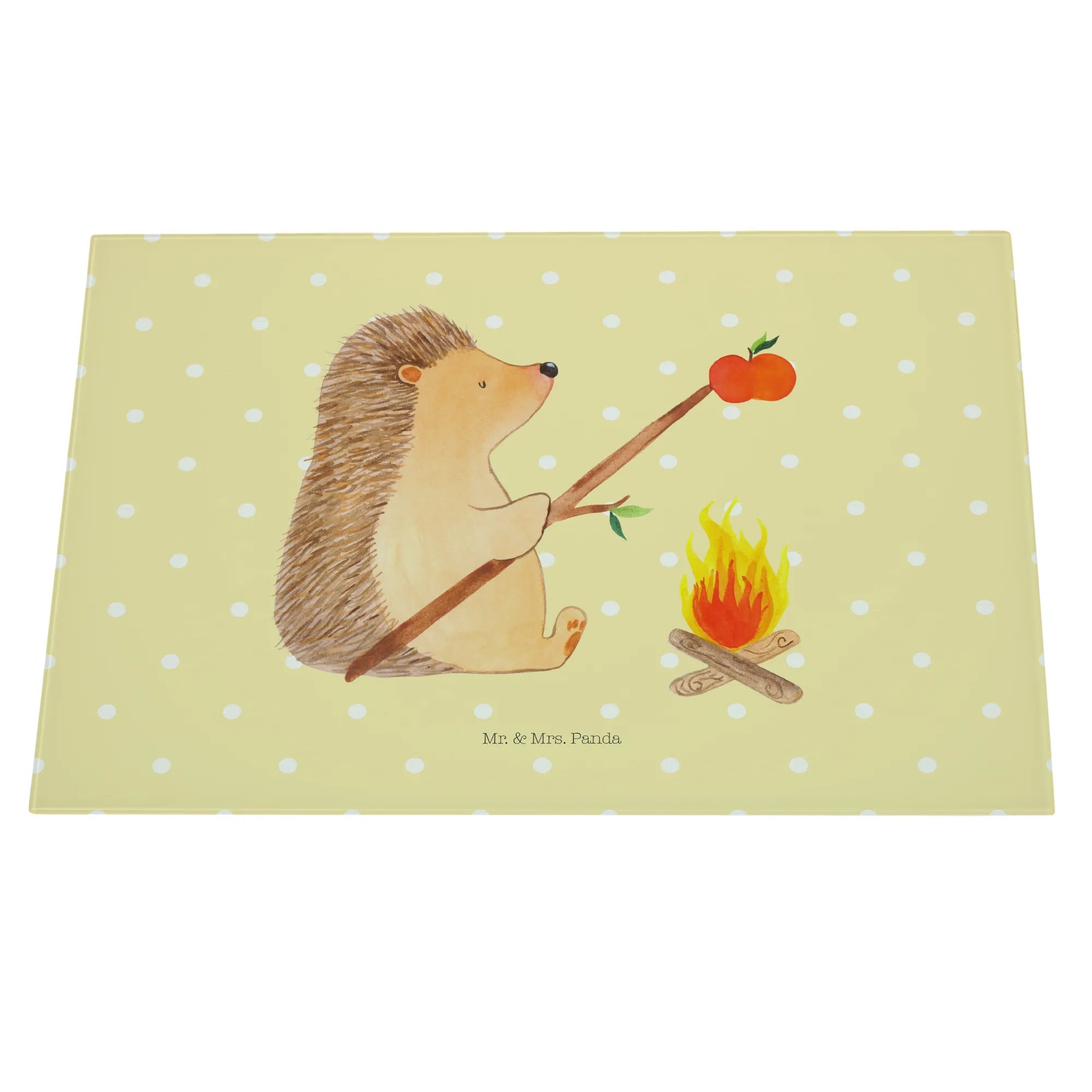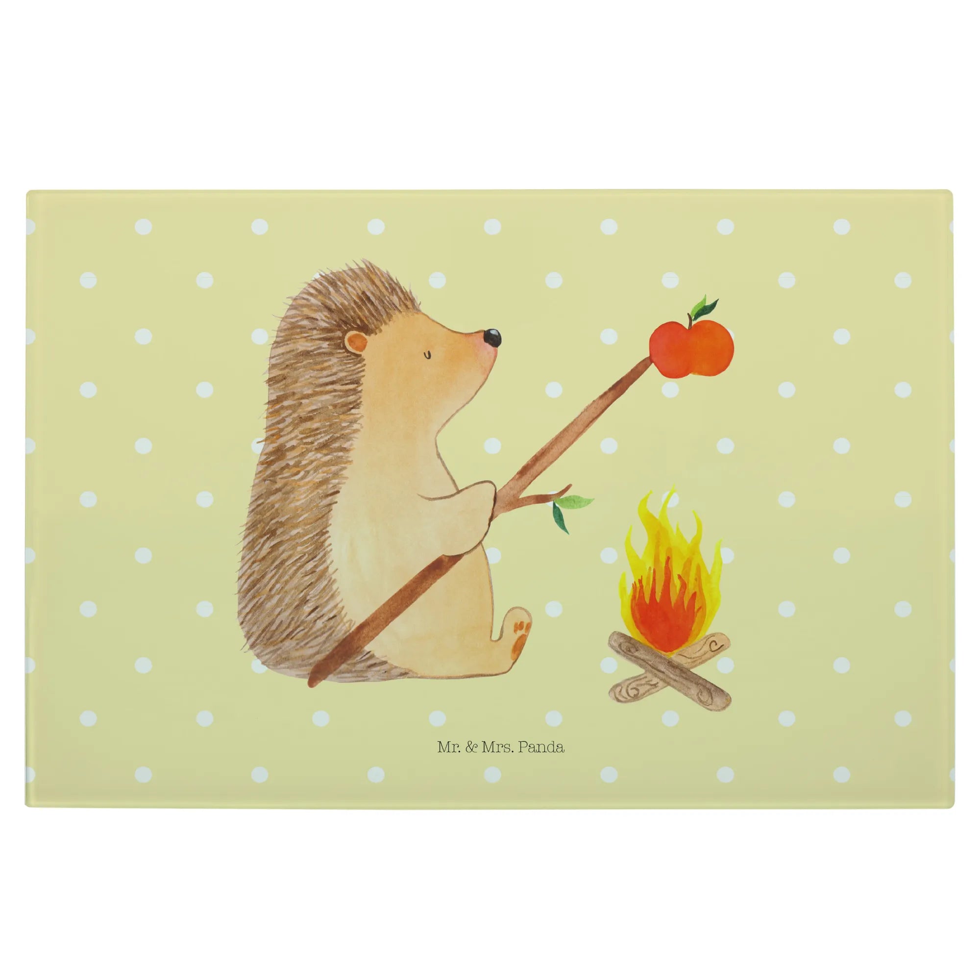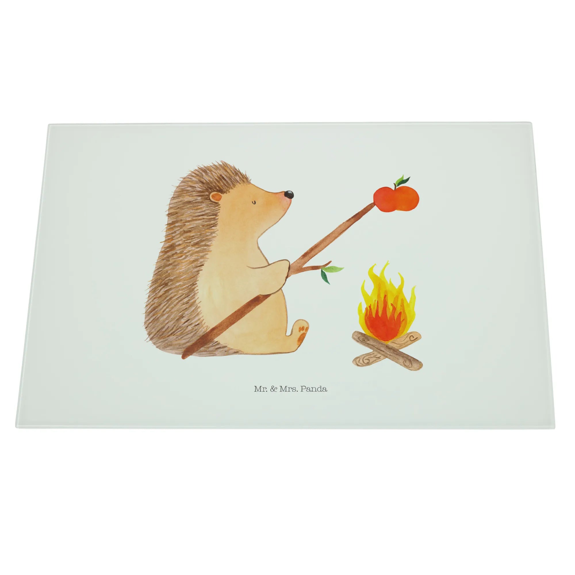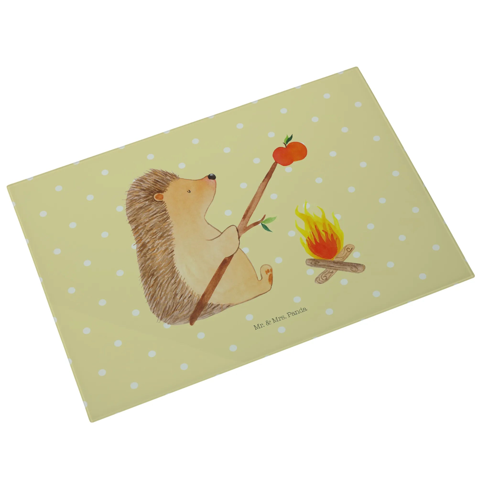 Das XL Glas Schneidbrett mit dem süßen Motiv "Igel grillt" aus unserer Small World Kollektion von Mr. & Mrs. Panda ist das perfekte Geschenk für alle, die das Grillen und die guten Dinge im Leben lieben!