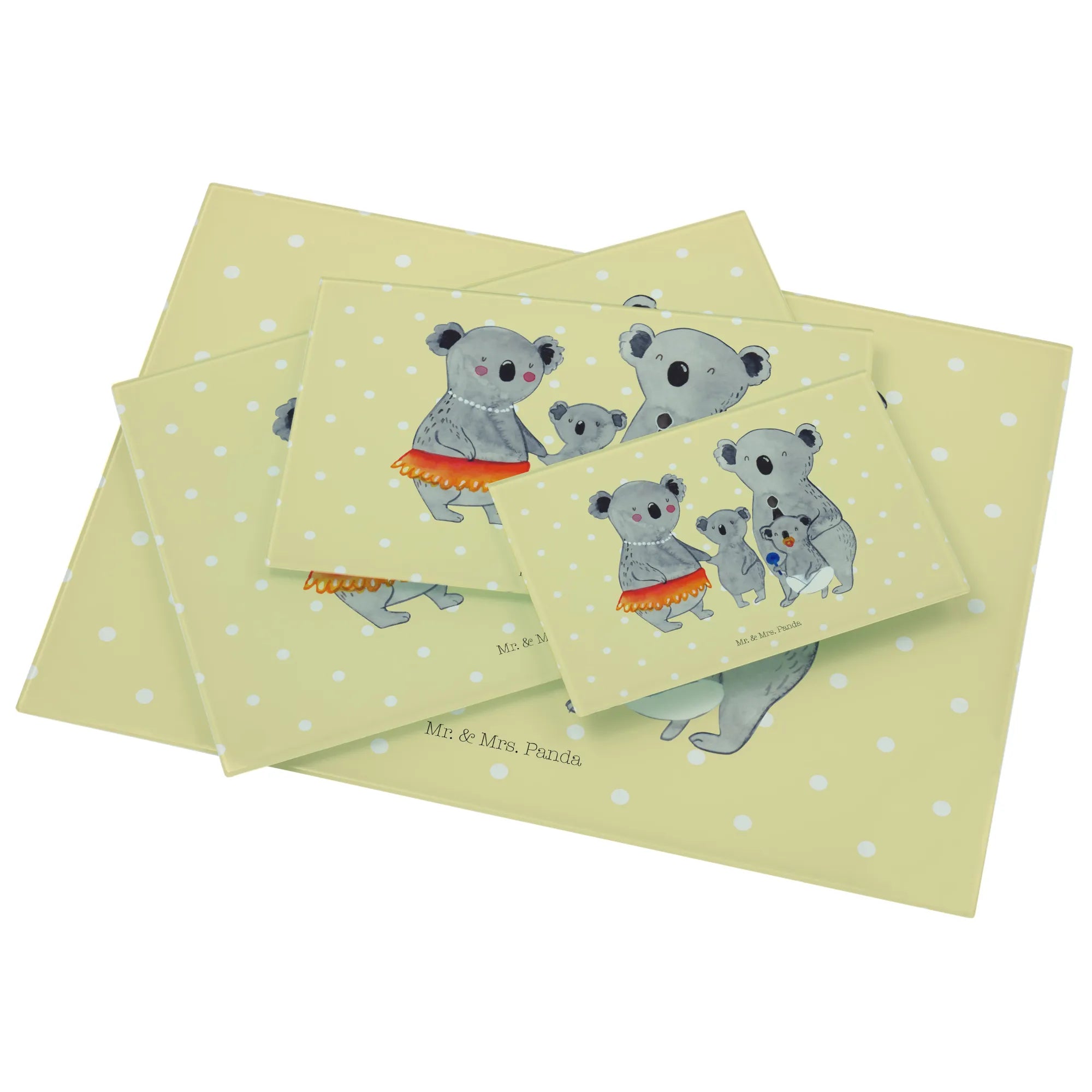 Entdecke das bezaubernde Medium Glas Schneidbrett mit dem niedlichen Koala Familienmotiv von Mr. & Mrs. Panda! Dieses wunderschöne, in einem hellen Design gehaltene Schneidebrett ist nicht nur funktional, sondern auch ein wahrer Hingucker in jeder Küche.