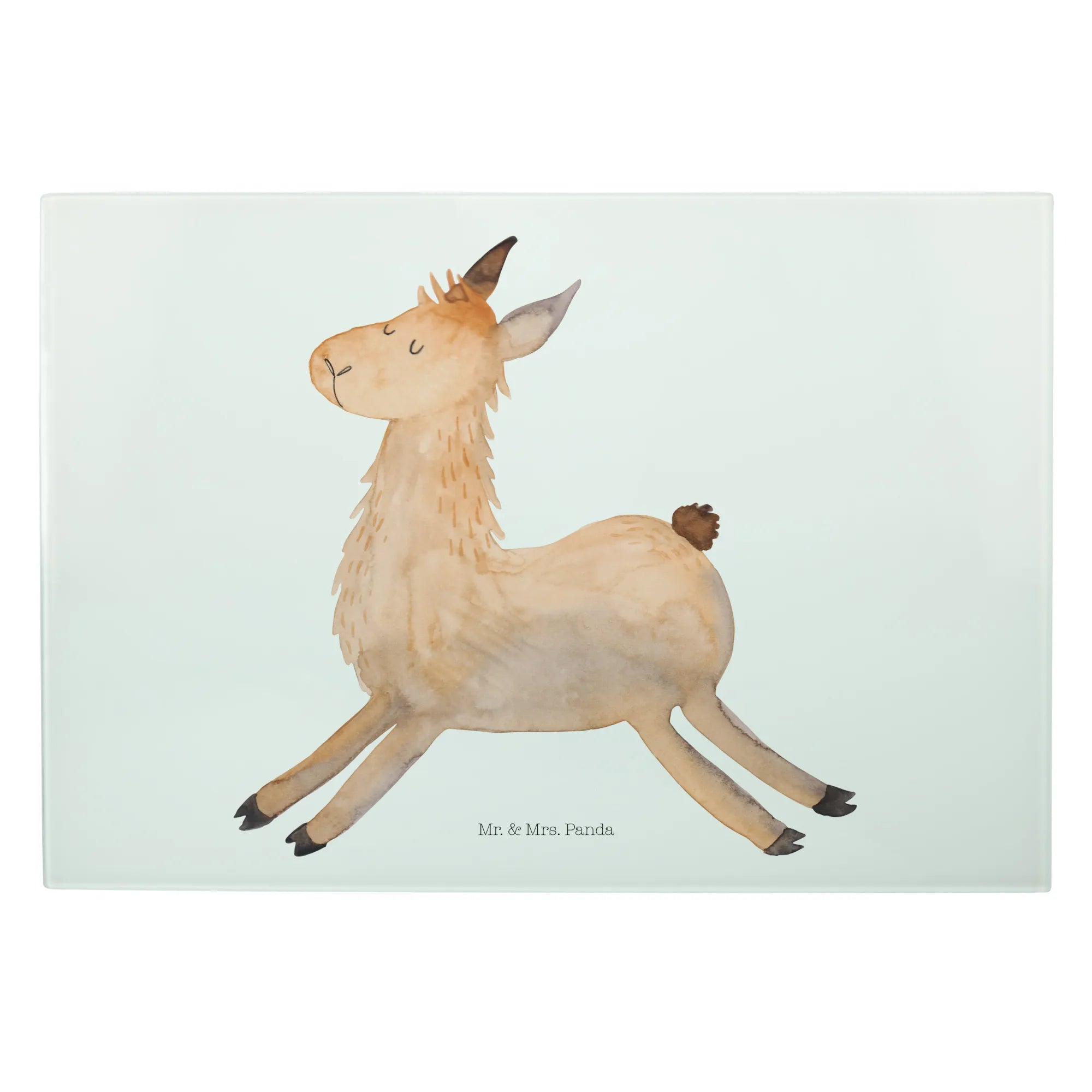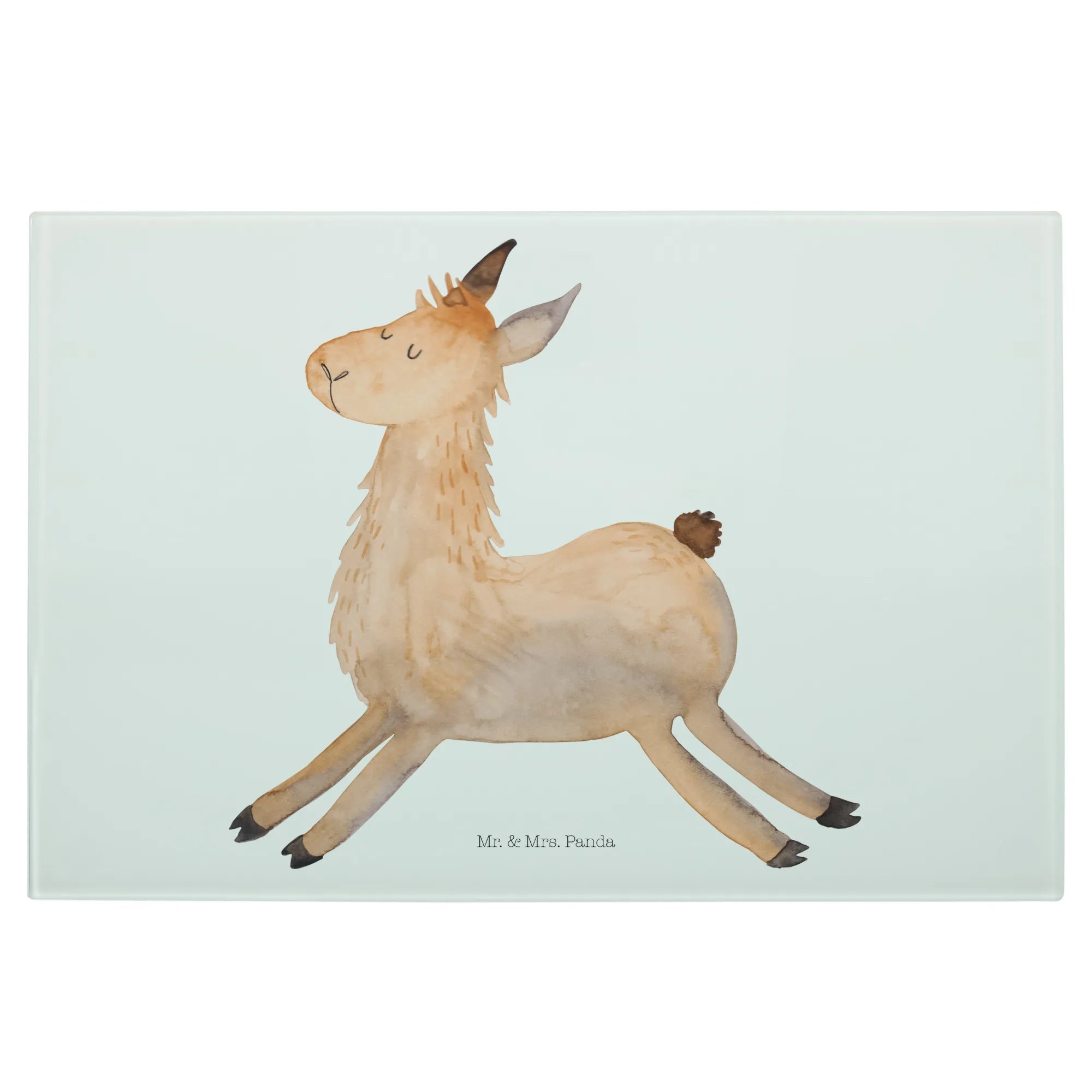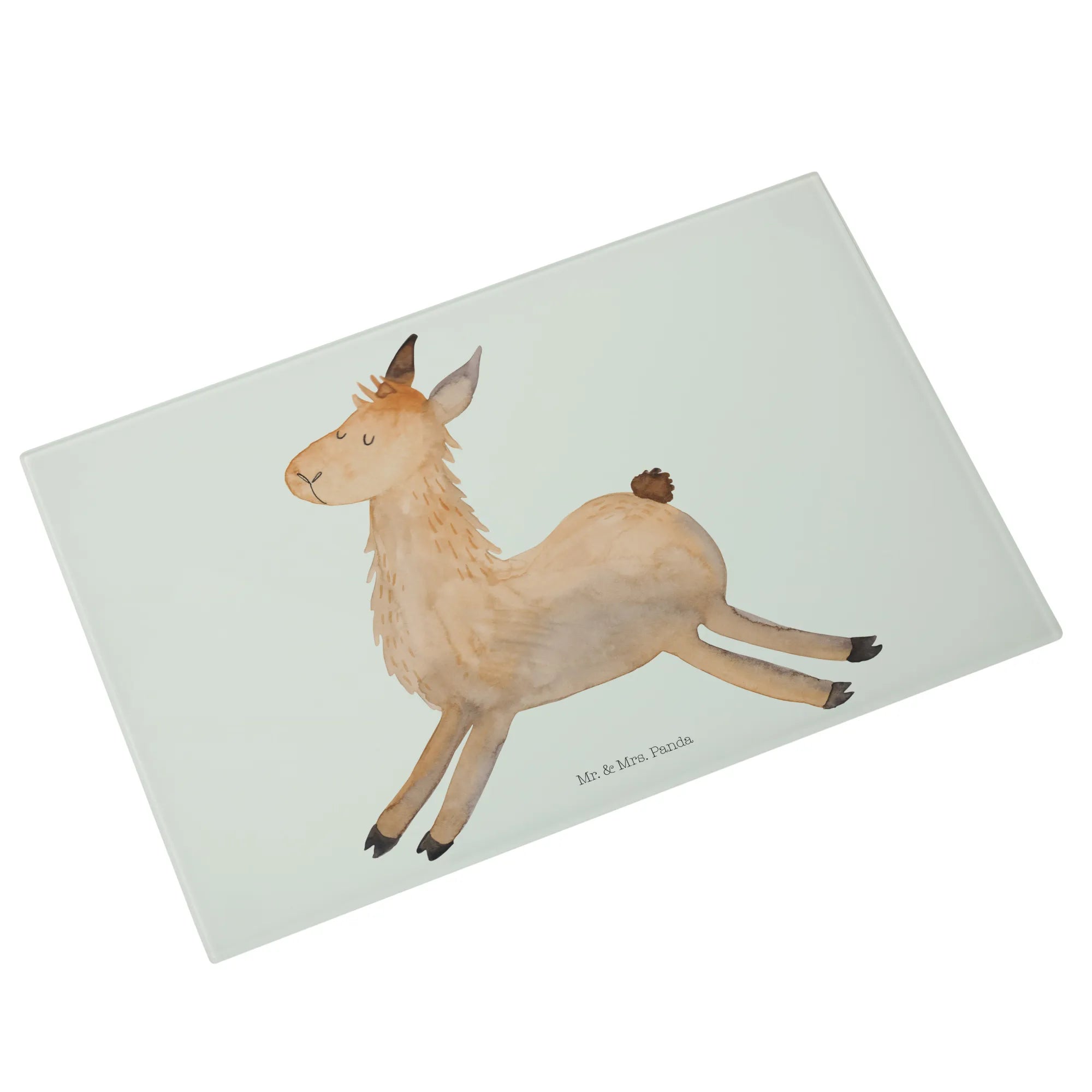 Glasschneidebrett Lama Springen - Medium Glas Schneidbrett - mit Spruch