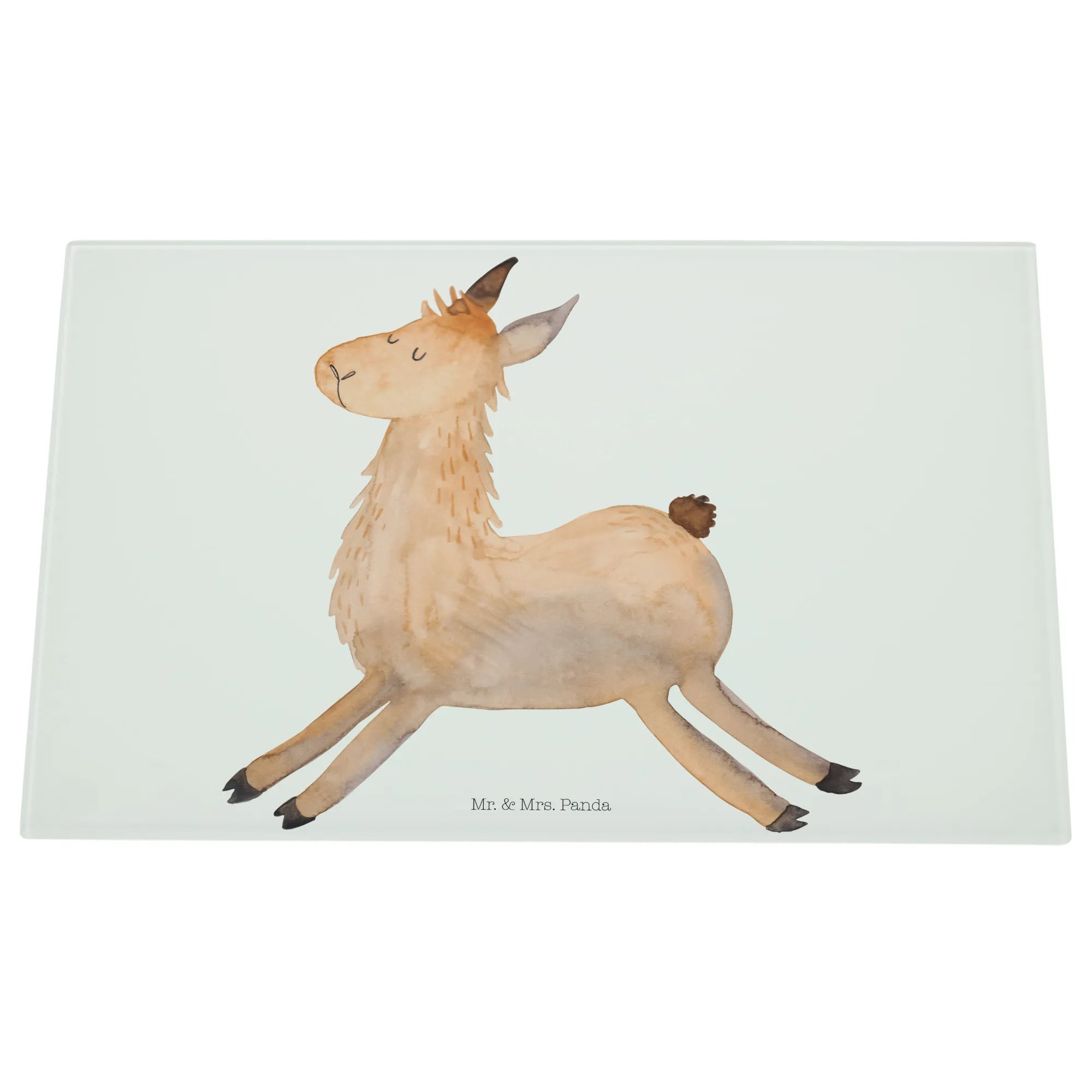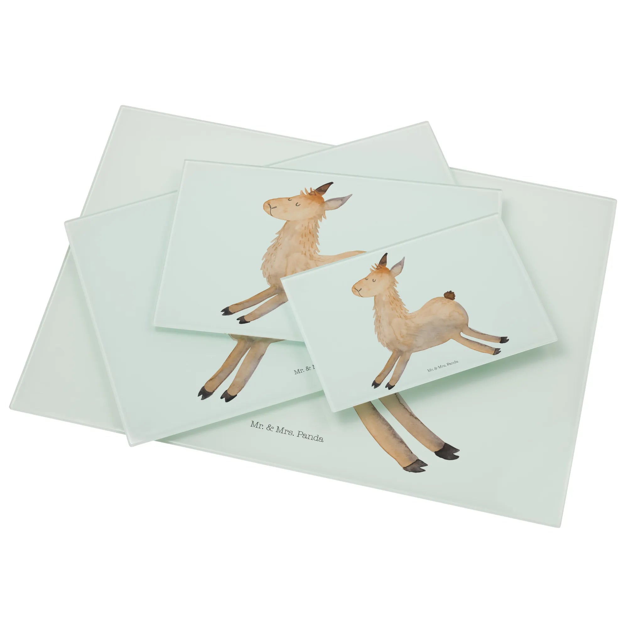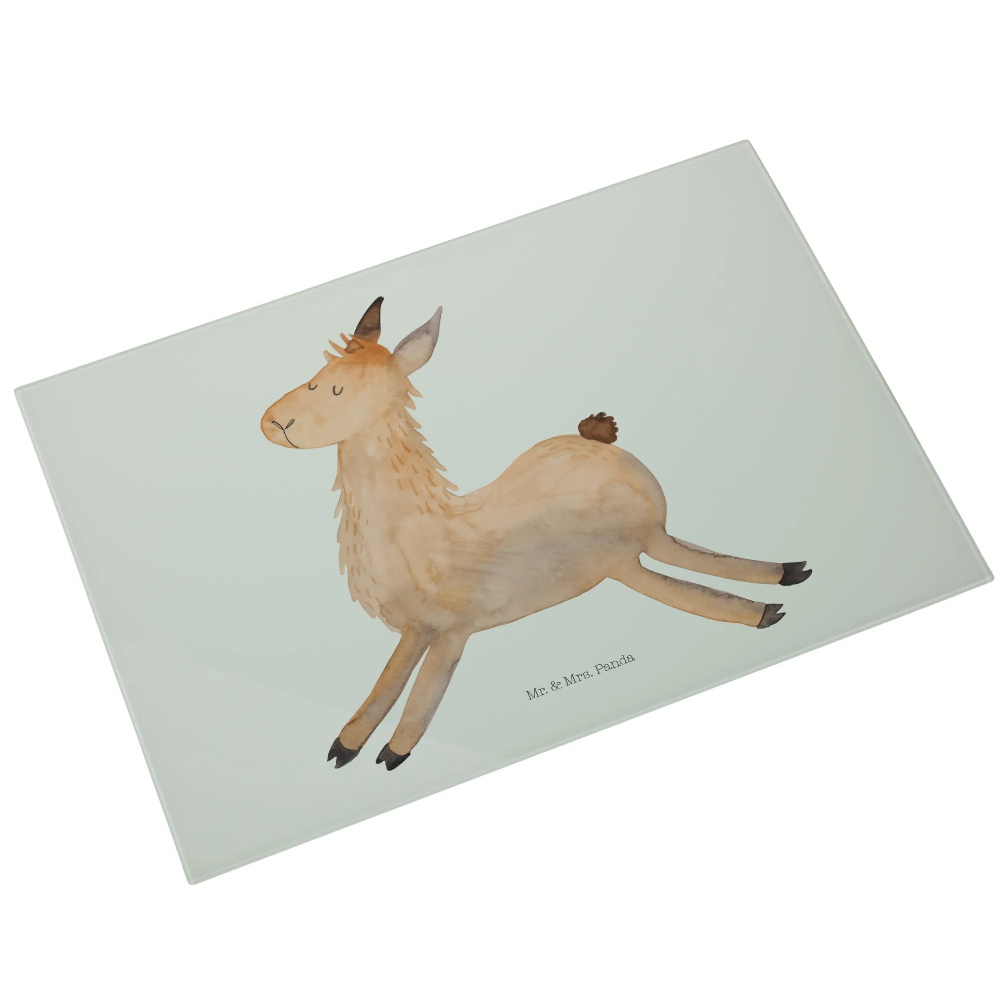 Glasschneidebrett Lama Springen - Medium Glas Schneidbrett - mit Spruch