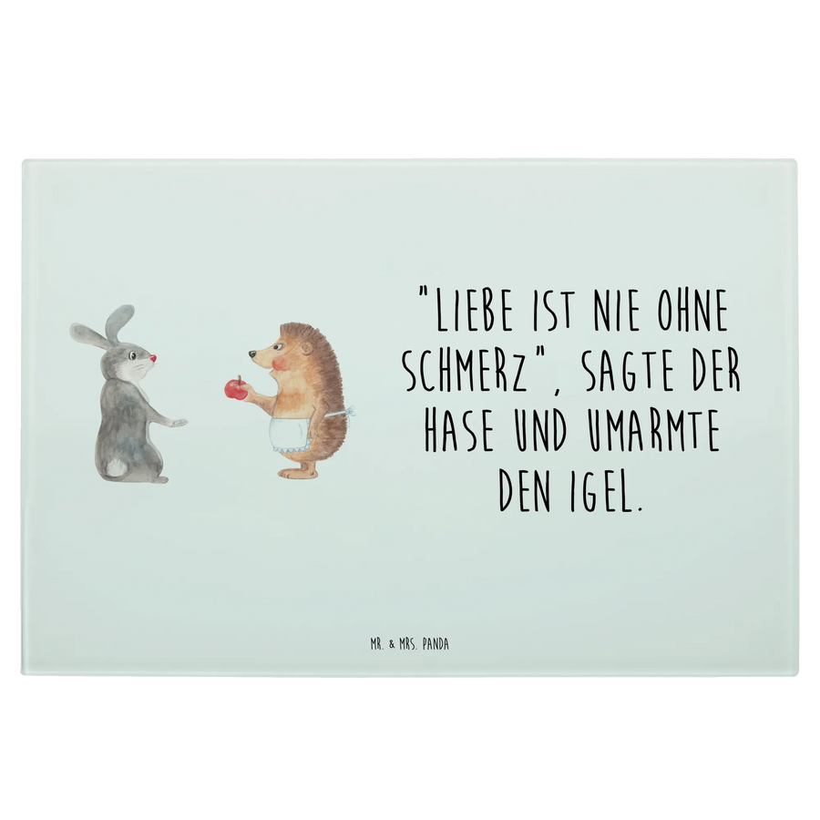 Das Medium Glas Schneidbrett mit dem bezaubernden Motiv 'Liebe ist nie ohne Schmerz' von Mr. & Mrs. Panda ist nicht nur ein Küchenutensil, sondern auch ein wunderschönes, inspirierendes Dekorationsstück. Dieses Schneidebrett zeigt den süßen Hase und den niedlichen Igel, die sich umarmen und somit die traute Zweisamkeit in der Liebe symbolisieren.