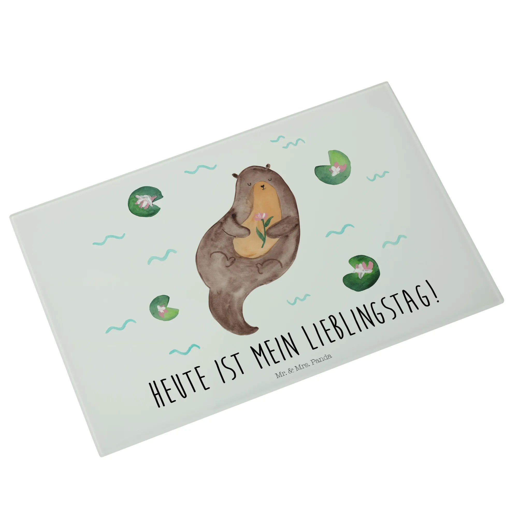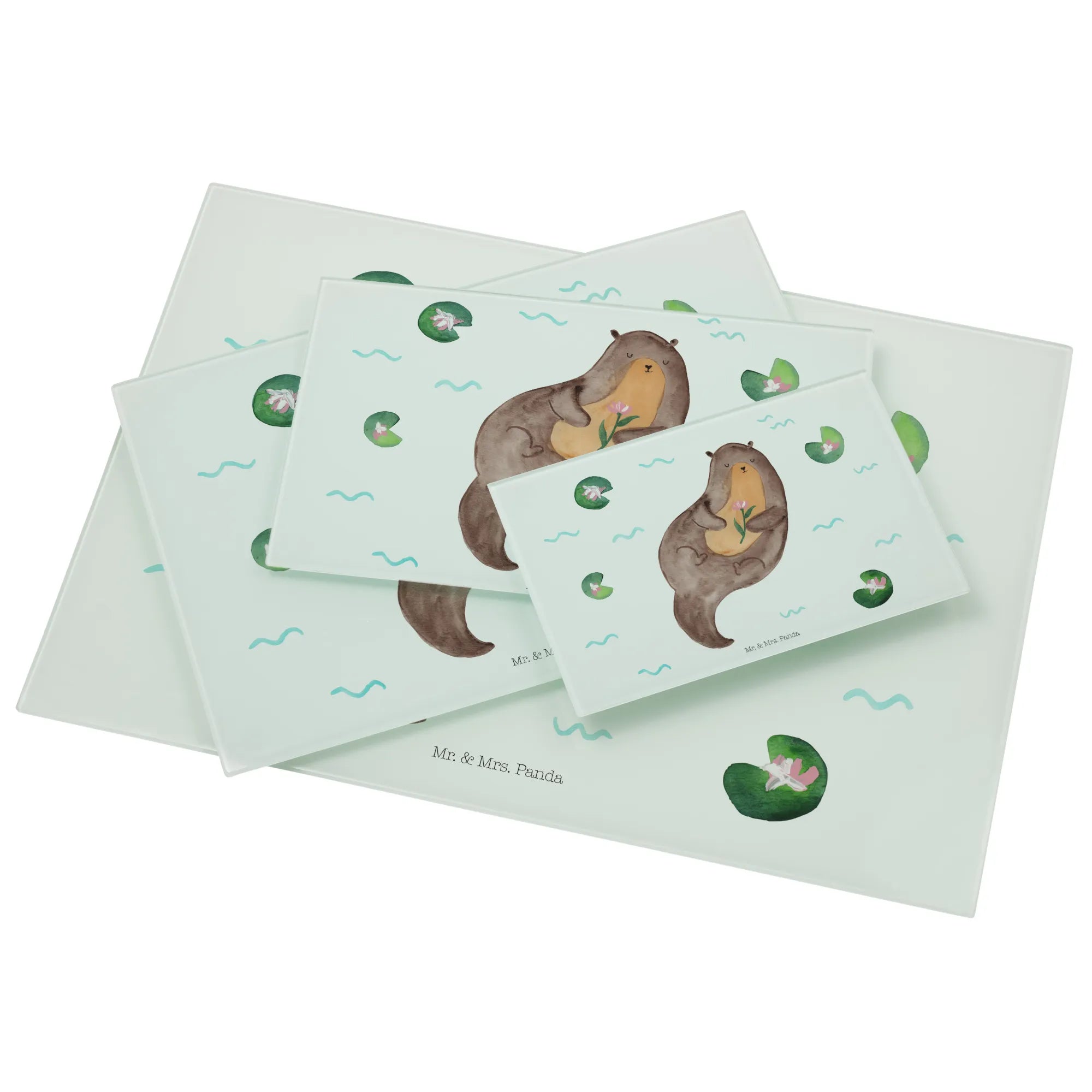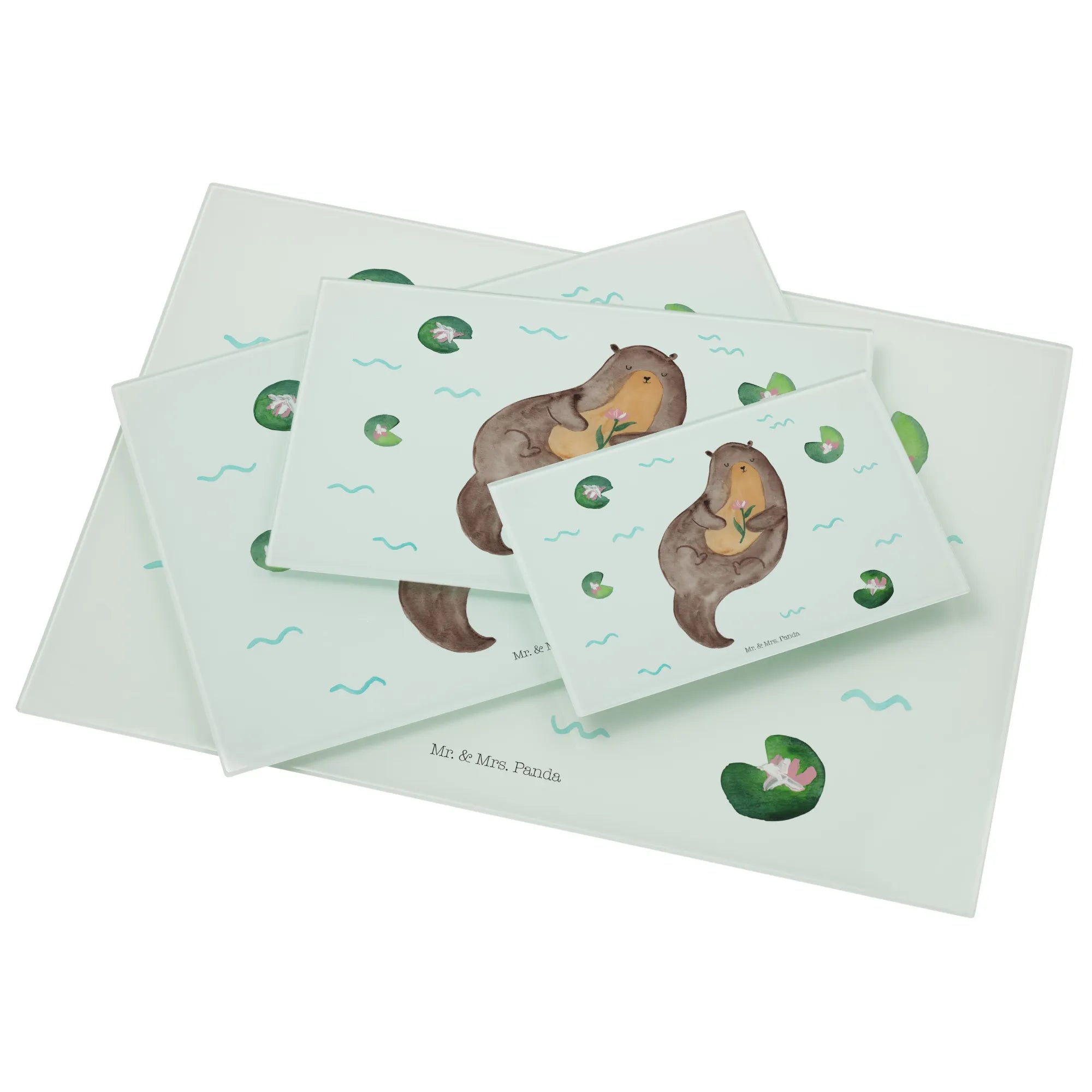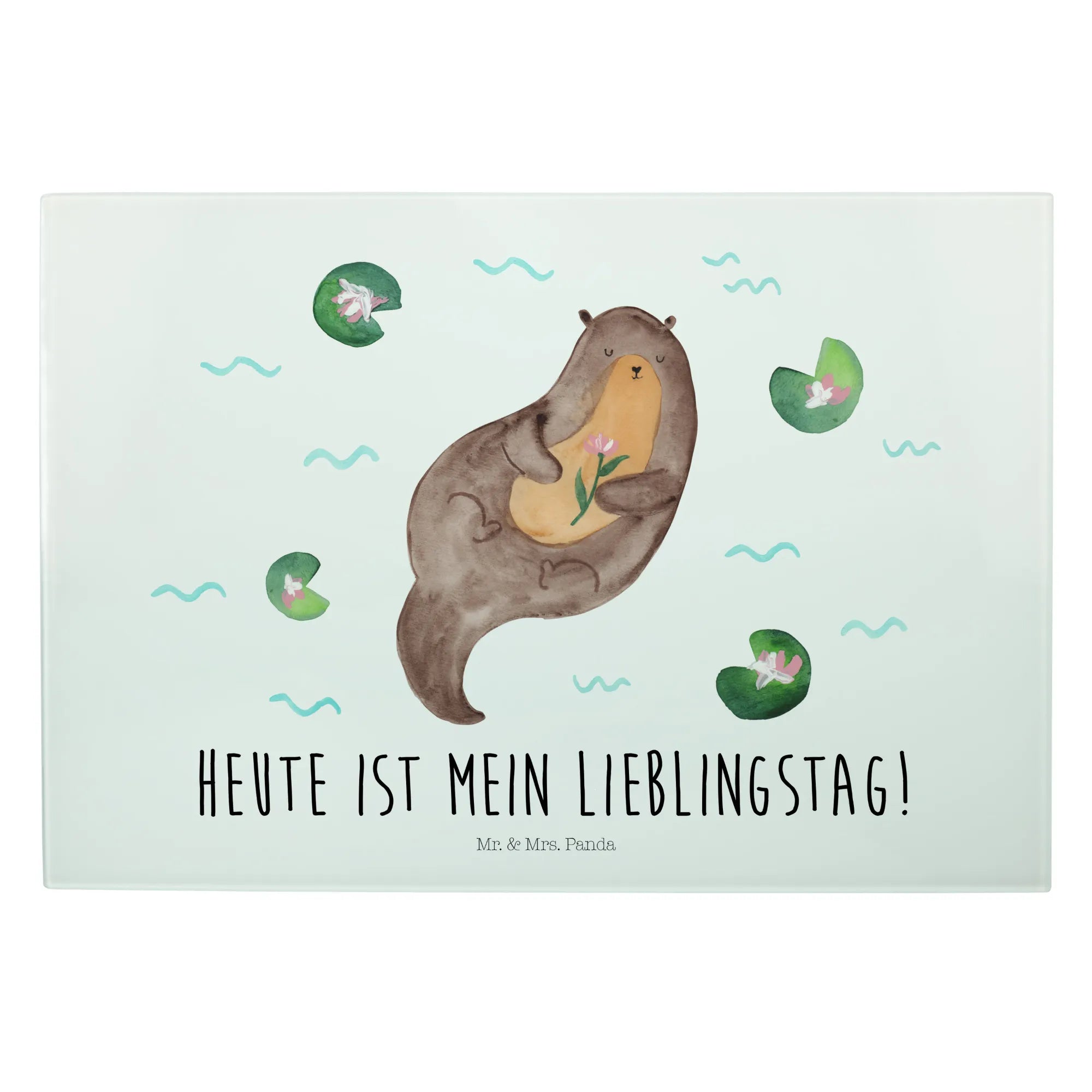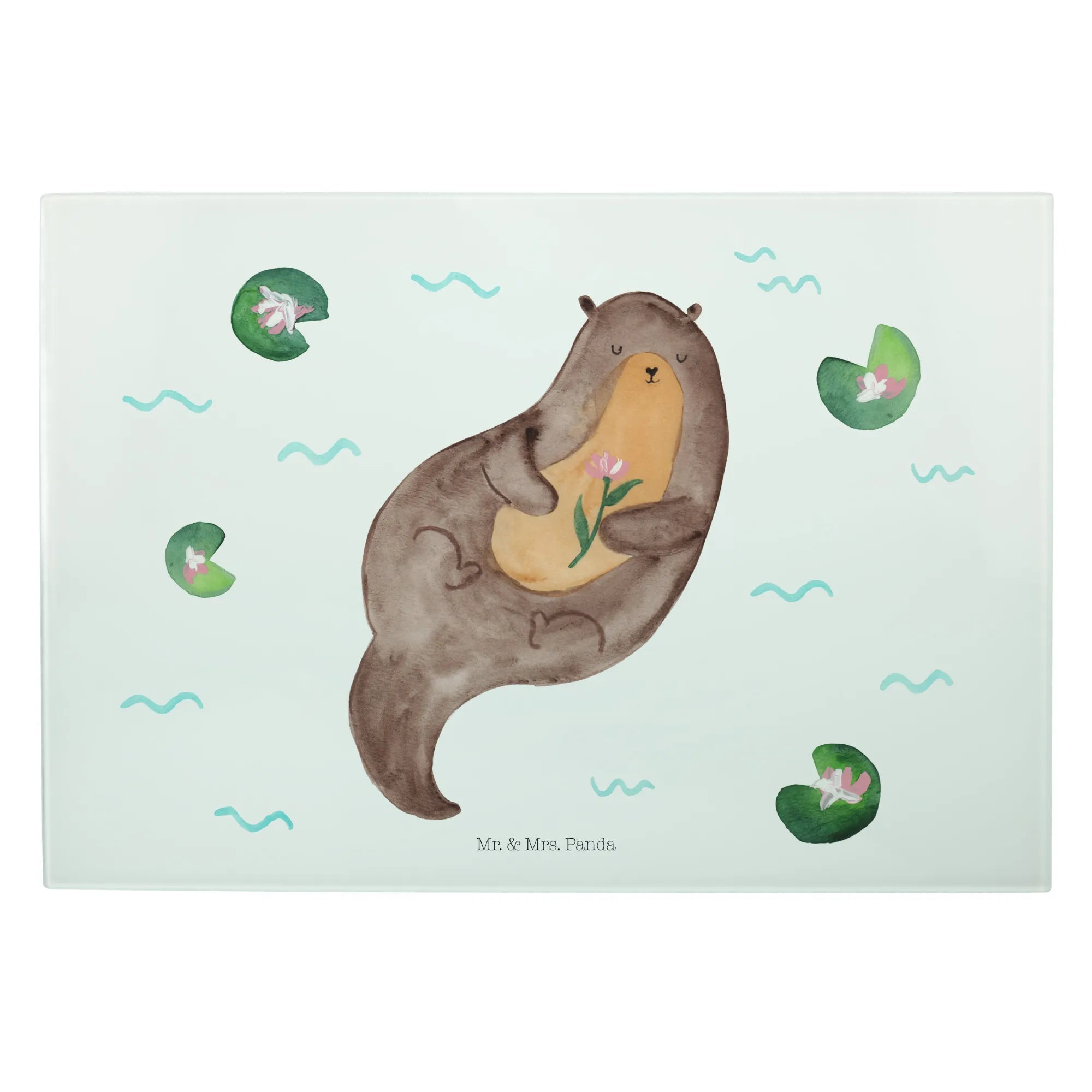 Glasschneidebrett Otter Seerose - Medium Glas Schneidbrett - mit Spruch - Weiß