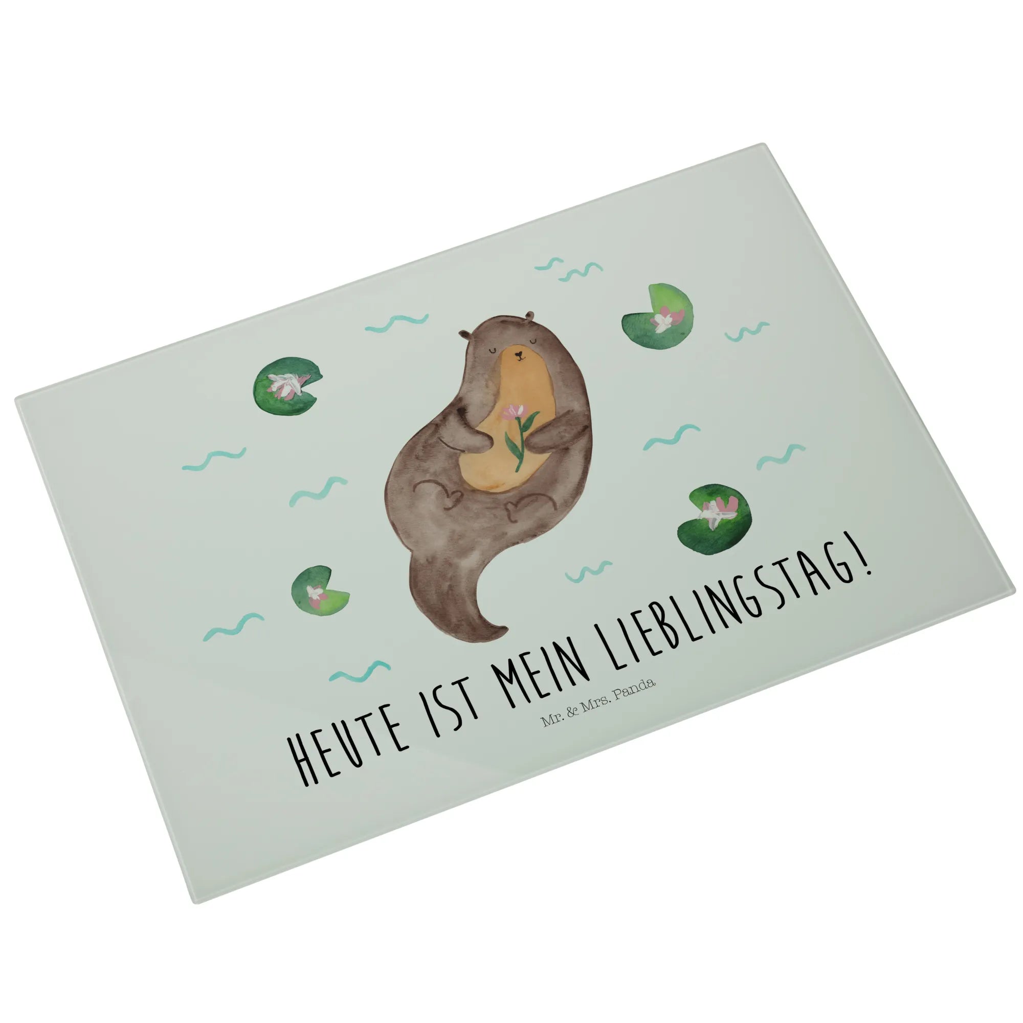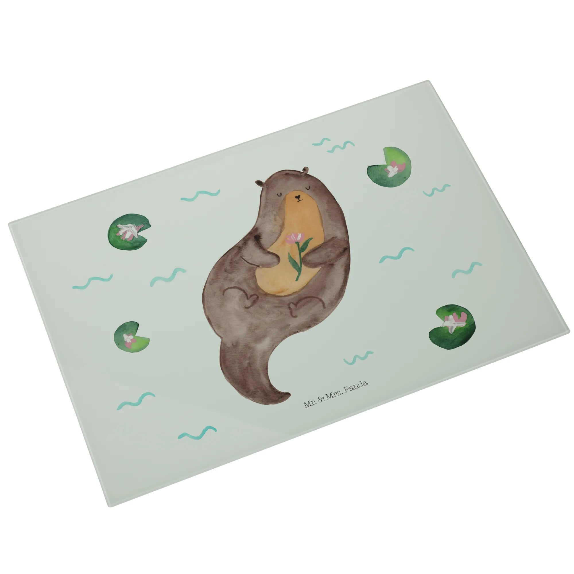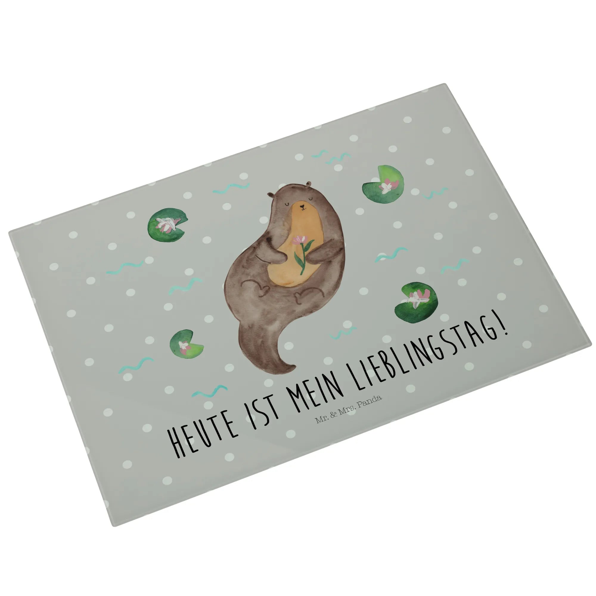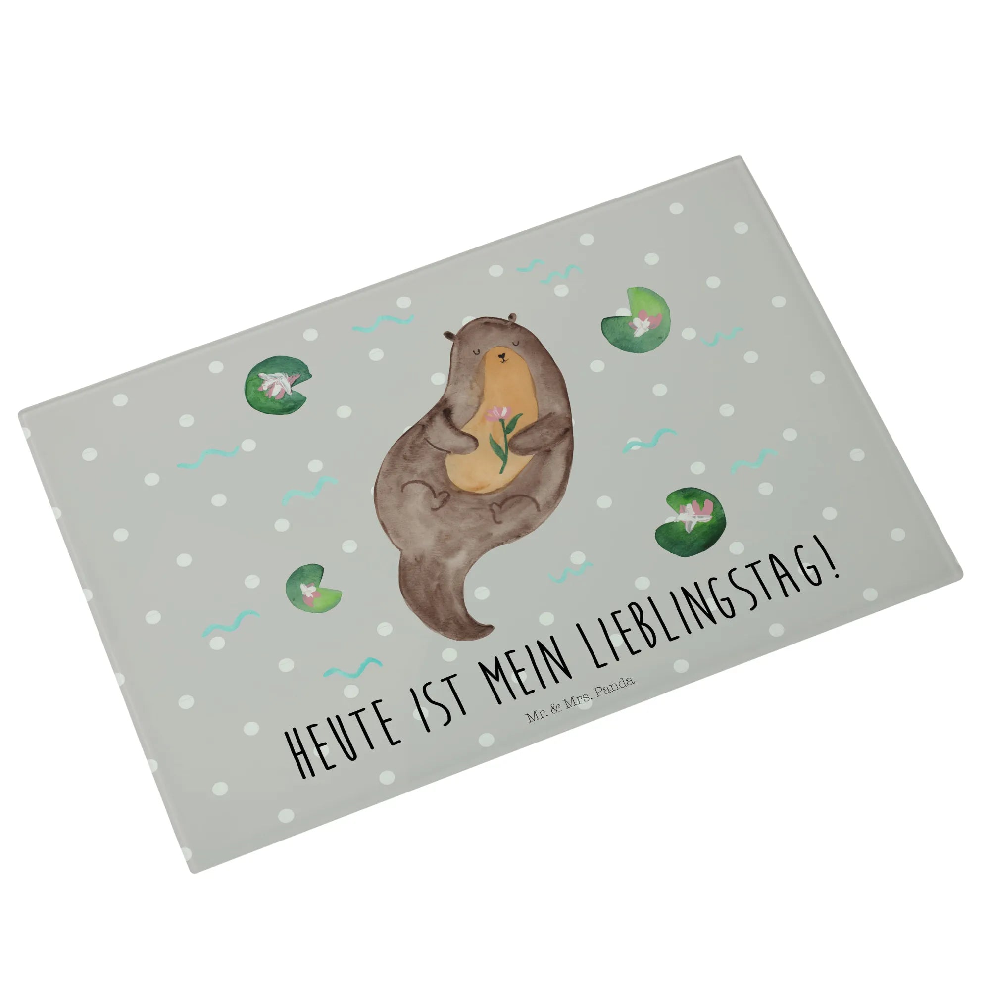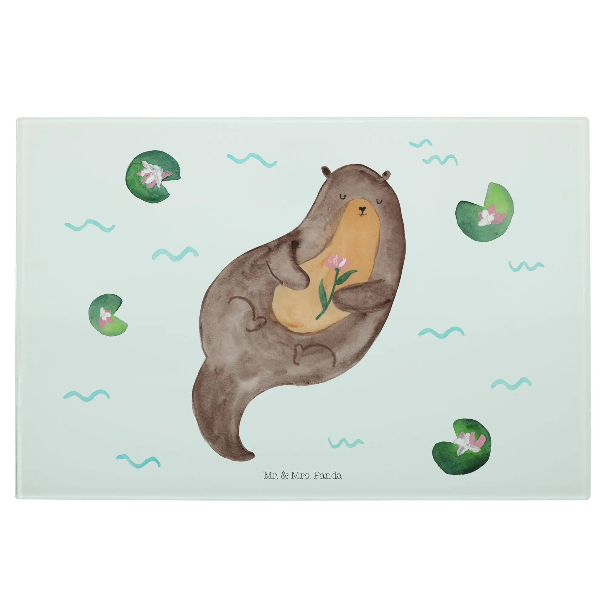 Glasschneidebrett Otter Seerose - Medium Glas Schneidbrett - mit Spruch - Weiß