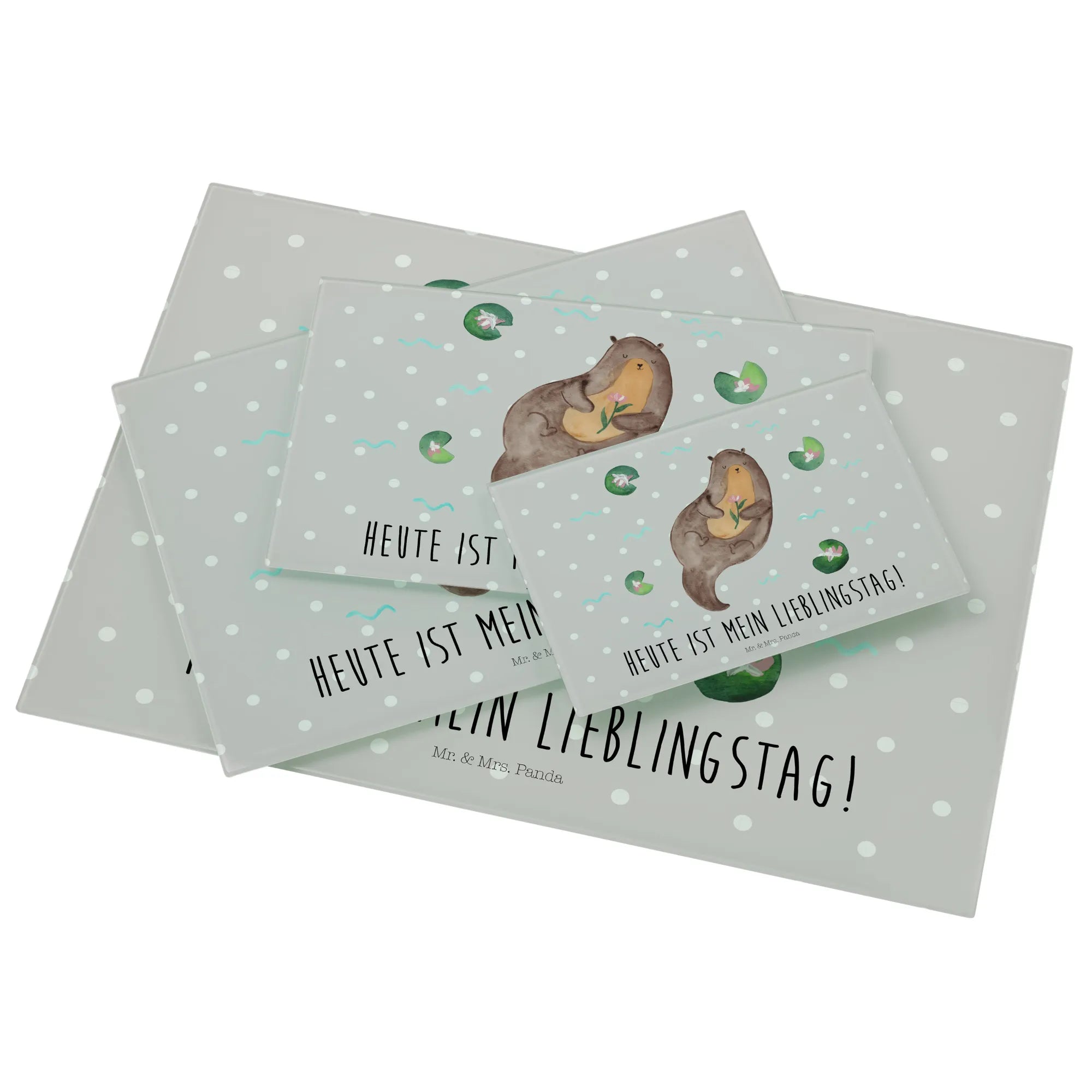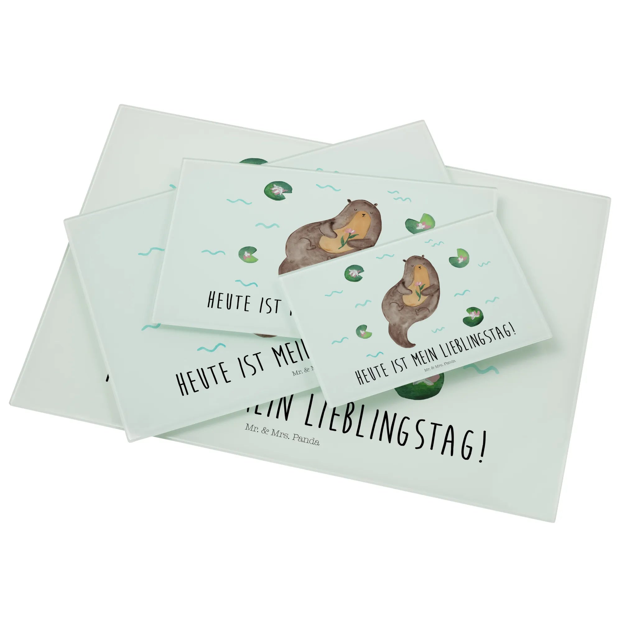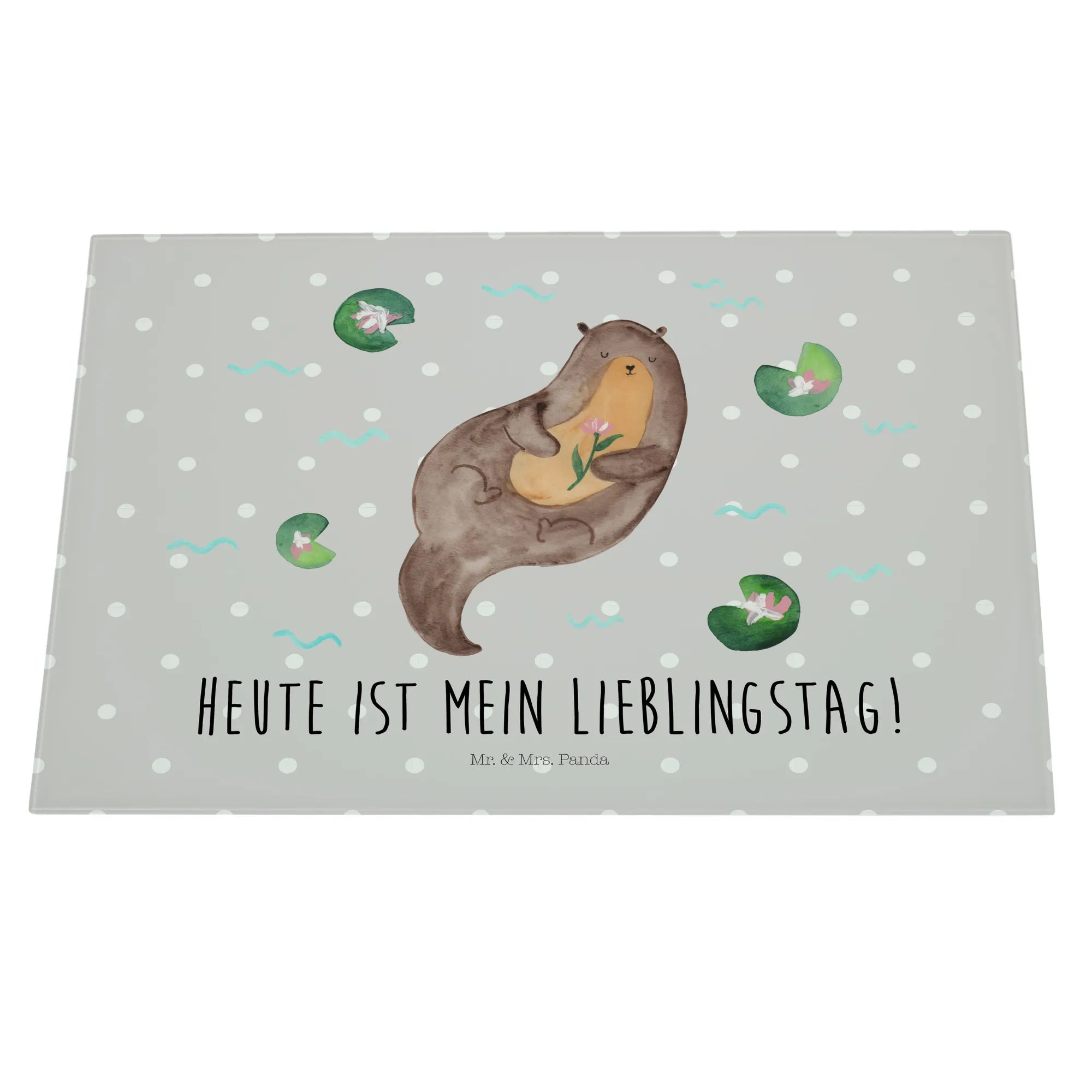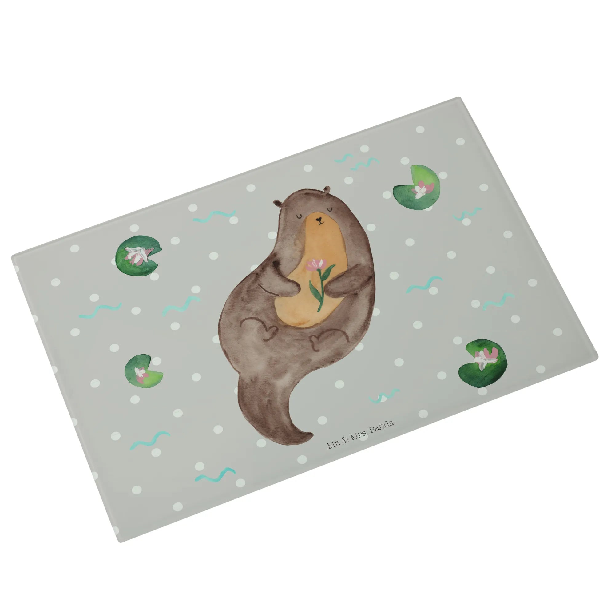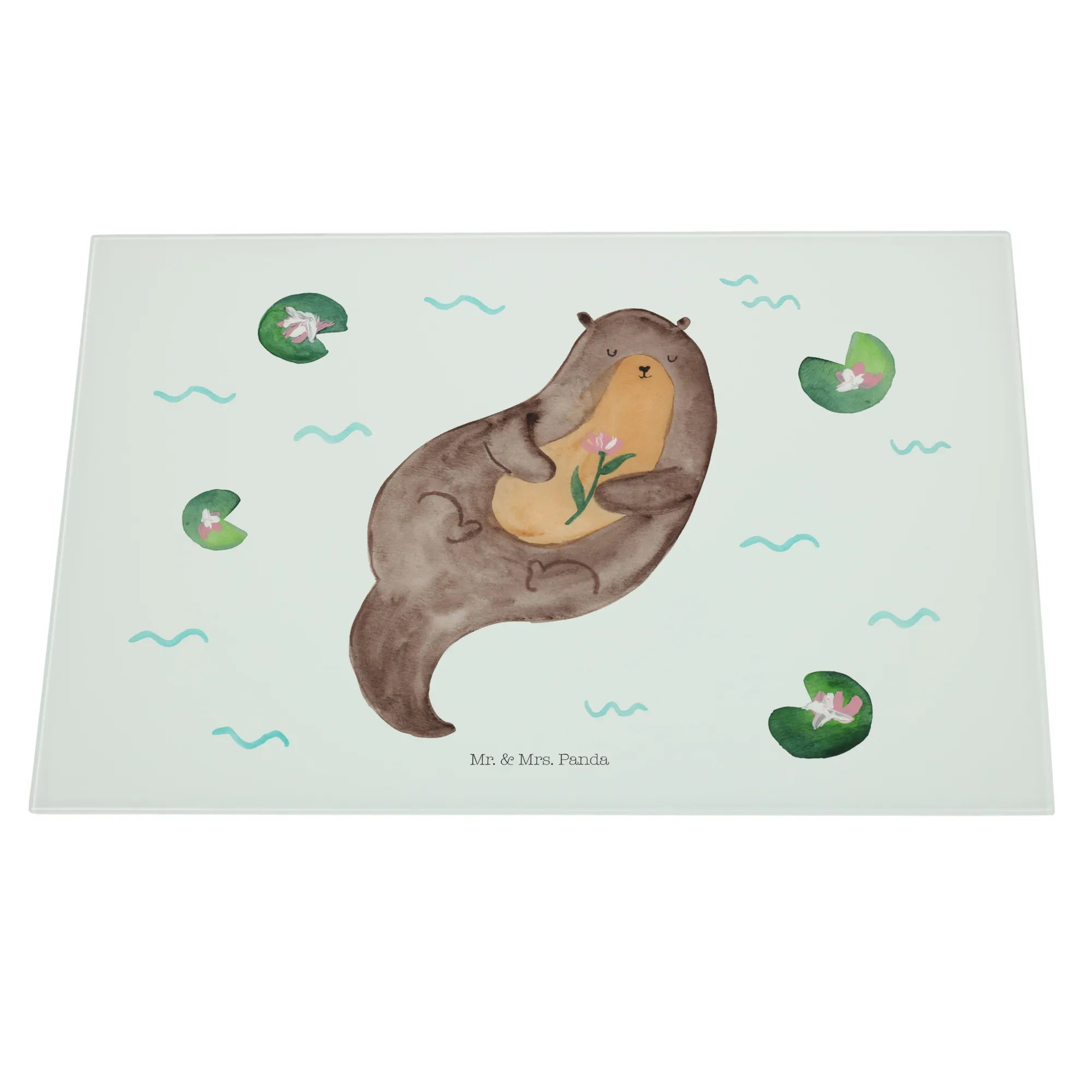 Glasschneidebrett Otter Seerose - Medium Glas Schneidbrett - mit Spruch - Weiß