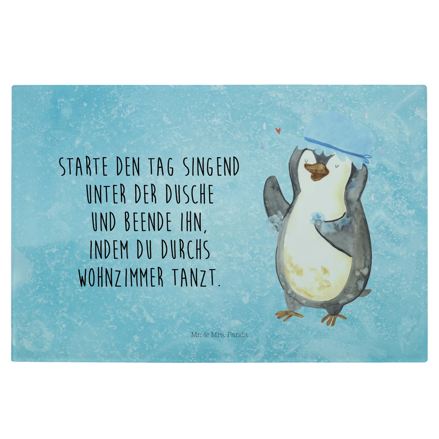 Das XL Glas Schneidbrett "Pinguin duscht" aus der liebevollen Pinguin-Kollektion von Mr. & Mrs. Panda ist das perfekte Geschenk für alle, die eine Prise gute Laune in ihrer Küche benötigen!