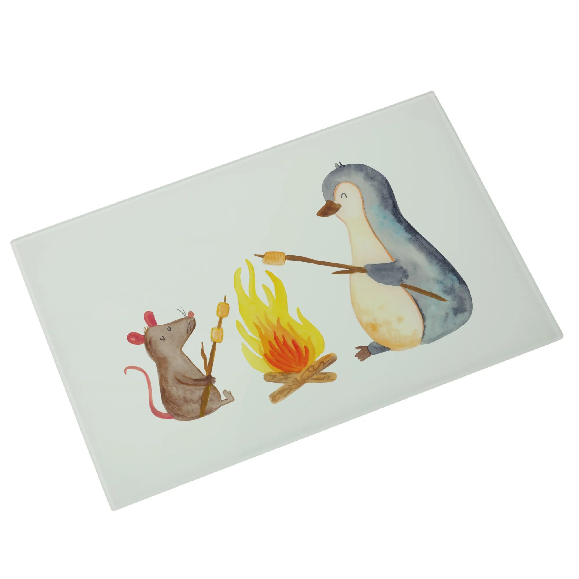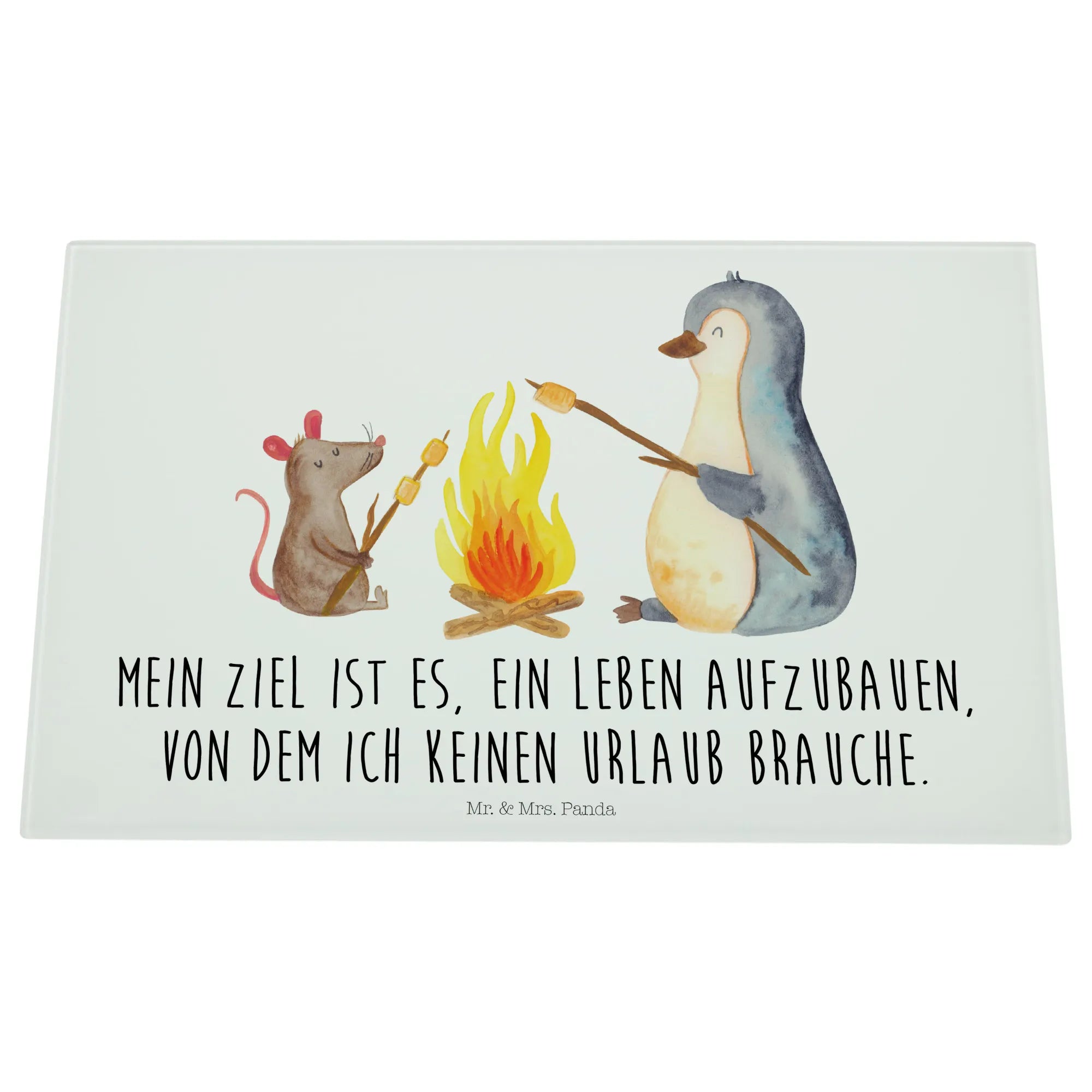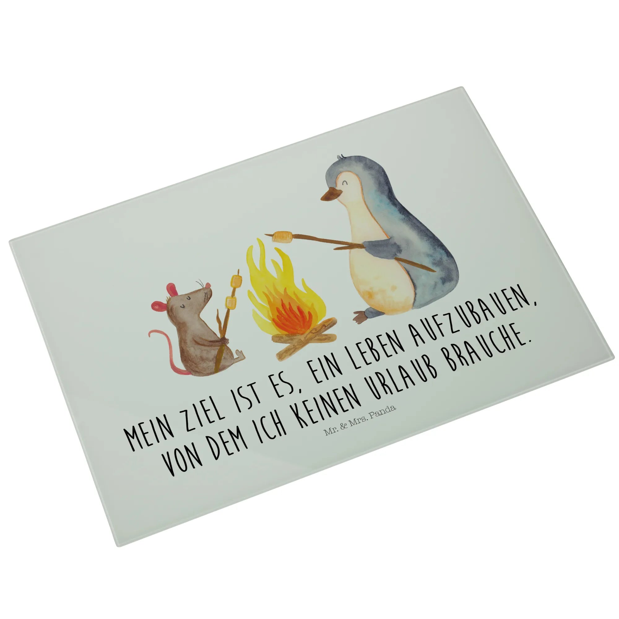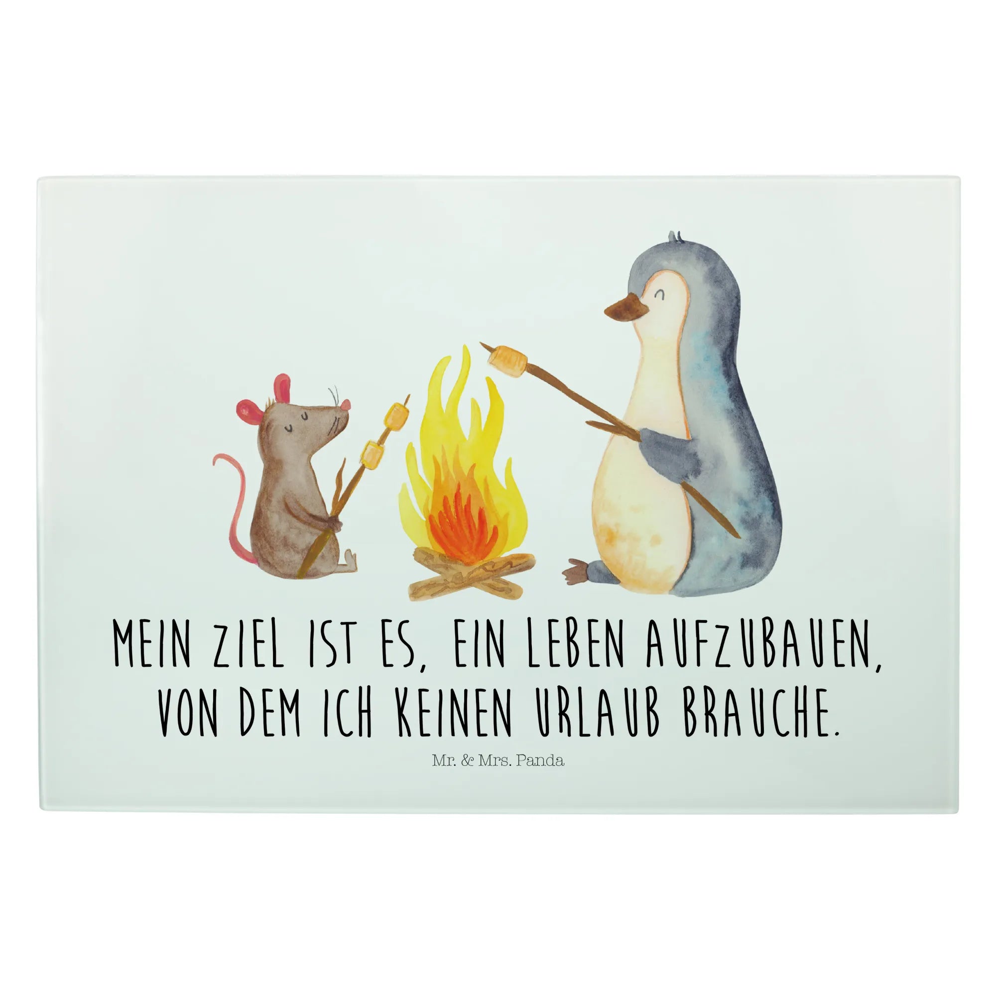 Das Medium Glasschneidebrett mit dem süßen Pinguin Lagerfeuer Motiv von Mr. & Mrs. Panda ist das perfekte Geschenk für alle, die das Leben genießen und sich gerne in der Küche kreativ ausleben. Das bezaubernde Design zeigt nicht nur einen fröhlichen Pinguin und eine Maus, die am Lagerfeuer Marshmallows rösten, sondern weckt auch die Sehnsucht nach Geselligkeit und schönen Momenten mit Freunden und Familie.