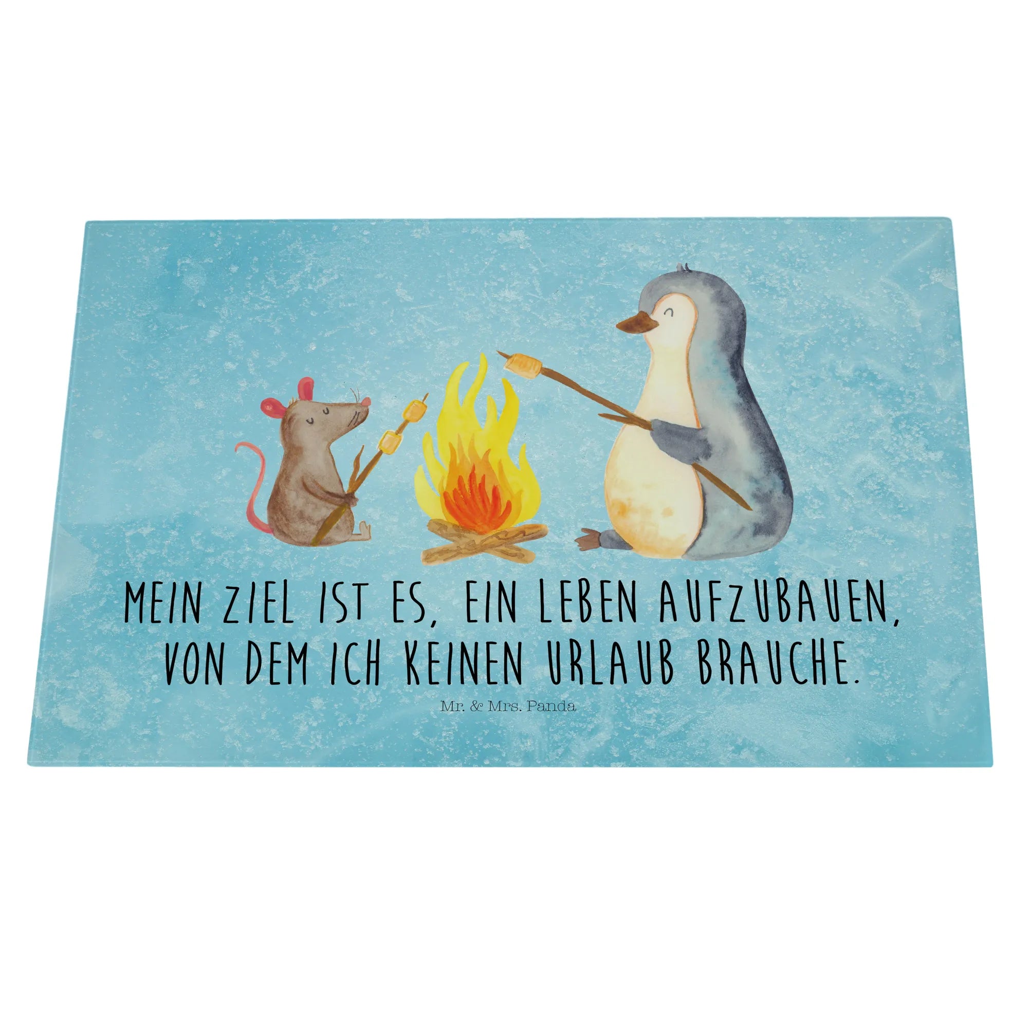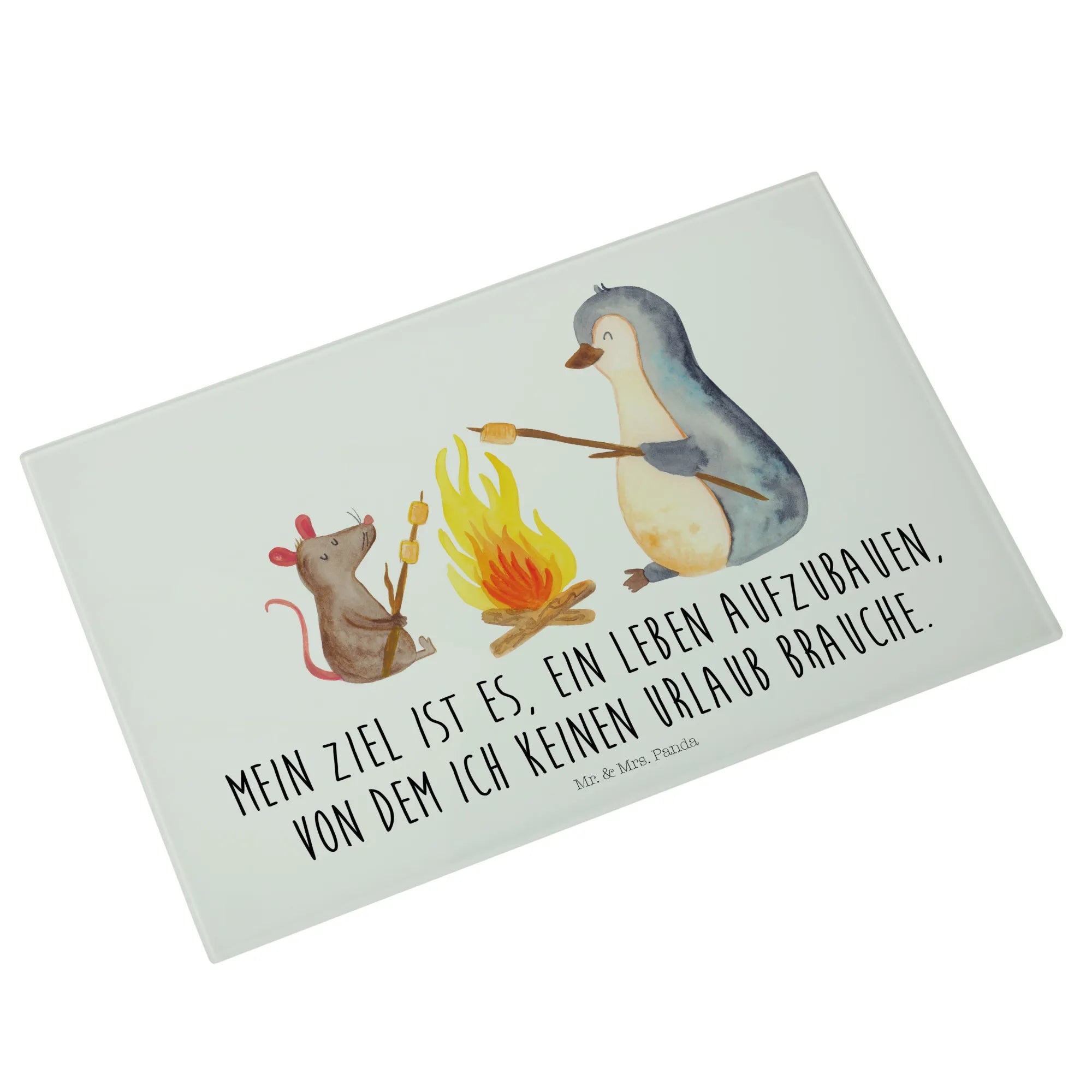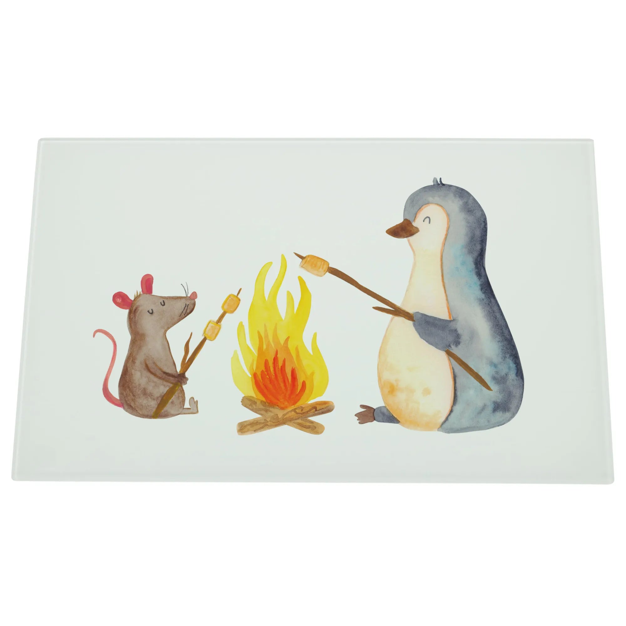 Das Medium Glasschneidebrett mit dem süßen Pinguin Lagerfeuer Motiv von Mr. & Mrs. Panda ist das perfekte Geschenk für alle, die das Leben genießen und sich gerne in der Küche kreativ ausleben. Das bezaubernde Design zeigt nicht nur einen fröhlichen Pinguin und eine Maus, die am Lagerfeuer Marshmallows rösten, sondern weckt auch die Sehnsucht nach Geselligkeit und schönen Momenten mit Freunden und Familie.