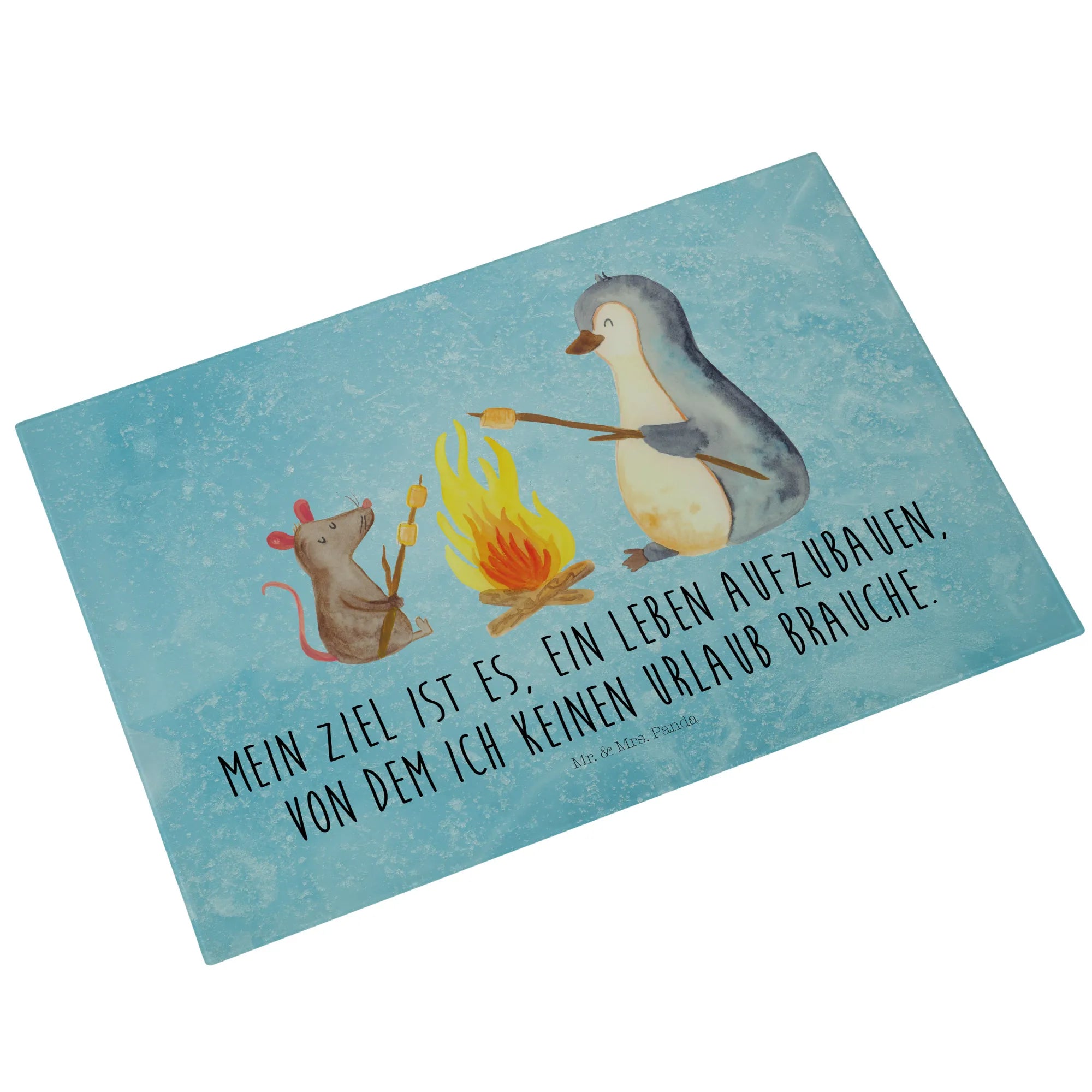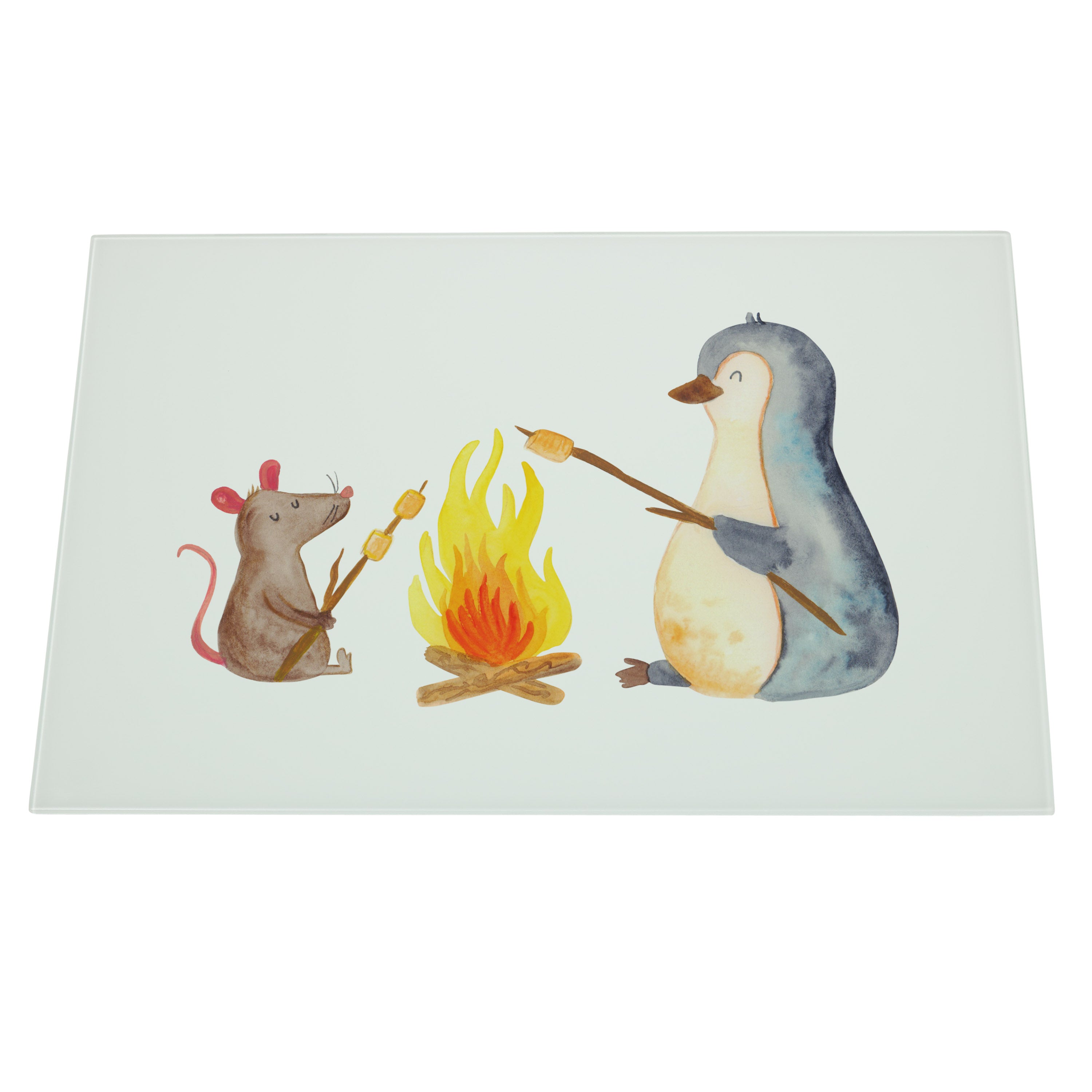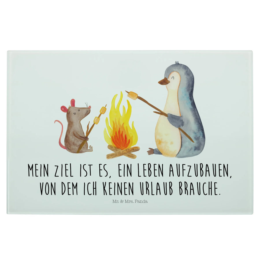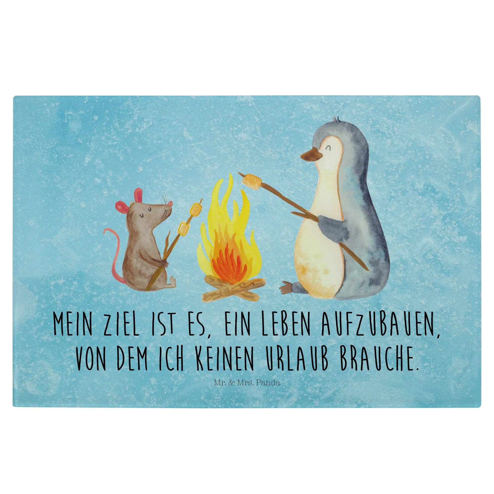Das Medium Glasschneidebrett mit dem süßen Pinguin Lagerfeuer Motiv von Mr. & Mrs. Panda ist das perfekte Geschenk für alle, die das Leben genießen und sich gerne in der Küche kreativ ausleben. Das bezaubernde Design zeigt nicht nur einen fröhlichen Pinguin und eine Maus, die am Lagerfeuer Marshmallows rösten, sondern weckt auch die Sehnsucht nach Geselligkeit und schönen Momenten mit Freunden und Familie.
