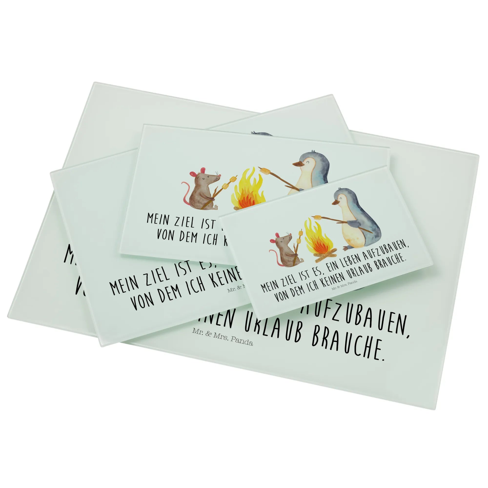 Entdecke das perfekte Geschenk für alle, die die kleinen Momente im Leben schätzen! Das Medium Glas Schneidbrett mit dem liebevollen Pinguin Lagerfeuer Motiv von Mr. & Mrs. Panda ist nicht nur ein praktischer Küchenhelfer, sondern auch ein wunderschöner Hingucker.
