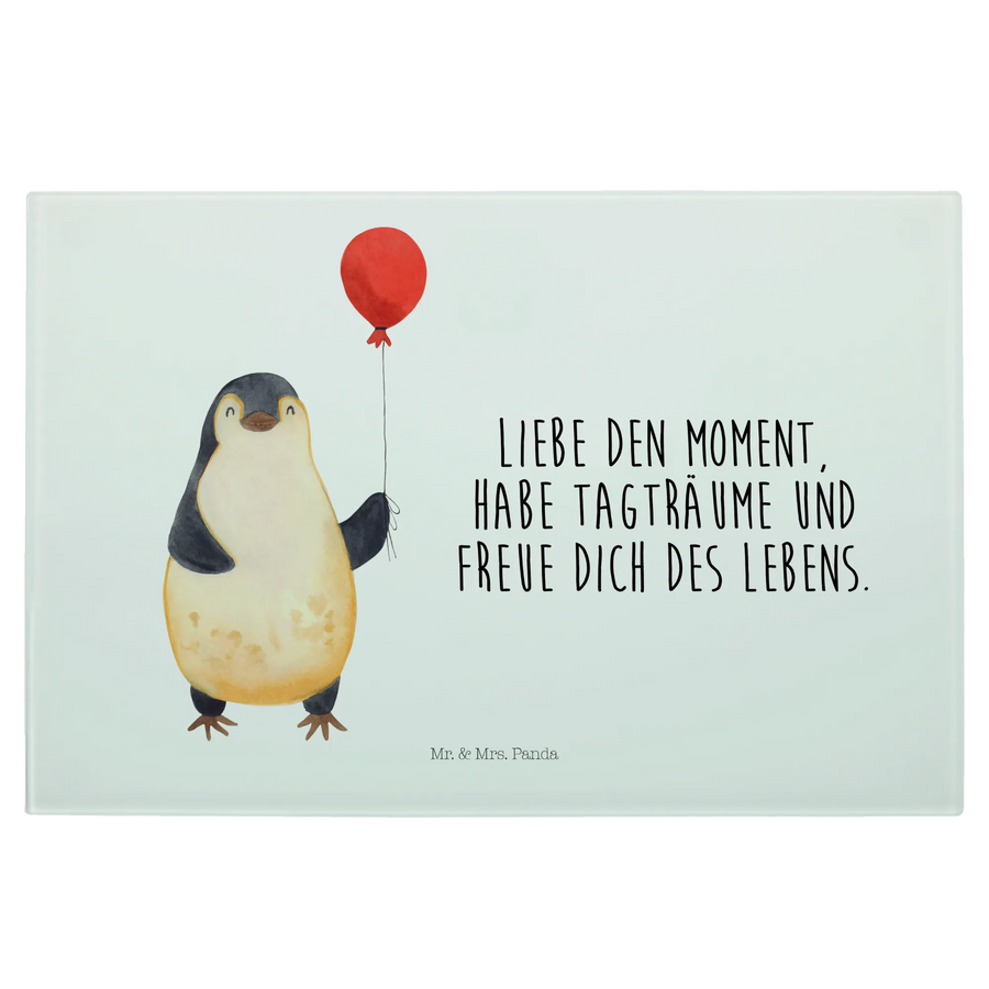 Das XL Glas Schneidbrett Pinguin Luftballon von Mr. & Mrs. Panda ist nicht nur ein praktisches Küchenaccessoire, sondern auch ein wunderschönes Dekorationsstück, das eine positive Note in deine Küche bringt. Mit einem süßen Pinguin, der einen bunten Luftballon in der Hand hält, und dem inspirierenden Spruch "Liebe den Moment, habe Tagträume und freue dich des Lebens" ist dieses Schneidebrett mehr als nur ein Werkzeug. Es ist eine liebevolle Erinnerung daran, die kleinen Dinge im Leben zu schätzen und den Moment zu genießen.
