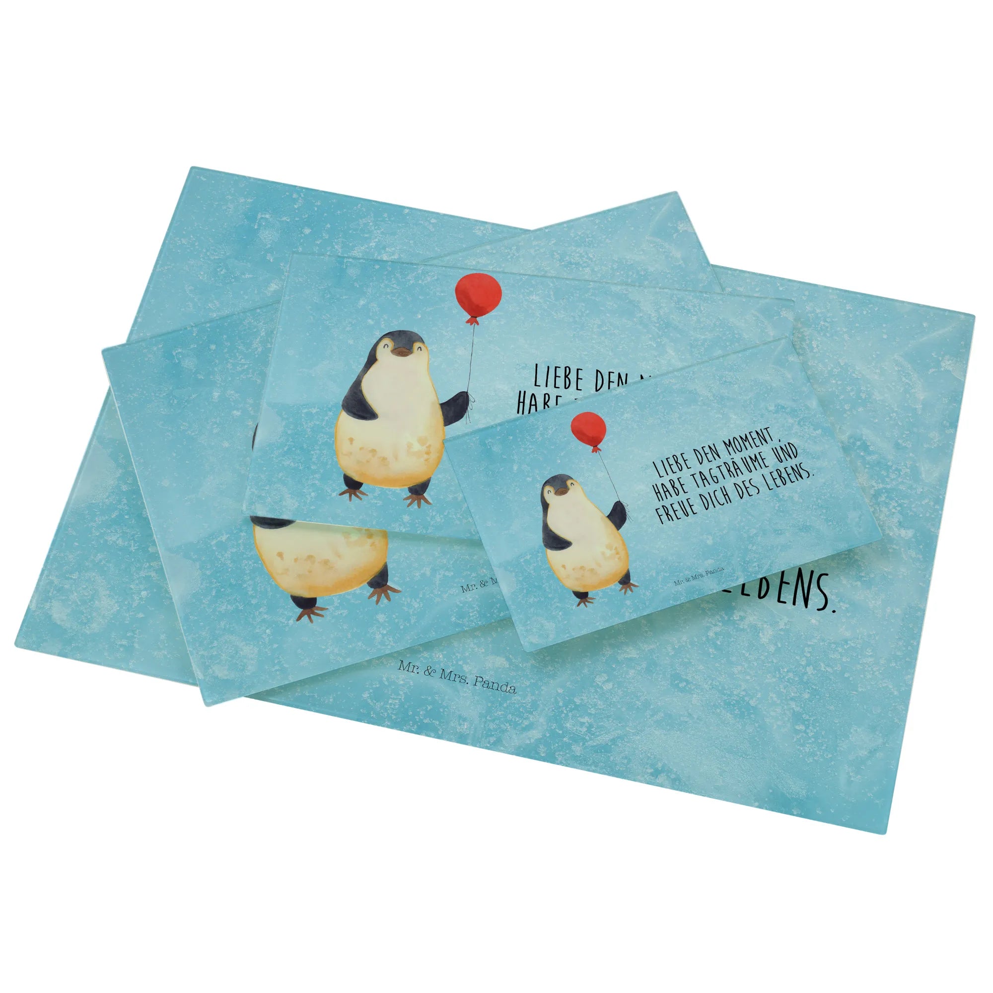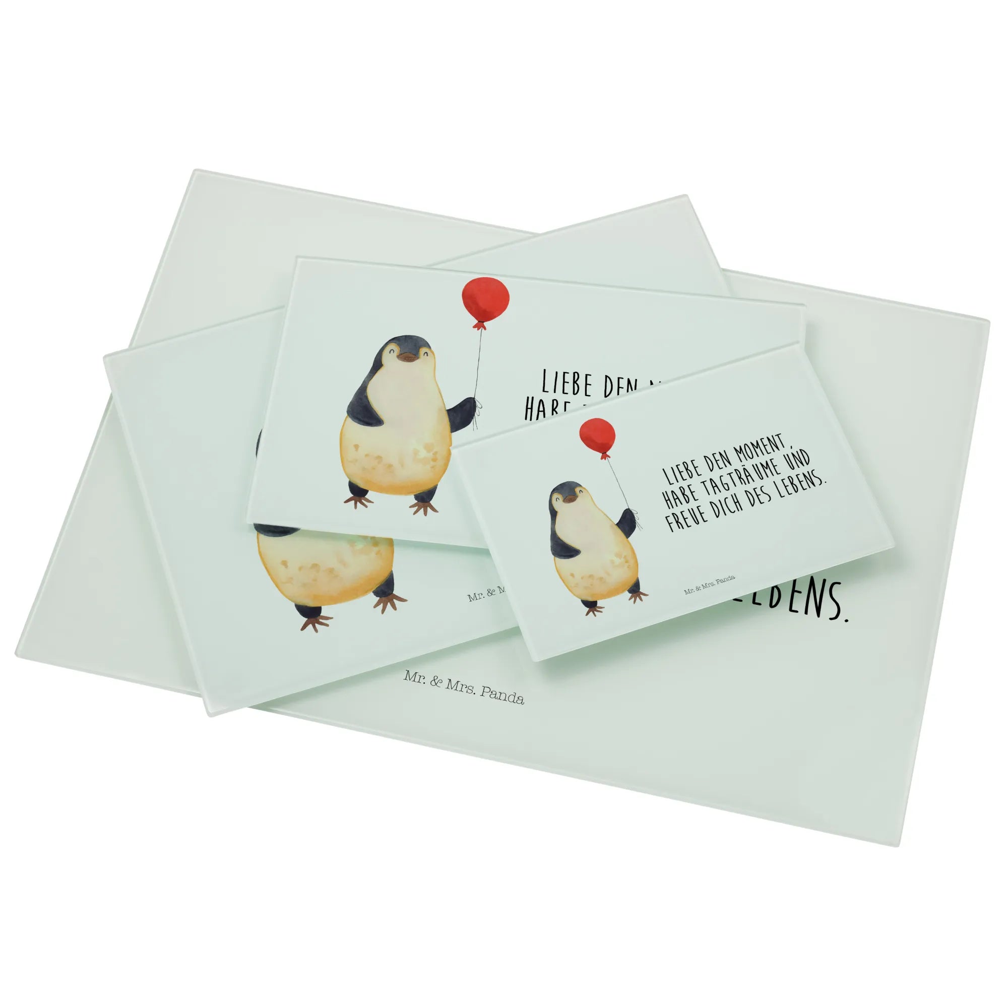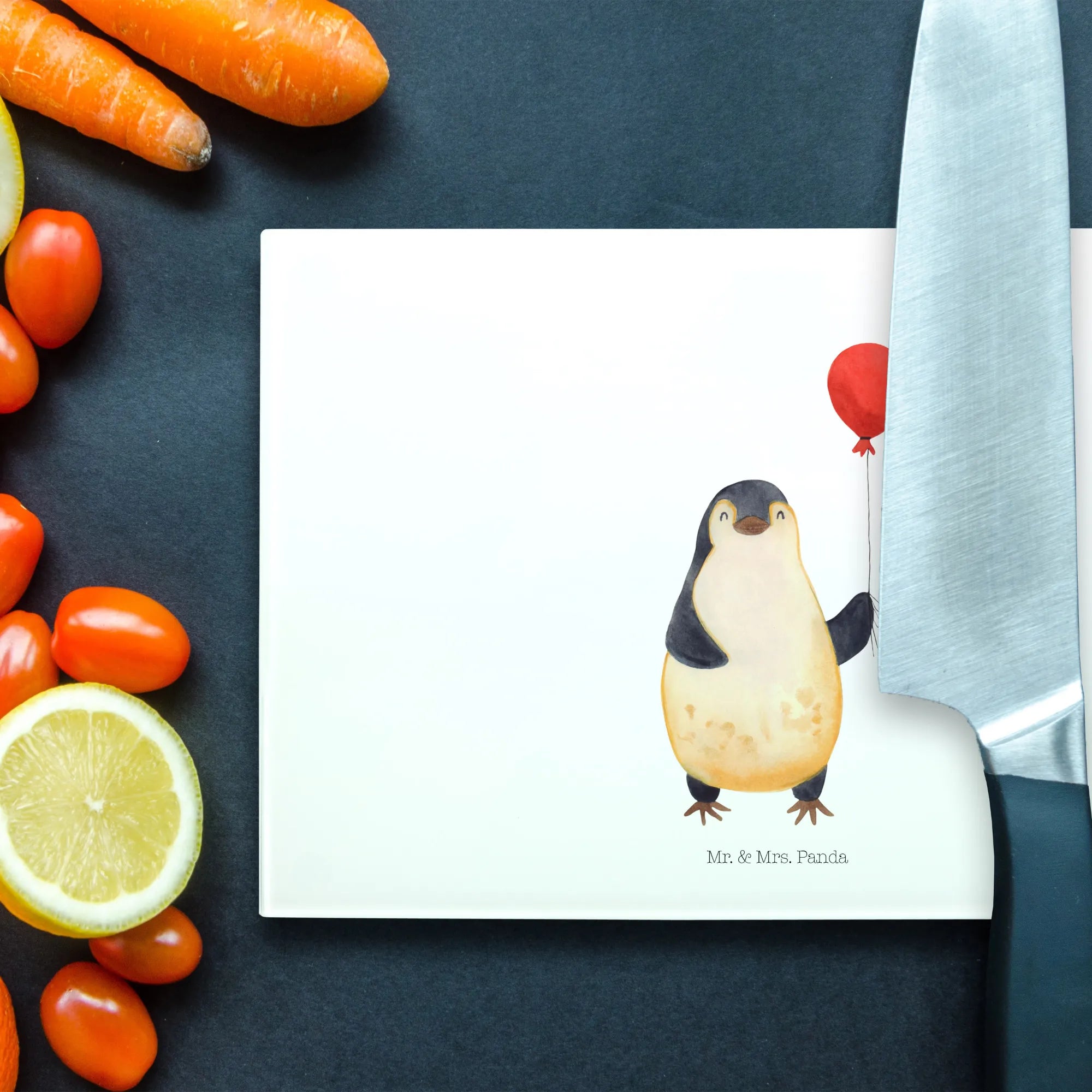 Glasschneidebrett Pinguin Luftballon - Medium Glas Schneidbrett - mit Spruch - Weiß