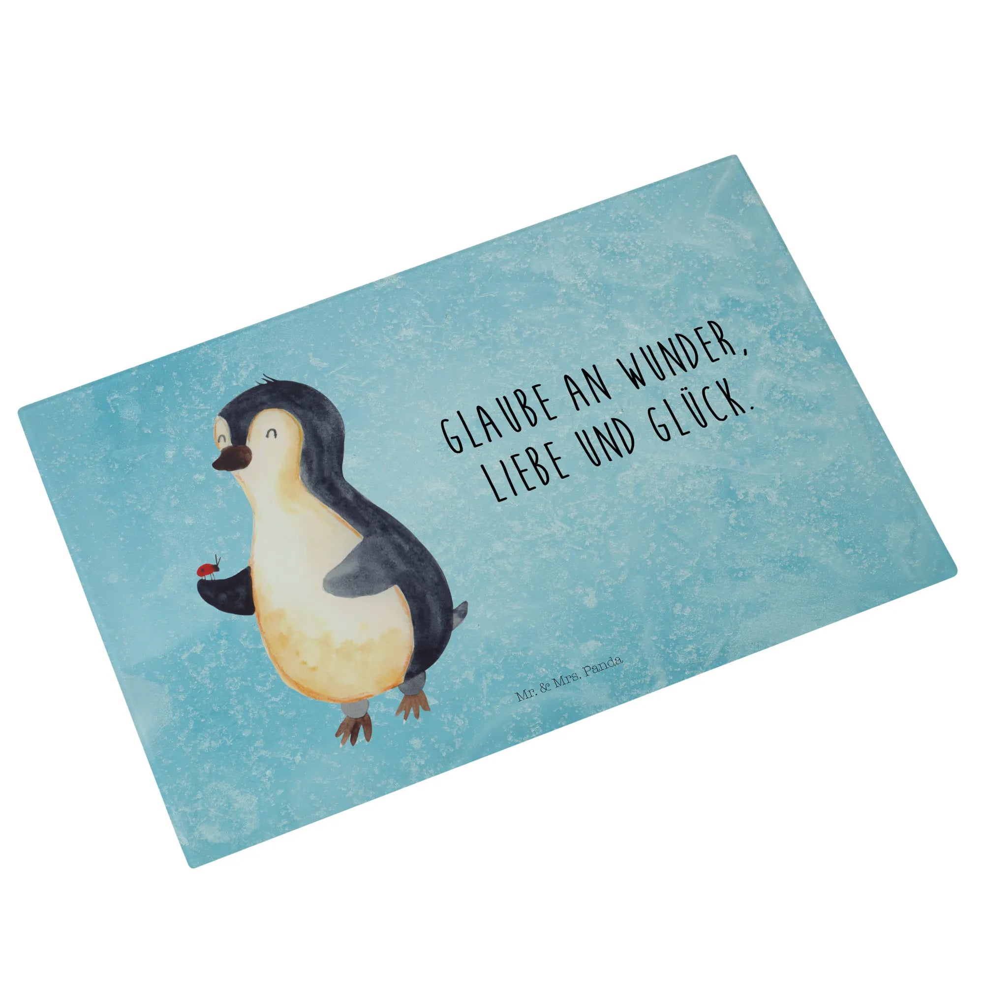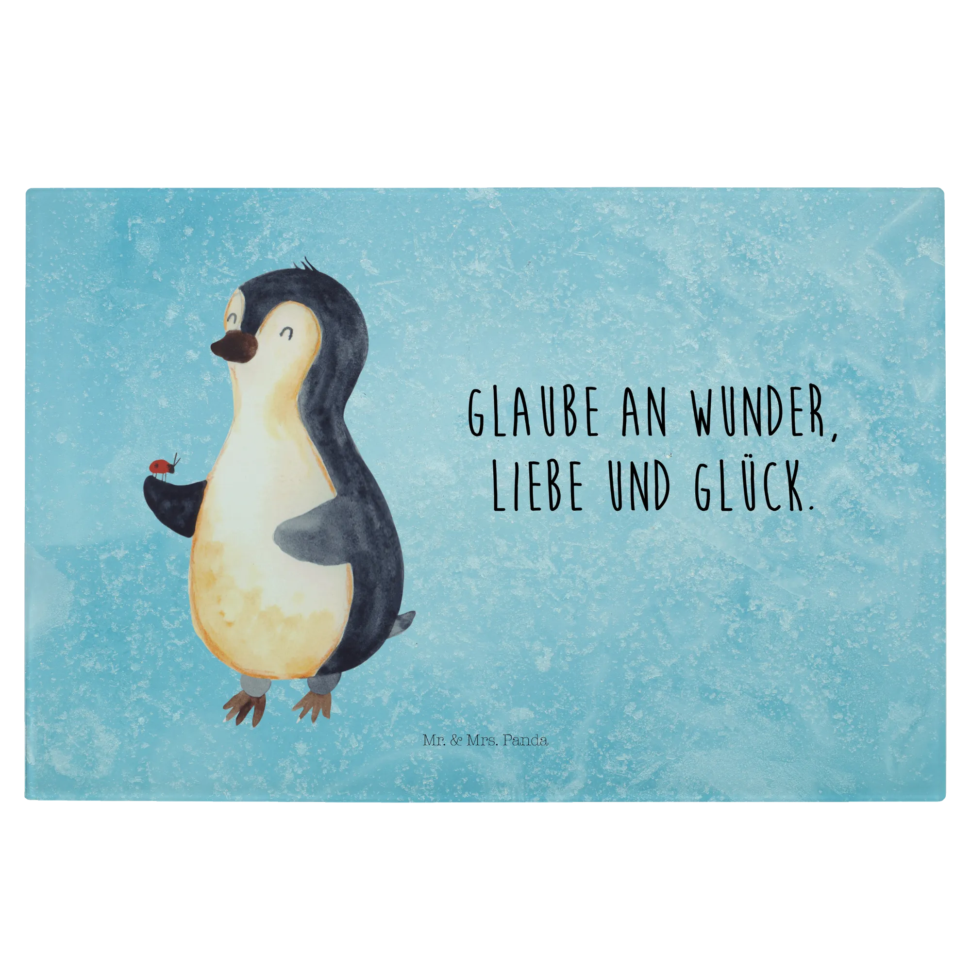 Das Medium Glas Schneidbrett mit dem süßen Pinguin Marienkäfer von Mr. & Mrs. Panda ist das perfekte Geschenk für alle, die Freude und Glück in ihrer Küche verbreiten möchten.
