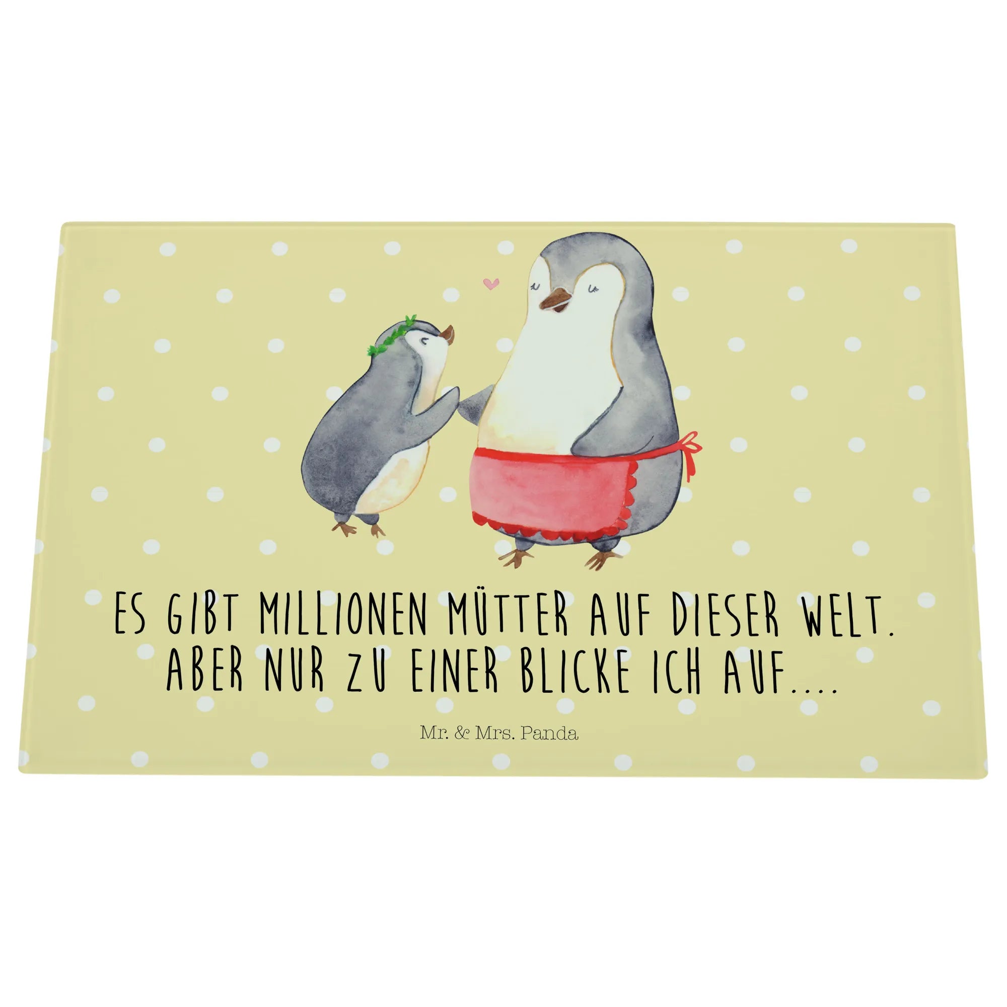 Das Medium Glas Schneidbrett mit dem süßen Motiv "Pinguin mit Kind" von Mr. & Mrs. Panda ist das perfekte Geschenk für alle Mamas, die du liebst – ob zum Geburtstag oder als besonderes Zeichen der Wertschätzung zum Muttertag. Dieses liebevoll gestaltete Schneidebrett zeigt eine herzliche Szene: Ein Pinguin in einer roten Schürze, der fürsorglich über sein Kind wacht, das einen kleinen grünen Kranz auf dem Kopf trägt. Über den beiden schwebt ein kleines Herz, das die besondere Bindung zwischen Mutter und Kind betont.