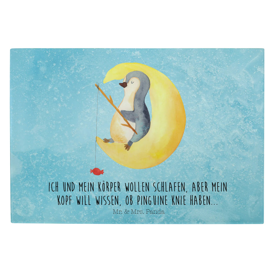 Glasschneidebrett Pinguin Mond - XL Glas Schneidbrett - mit Spruch - Eisblau