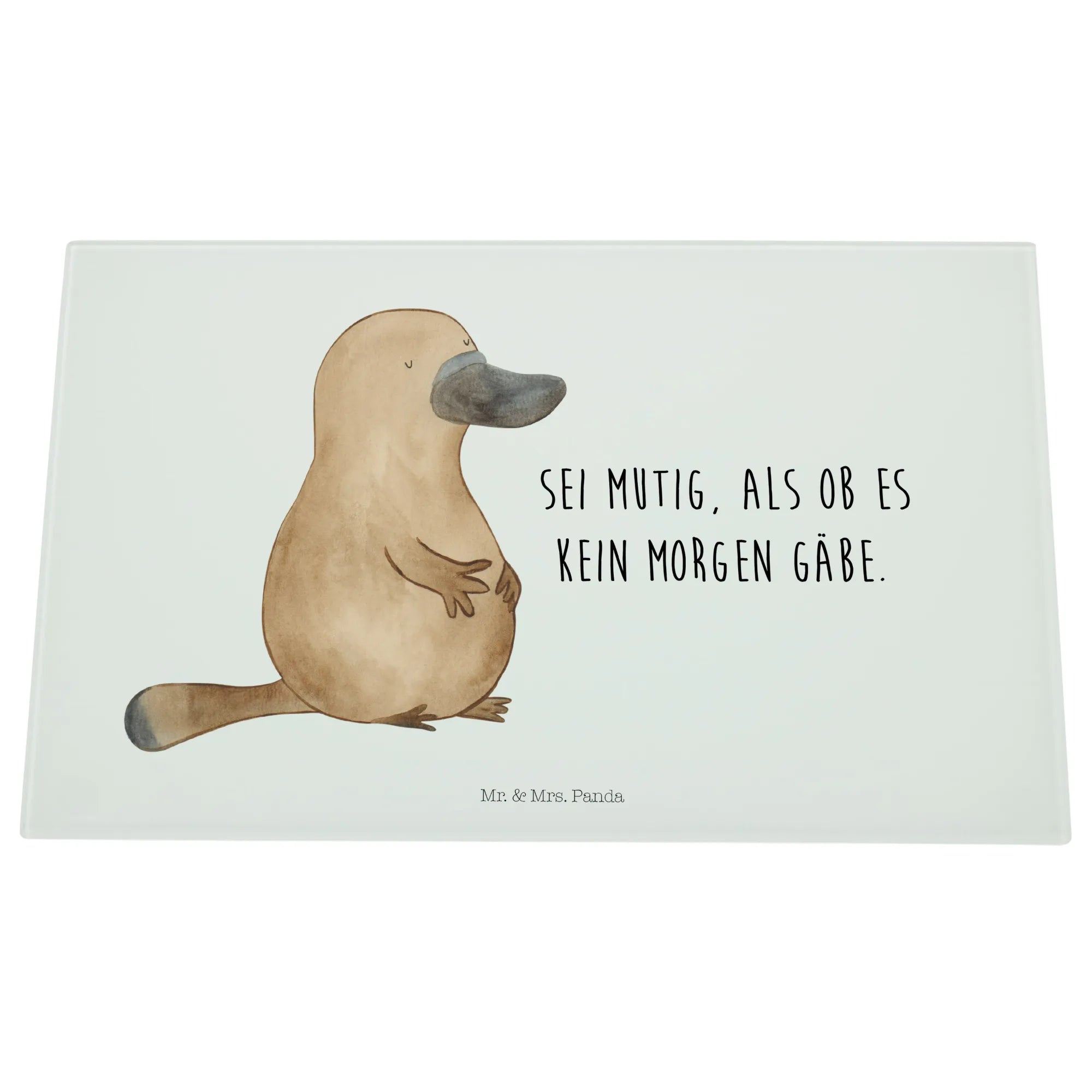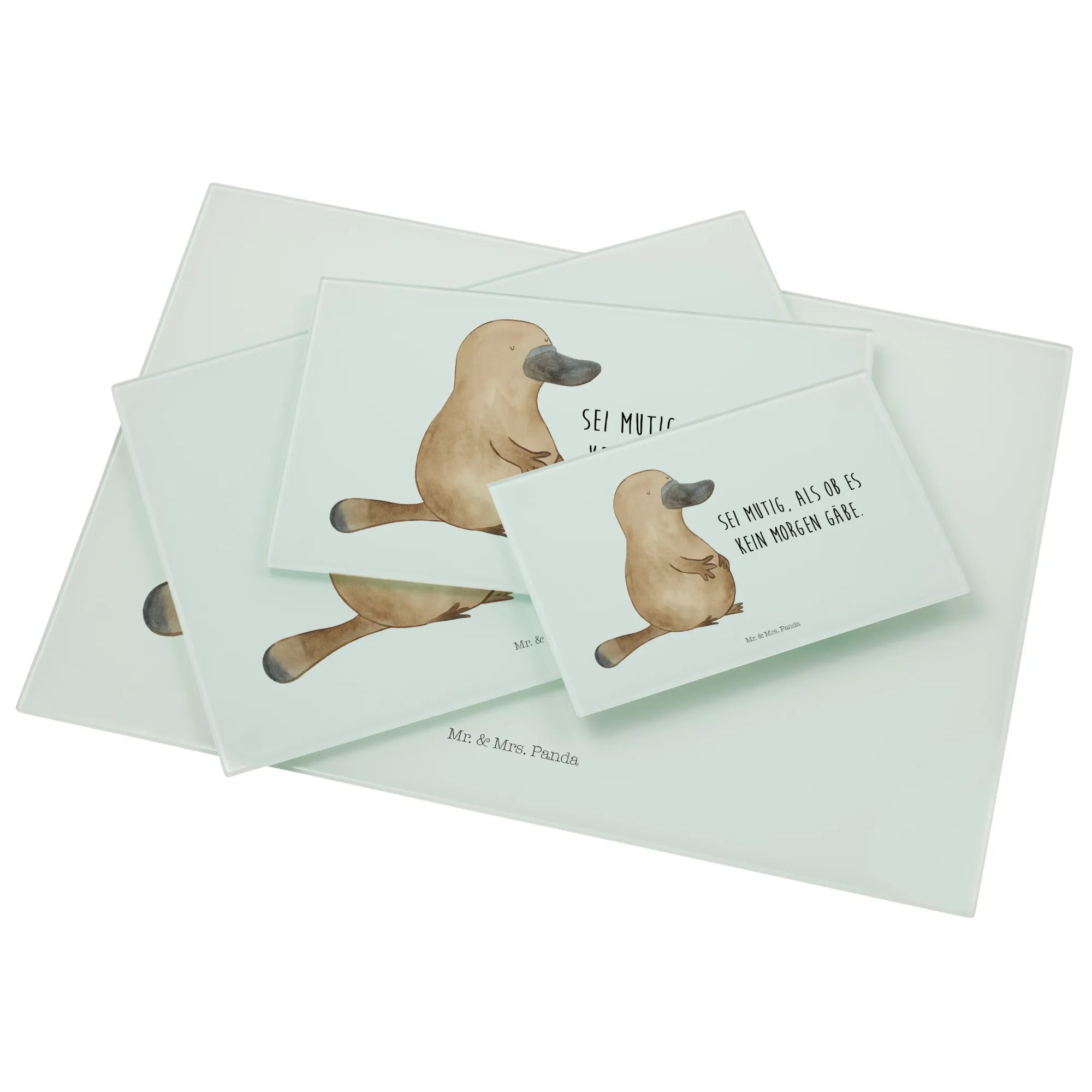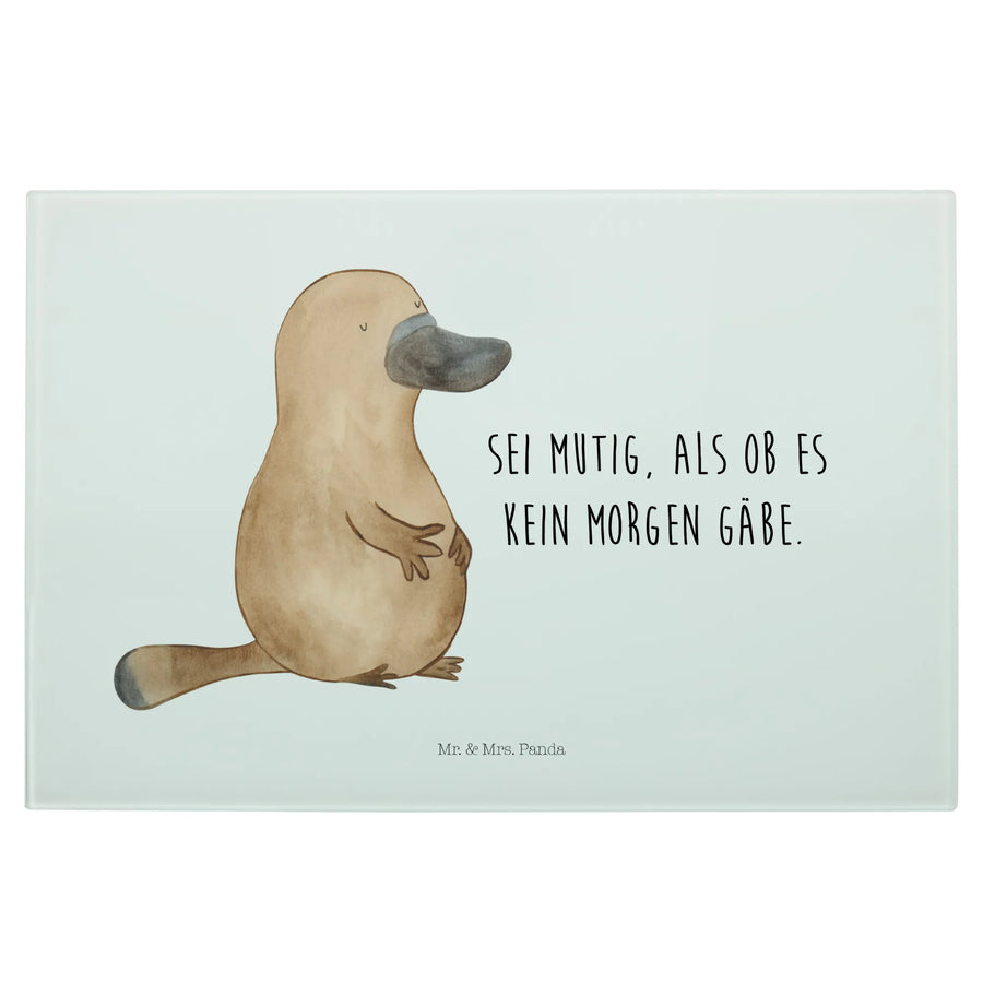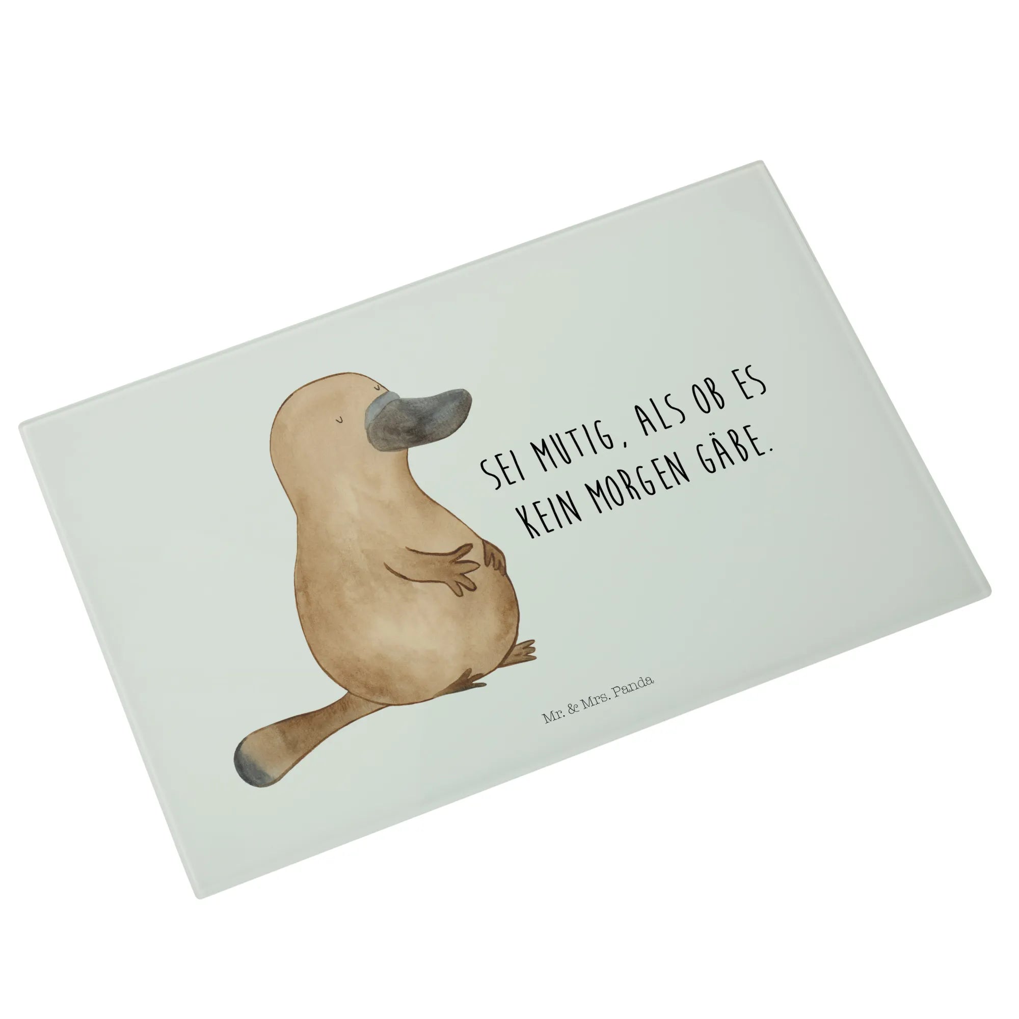 Glasschneidebrett Schnabeltier Mut - Medium Glas Schneidbrett - mit Spruch - Weiß