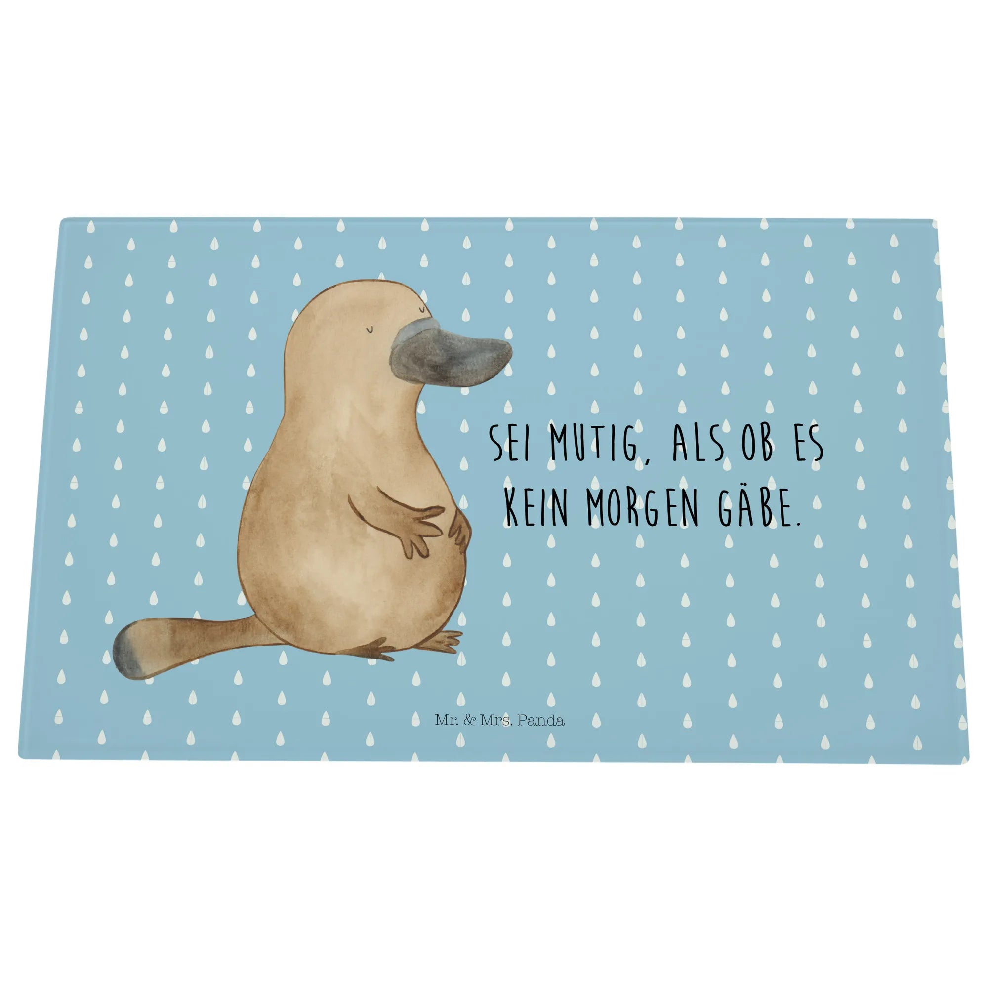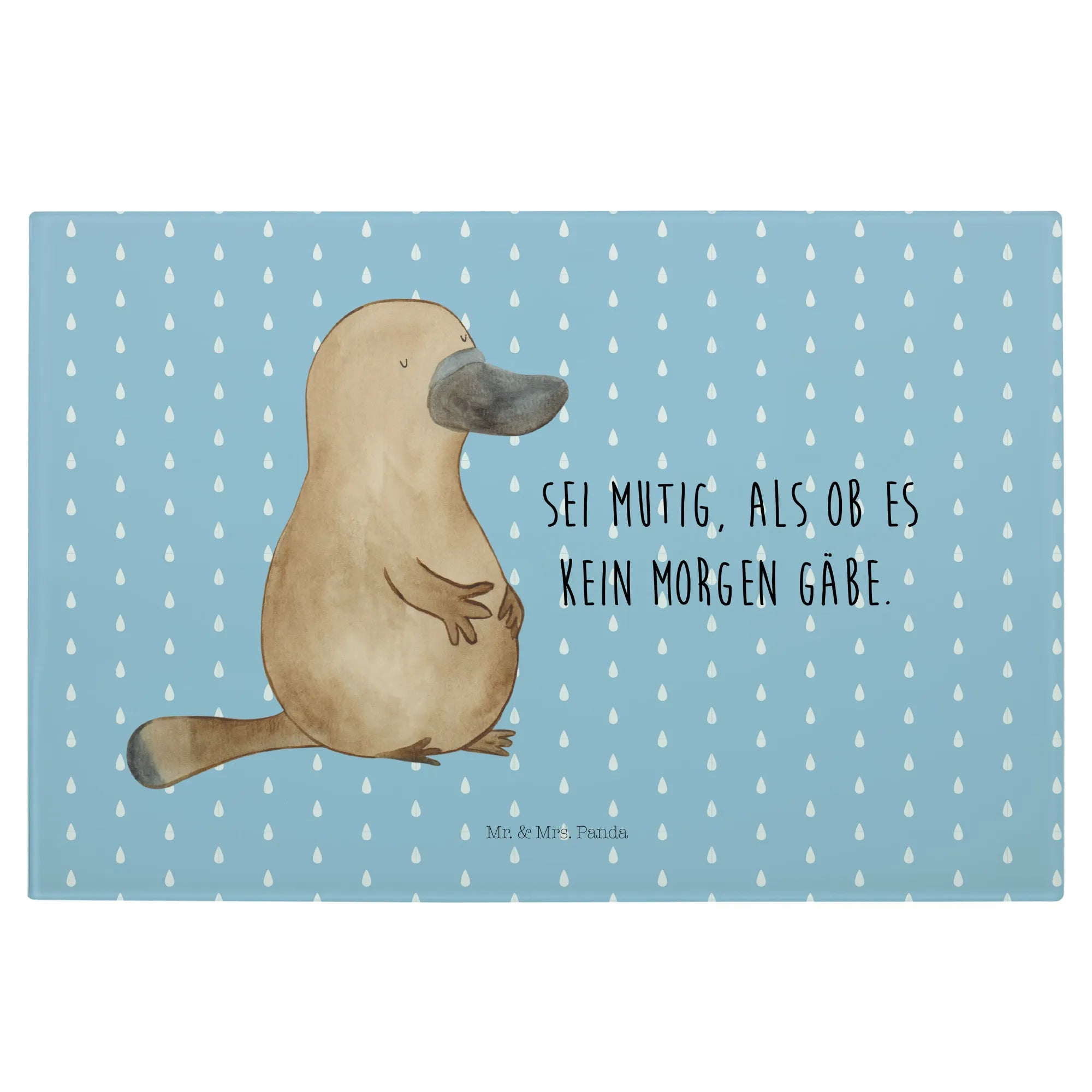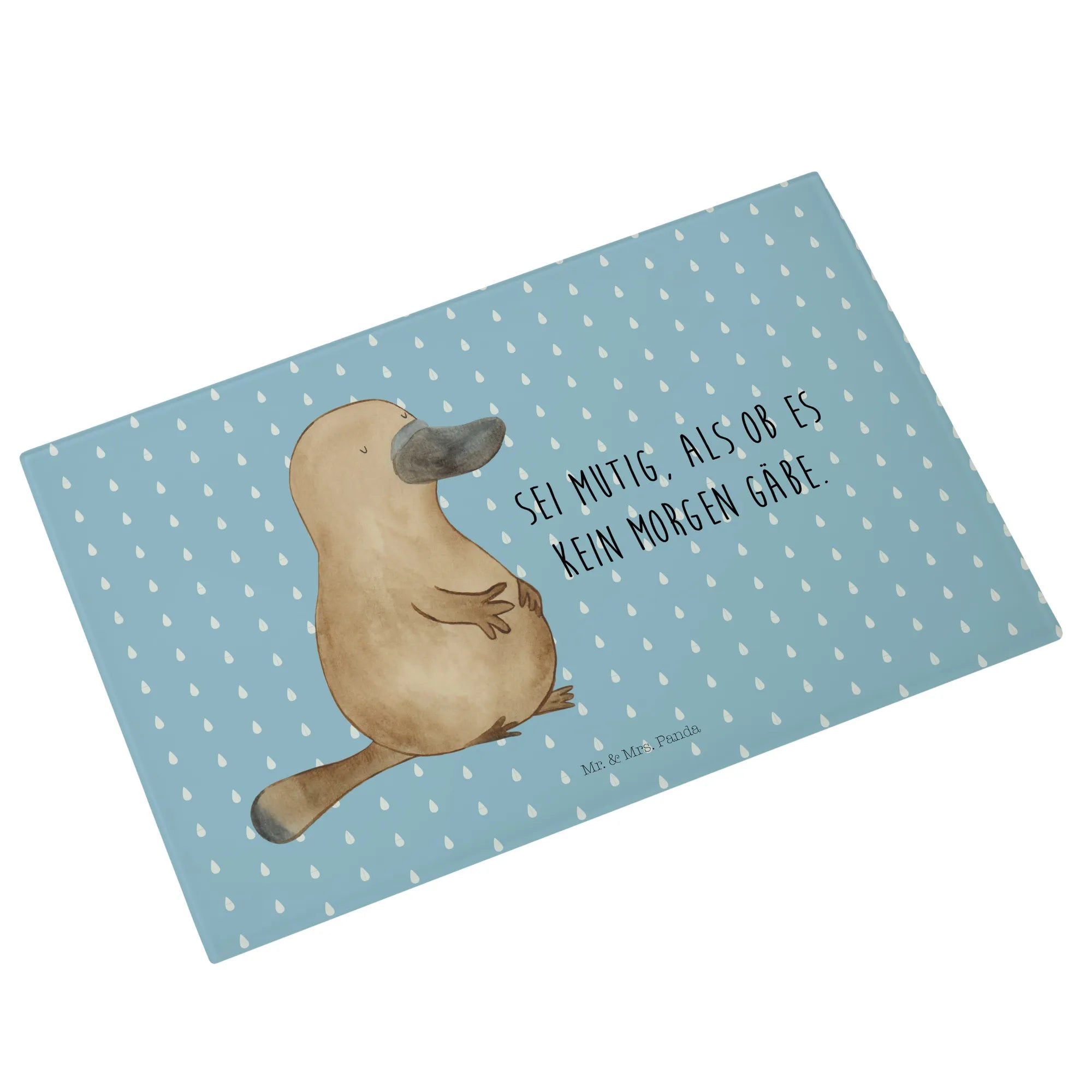 Glasschneidebrett Schnabeltier Mut - Medium Glas Schneidbrett - mit Spruch - Weiß