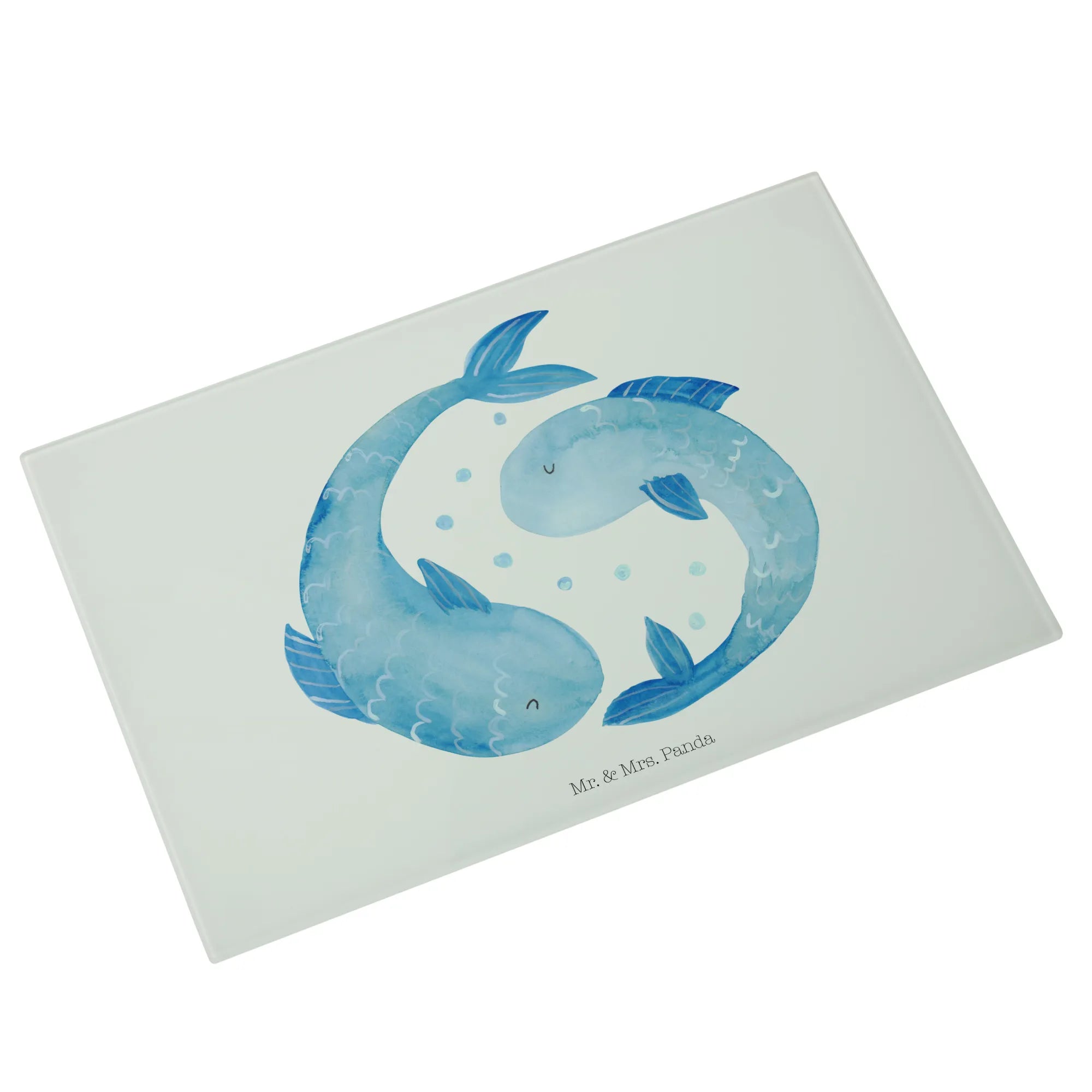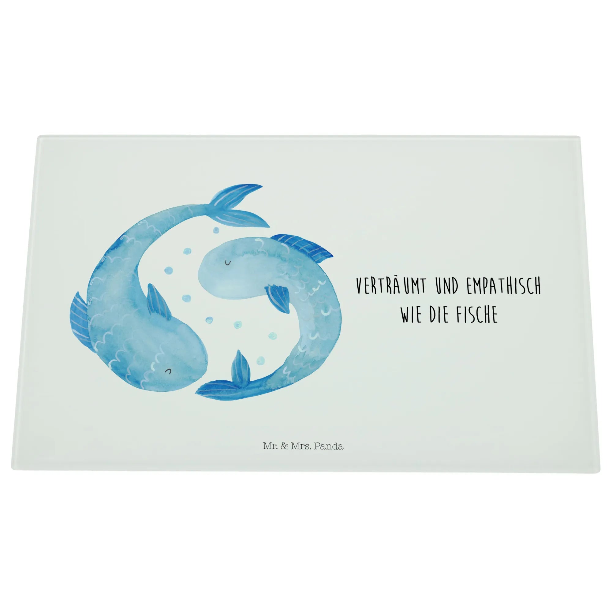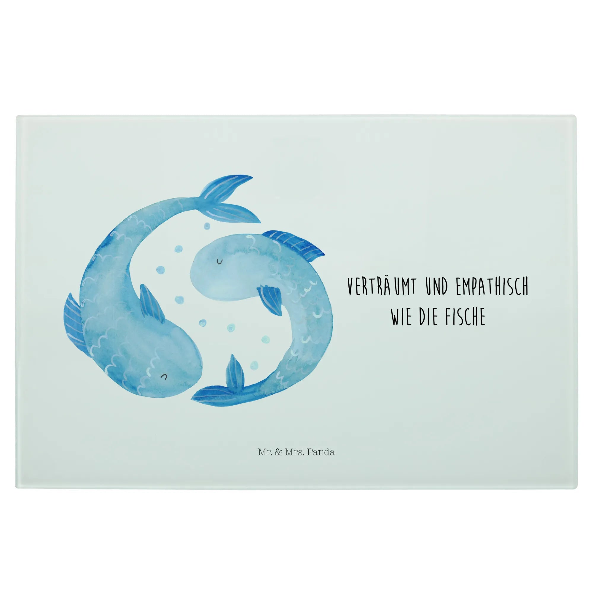 Das Medium Glas Schneidbrett mit dem süßen Motif Sternzeichen Fisch von Mr. & Mrs. Panda ist das perfekte Geschenk für alle, die im Februar oder März Geburtstag haben. Es ist nicht nur ein praktisches Küchenutensil, sondern auch ein ganz persönliches Geschenk, das die Empathie und Verträumtheit der Fische widerspiegelt.