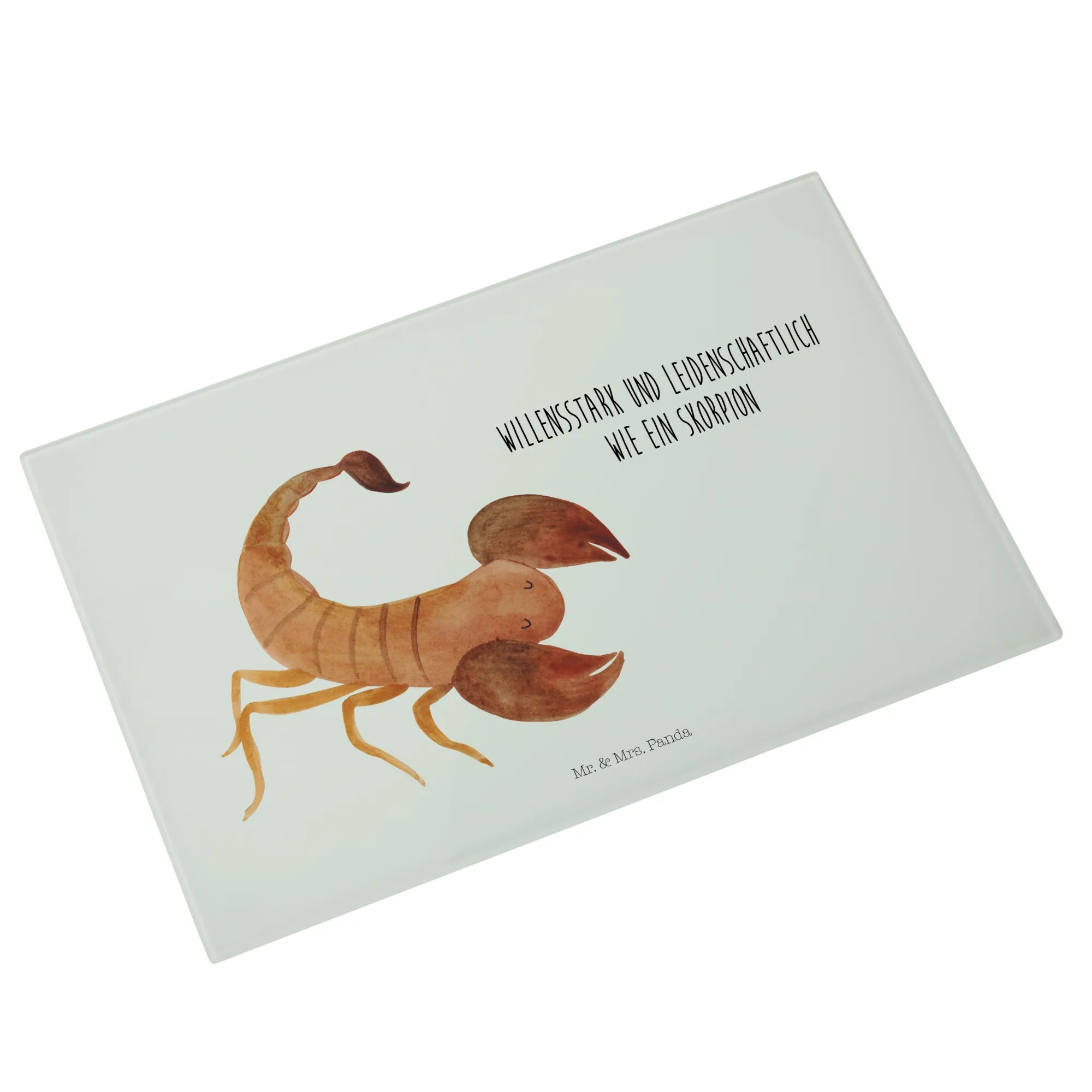 Entdecke das einzigartige XL Glas Schneidbrett mit dem besonderen Motiv des Sternzeichens Skorpion! Dieses hochwertige Schneidebrett von Mr. & Mrs. Panda ist nicht nur praktisch, sondern auch ein echter Blickfang für jede Küche. Die Liebe zum Detail zeigt sich in dem handgezeichneten Skorpion-Motiv, das mit dem schönen Slogan 'Willensstark und leidenschaftlich wie ein Skorpion' versehen ist. Ob zum Schneiden von frischem Gemüse oder als Frühstücksbrett für deine liebsten Beilagen – dieses Glas Schneidebrett ist vielseitig einsetzbar und bietet genügend Platz für all deine Kochkünste.