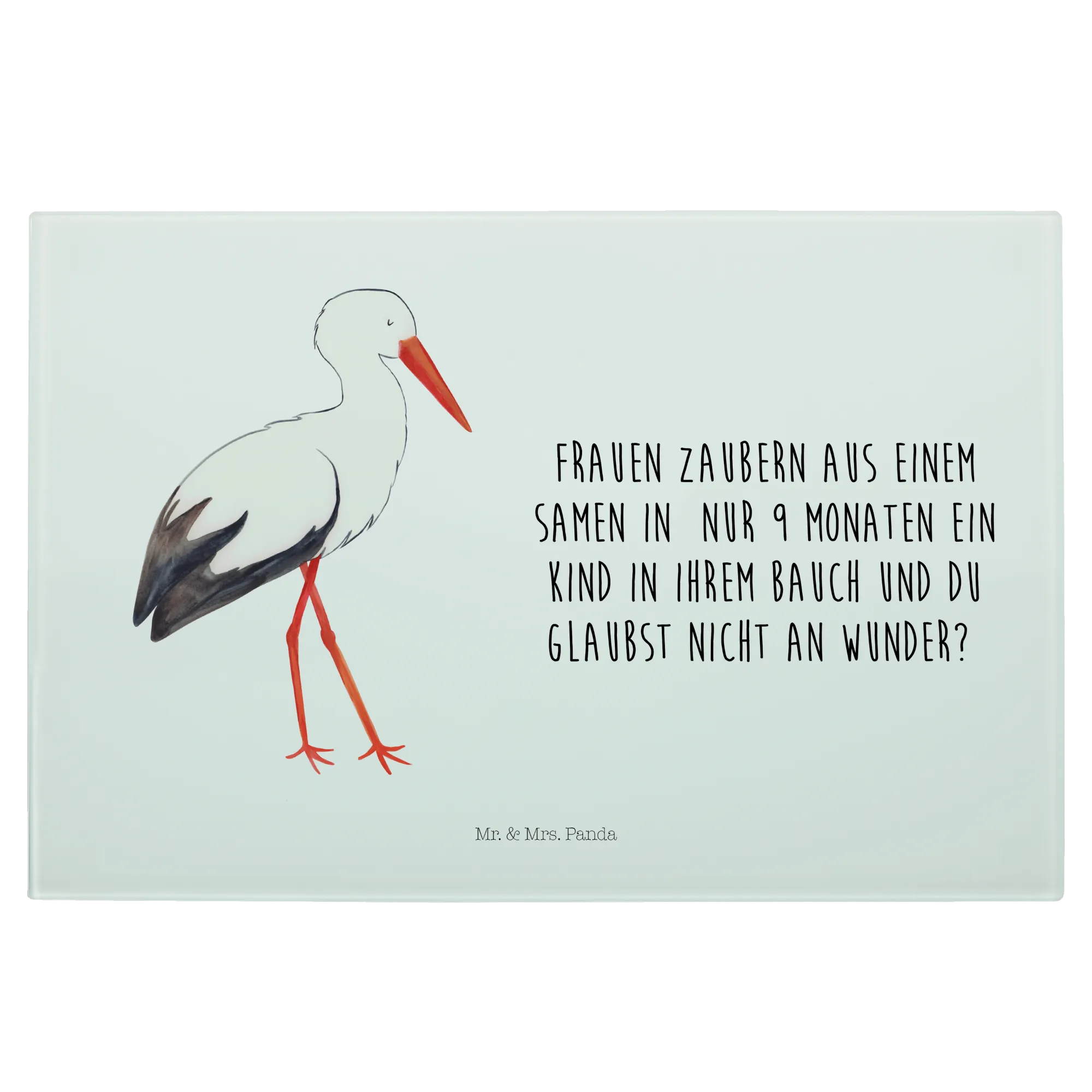 Das Medium Glas Schneidebrett mit dem süßen Storch-Motiv von Mr. & Mrs. Panda ist das perfekte Geschenk für werdende Mütter und frischgebackene Eltern. Es ist nicht nur ein praktisches Küchenaccessoire, sondern auch ein wunderschönes Dekorationselement, das Freude und Farbe in jede Küche bringt. Wenn du auf der Suche nach einem besonderen Geschenk zur Geburt oder zur Babyshower bist, dann ist dieses Schneidebrett genau das Richtige! Mit einem charmanten Storch, der ein Baby in einem Tuch wiegt, bringt es gute Laune und zaubert jedem ein Lächeln ins Gesicht. Der Slogan „Frauen zaubern aus einem Samen in nur 9 Monaten ein Kind in ihrem Bauch und du glaubst nicht an Wunder?“ macht dieses Produkt zu etwas ganz Besonderem und regt zum Schmunzeln an.