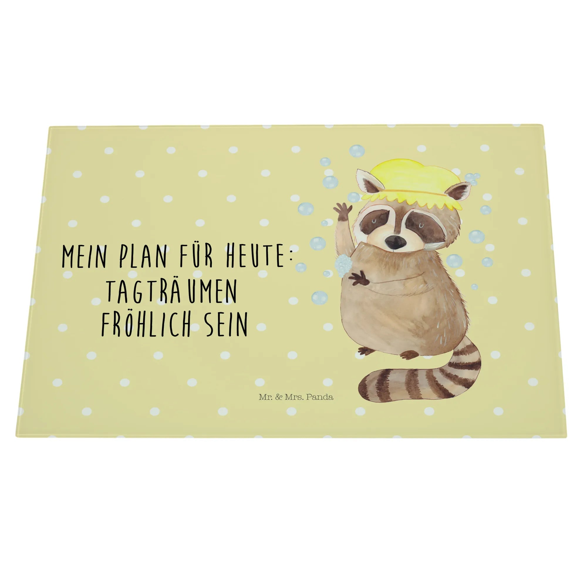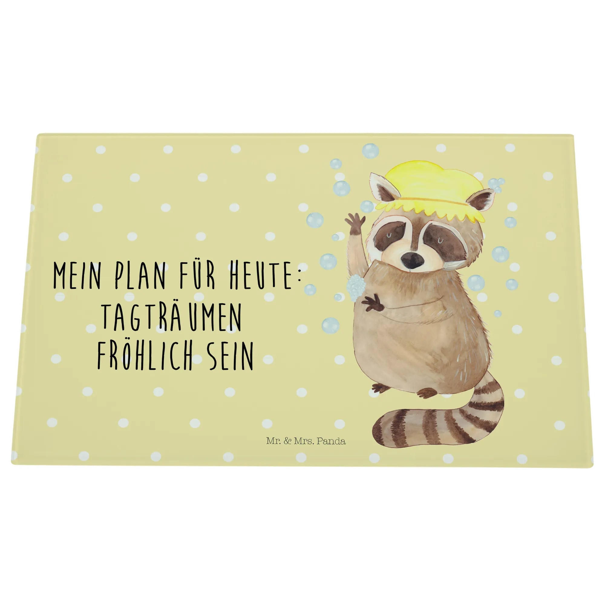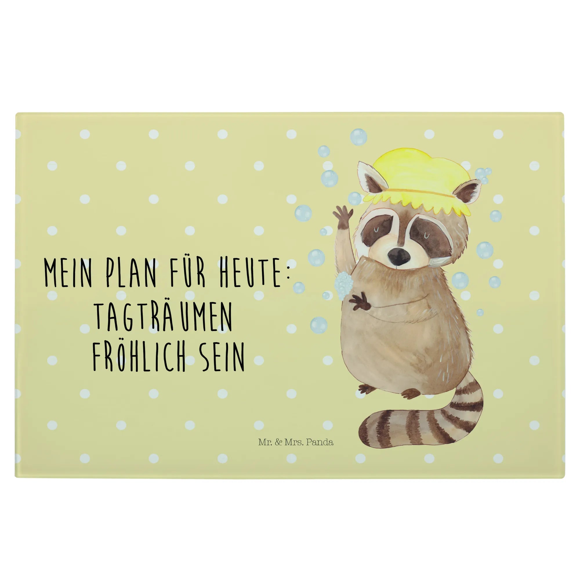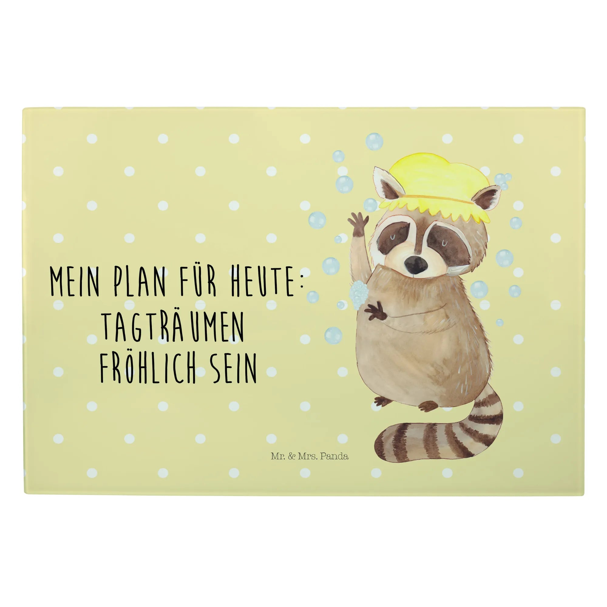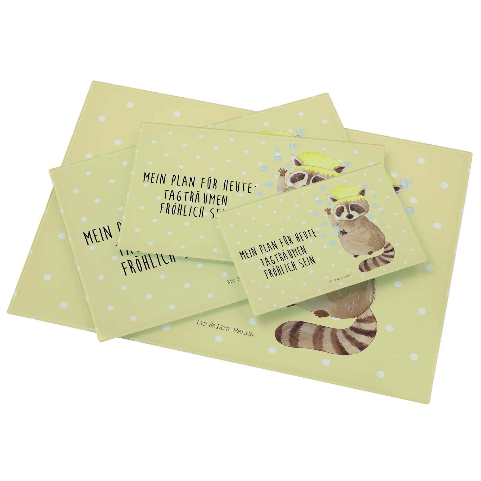 Das Medium Glas Schneidebrett mit dem fröhlichen Waschbär-Motiv von Mr. & Mrs. Panda ist der perfekte Begleiter für all deine Küchenabenteuer! Mit dem liebevoll gestalteten Slogan "Mein Plan für heute: Tagträumen und fröhlich sein." bringt unser Schneidebrett eine ordentliche Portion gute Laune in deine Küche.
