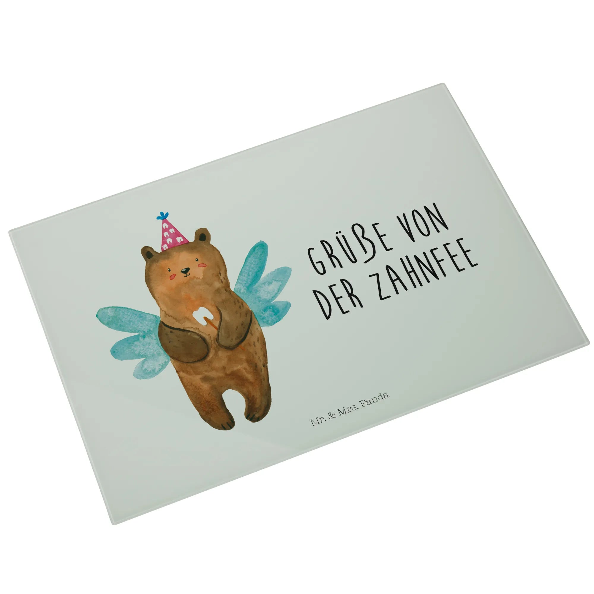 Das XL Glas Schneidbrett mit dem süßen Motiv Zahnfee Bär von Mr. & Mrs. Panda ist das perfekte Geschenk für all diejenigen, die die Magie der Kindheit in ihrer Küche bewahren möchten.