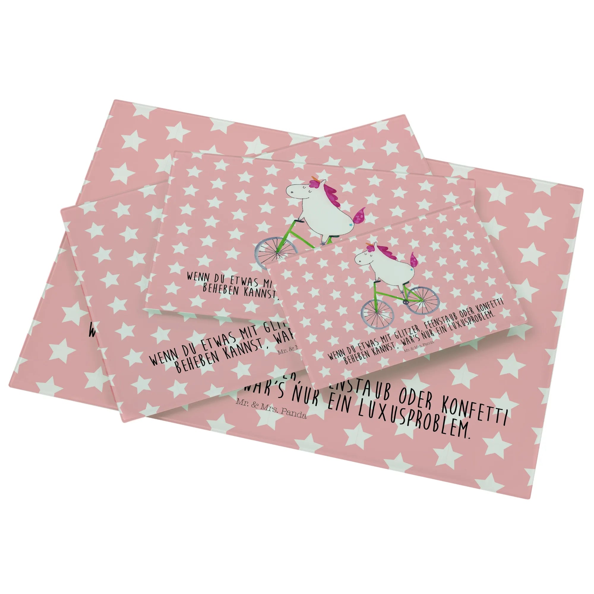 Du bist auf der Suche nach dem perfekten Geschenk für eine Einhorn-Liebhaberin oder einen Einhorn-Liebhaber? Dann ist das Medium Glas Schneidbrett mit dem zauberhaften Motiv des Einhorn Radfahrers aus der Einhorn - Kollektion genau das Richtige! Dieses einzigartige und stabile Schneidebrett von Mr. & Mrs. Panda bringt nicht nur Glitzer und Feenstaub in die Küche, sondern auch eine Portion Lebensfreude.