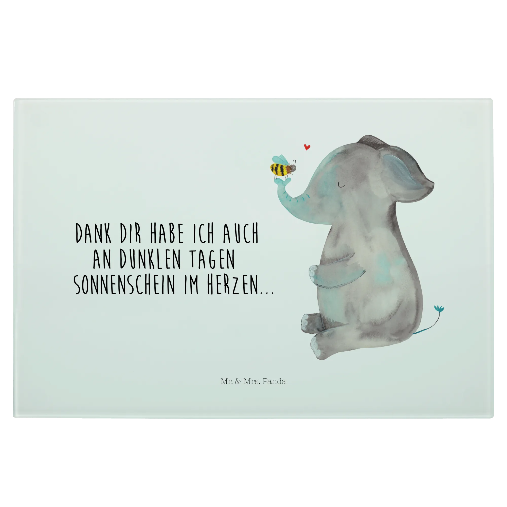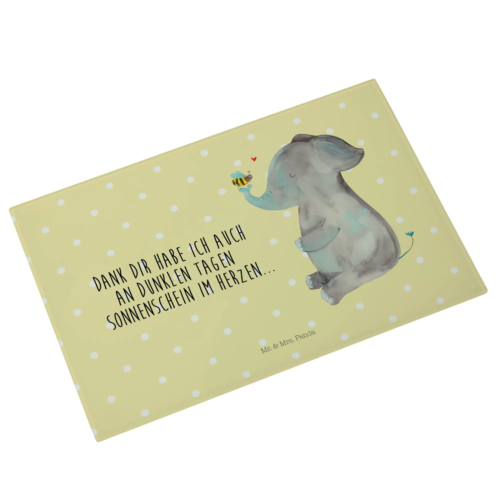 Das Medium Glas Schneidbrett mit dem bezaubernden Motiv von Elefant und Biene aus der Small World Kollektion von Mr. & Mrs. Panda ist das perfekte Geschenk für all jene, die kleine Freuden des Lebens schätzen! 🌟 Egal ob zum Jahrestag, für den Heiratsantrag oder einfach als Liebesbeweis, dieses stylische Schneidebrett vermittelt durch seine süße Botschaft 'Dank dir habe ich auch an dunklen Tagen Sonnenschein im Herzen...' Liebe und Wertschätzung.