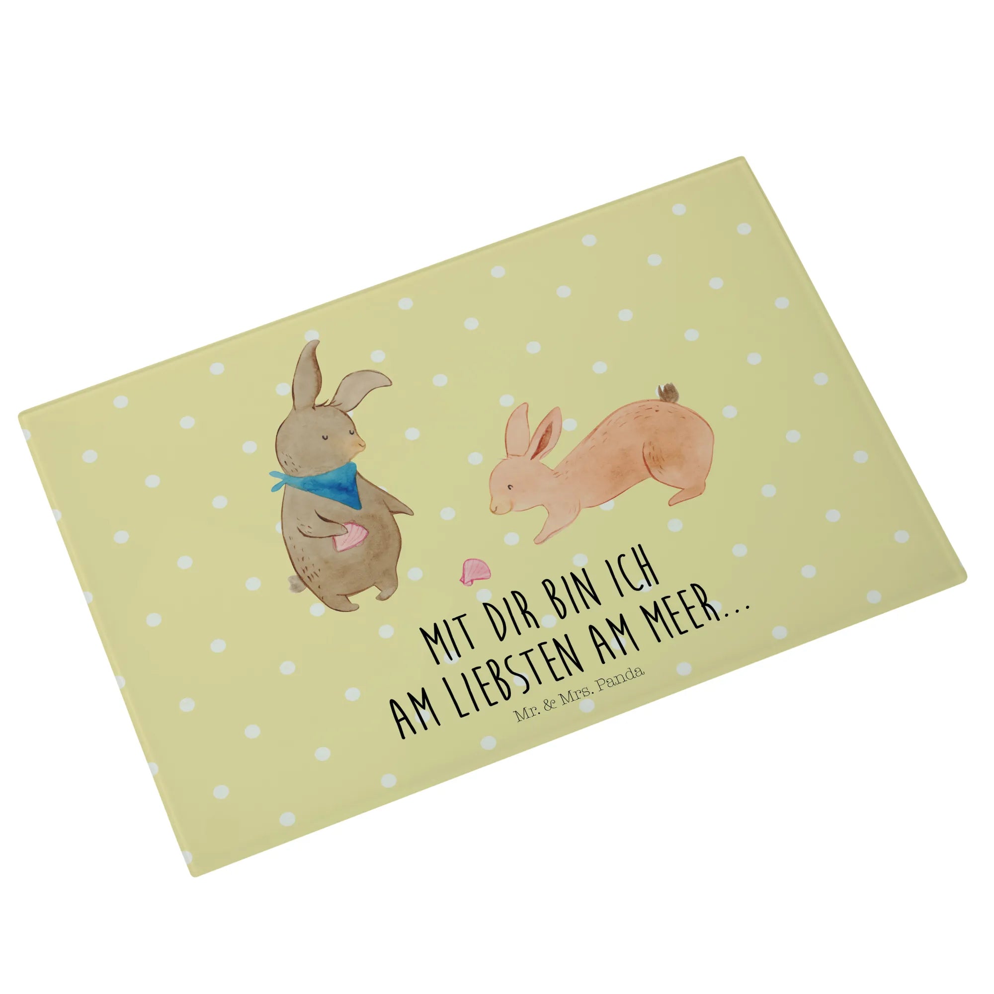 Das Medium Glas Schneidbrett mit dem zuckersüßen Hasen Muschel-Motiv von Mr. & Mrs. Panda ist die perfekte Geschenkidee für alle, die das Besondere lieben! Dieses hochwertige Schneidbrett bringt nicht nur Freude in die Küche, sondern zaubert auch ein Lächeln auf die Gesichter Deiner Liebsten.