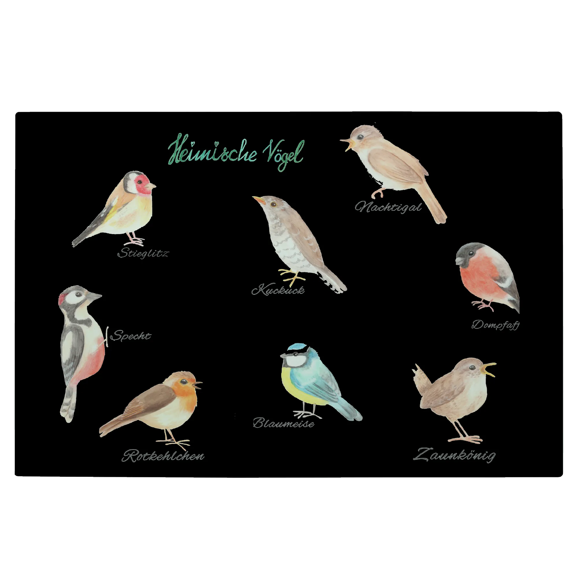 Das Motiv 'Heimische Vögel' von Mrs. Panda ist eine wunderbare Hommage an die Tierwelt, die uns umgibt. Jeder Aquarellvogel, vom Stieglitz bis zum Rotkehlchen, ist einzigartig eingefangen und trägt die Farben des Lebens in sich. Dieses Kunstwerk erinnert uns daran, wie wichtig es ist, die Schönheit der Natur in unserem Alltag zu bewahren. Während wir den Kuckuck oder den Specht beobachten, spüren wir die Verbindung zur Natur, die uns liegt. Weniger Stress, mehr Augenblicke der Glückseligkeit. Wir laden Dich ein, mit "Heimische Vögel - Ein Stück Natur in deinem Zuhause!" den Zauber der Natur in dein Leben zu lassen und deine Räume in einen Rückzugsort zu verwandeln.