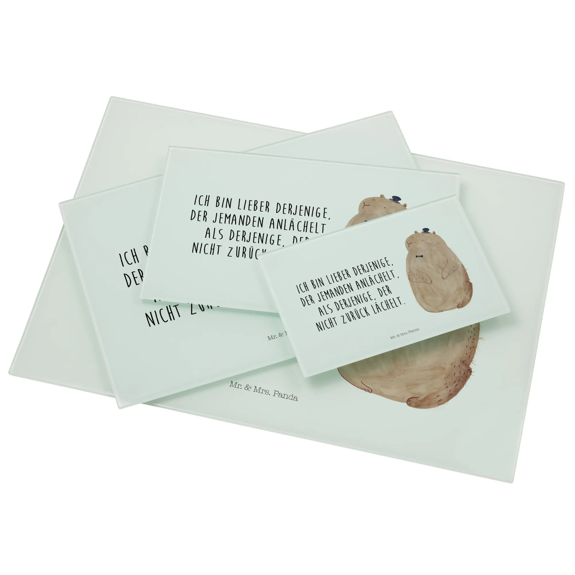Dein perfekter Begleiter in der Küche – das XL Glas Schneidebrett mit dem süßen Murmeltier-Motiv von Mr. & Mrs. Panda! Dieses einzigartige und stabile Schneidbrett ist nicht nur praktisch, sondern bringt auch einen Hauch von Fröhlichkeit in deine Küche.