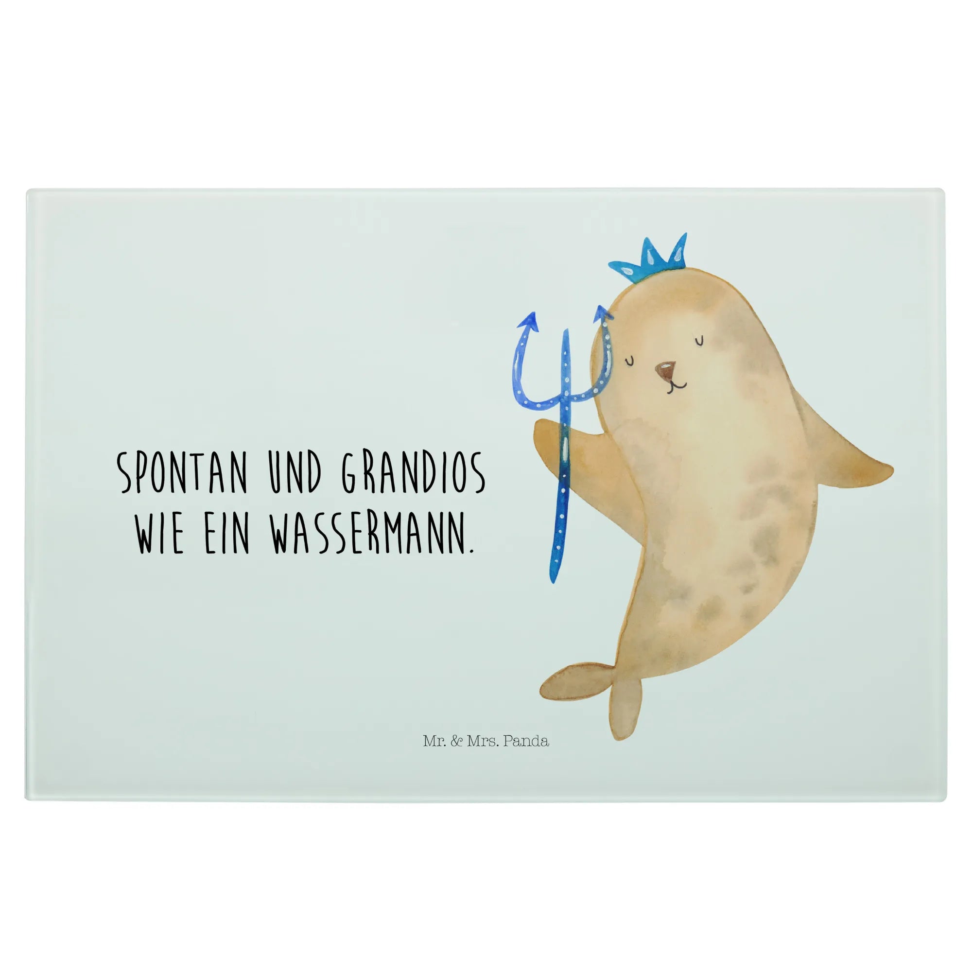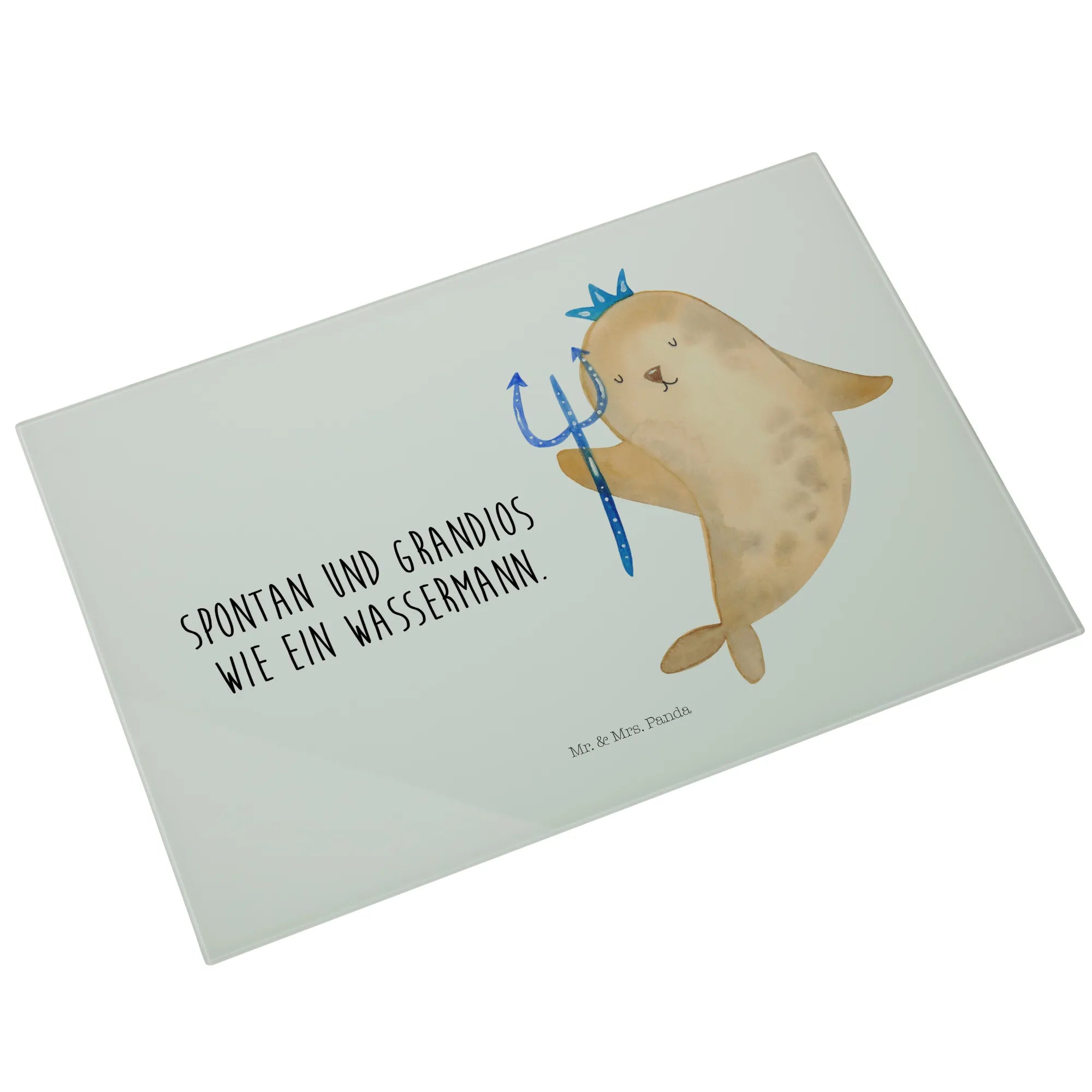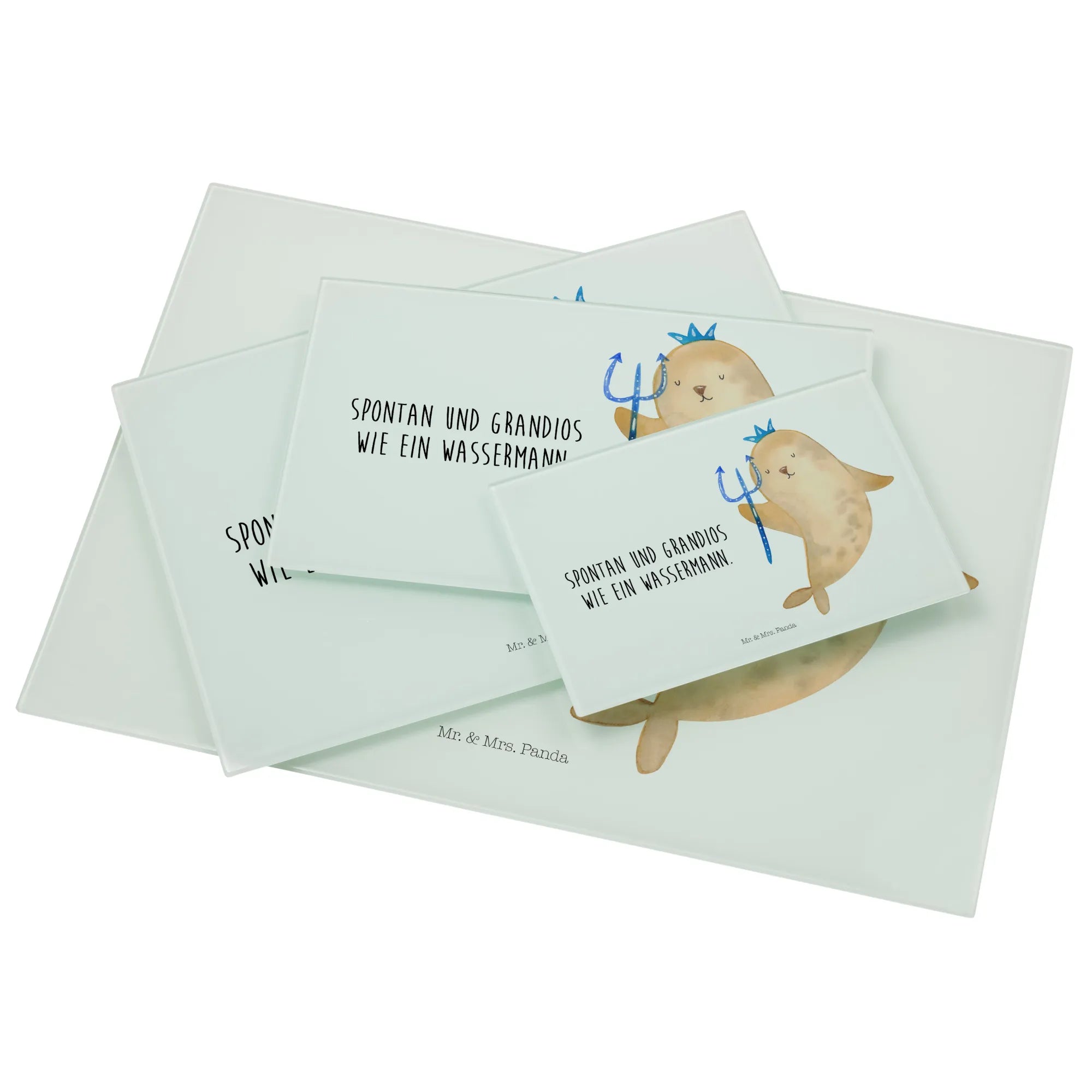Medium Glas Schneidebrett „Sternzeichen Wassermann“ von Mr. & Mrs. Panda