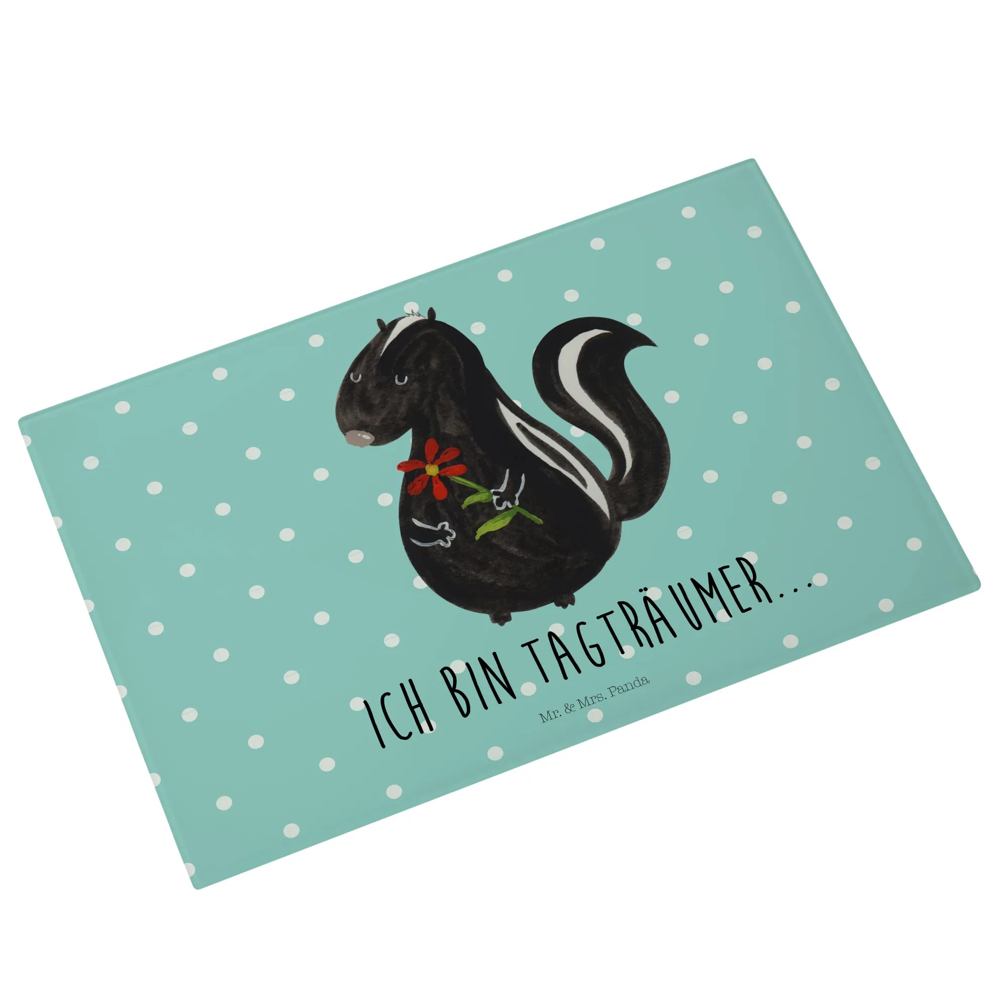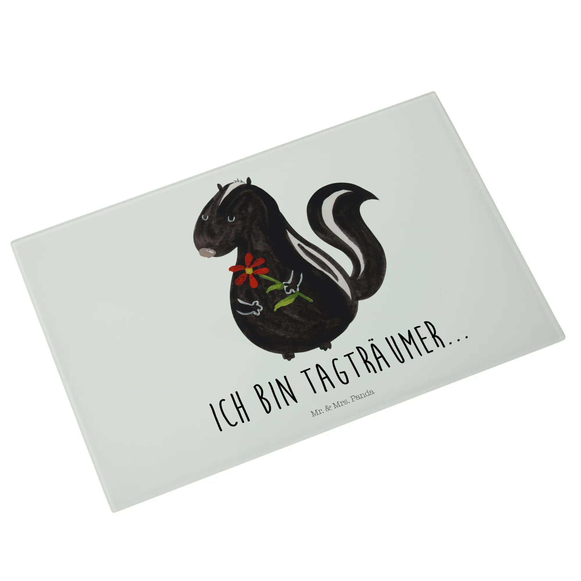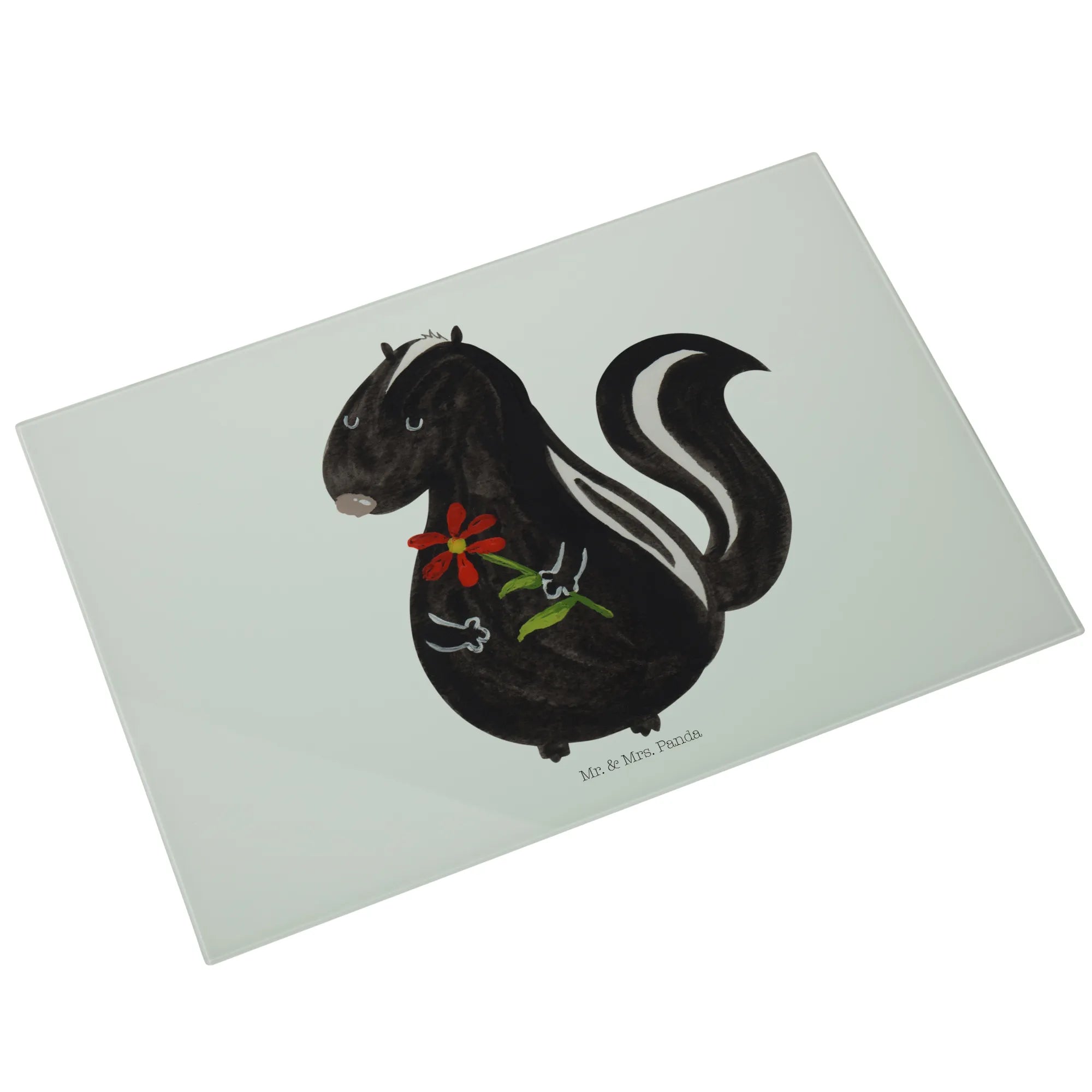 Entdecke das zauberhafte Medium Glas Schneidbrett mit dem wunderschönen Stinktier Blume Motiv aus der exklusiven Stinktier-Kollektion von Mr. & Mrs. Panda! Dieses Schneidebrett ist nicht nur praktisch, sondern auch ein echter Blickfang in deiner Küche.