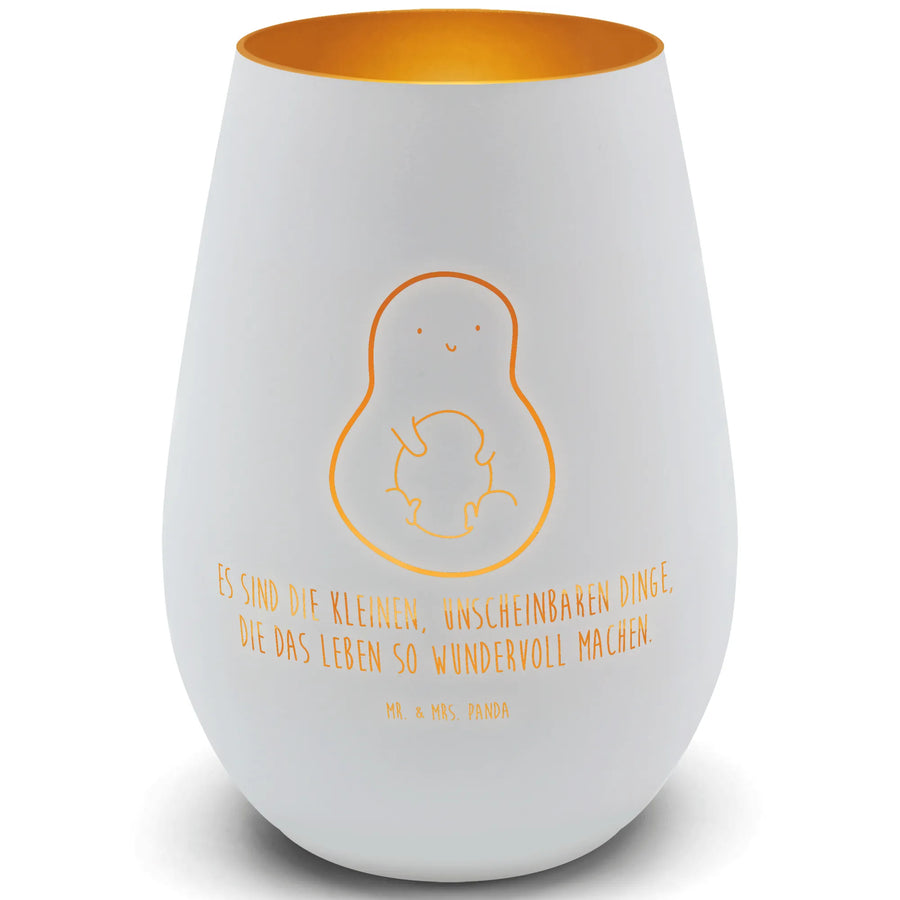 Das personalisierte Gold Windlicht von Mr. & Mrs. Panda ist nicht nur ein schlichtes Wohnaccessoire, sondern ein Statement voller Liebe und Persönlichkeit. Mit dem bezaubernden Motiv einer Avocado, die ihren Kern umarmt, strahlt dieses Windlicht eine fröhliche und positive Energie aus.