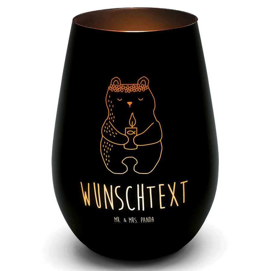 Gold Windlicht Personalisiert Bär Kommunion - Schwarz