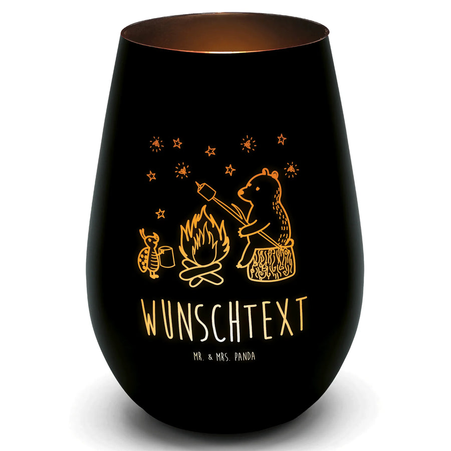 Gold Windlicht Personalisiert Bär & Marienkäfer Lagerfeuer - Schwarz