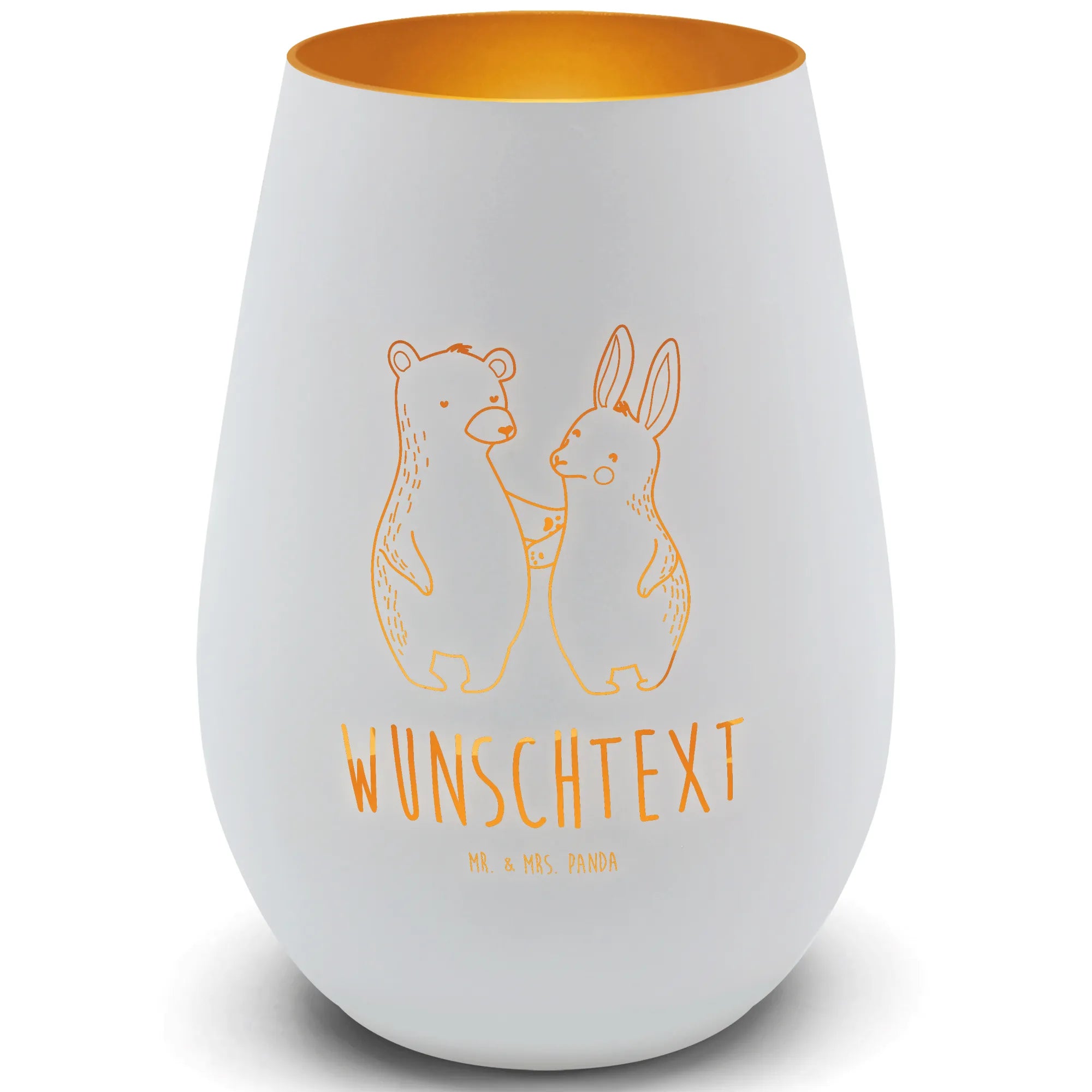 Gold Windlicht Personalisiert Bär und Hase Umarmen – Mr. & Mrs. Panda
