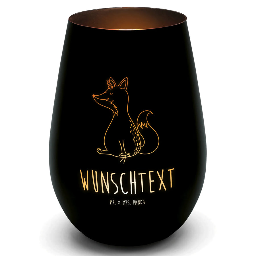 Gold Windlicht Personalisiert Einhorn Fuchs - Schwarz