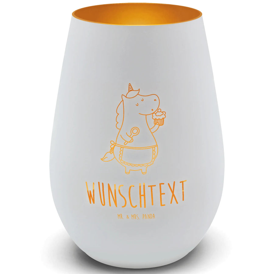 Das Gold Windlicht Personalisiert mit dem zauberhaften Motiv 'Einhorn Küchenfee' von Mr. & Mrs. Panda ist das perfekte Geschenk für alle Einhorn-Liebhaber und Backbegeisterte! Es sorgt nicht nur für eine gemütliche und romantische Atmosphäre, sondern ist auch ein echter Hingucker in jedem Raum.