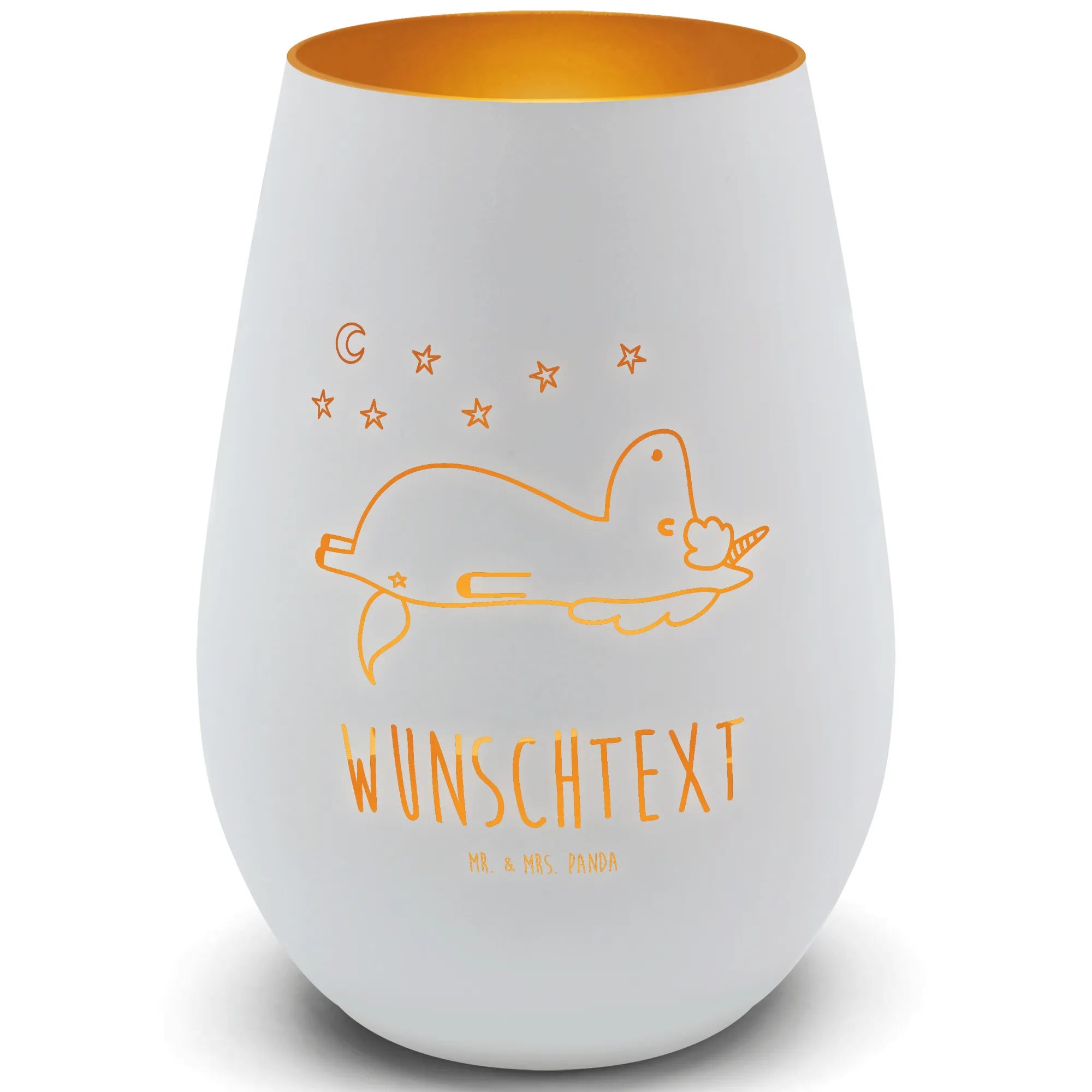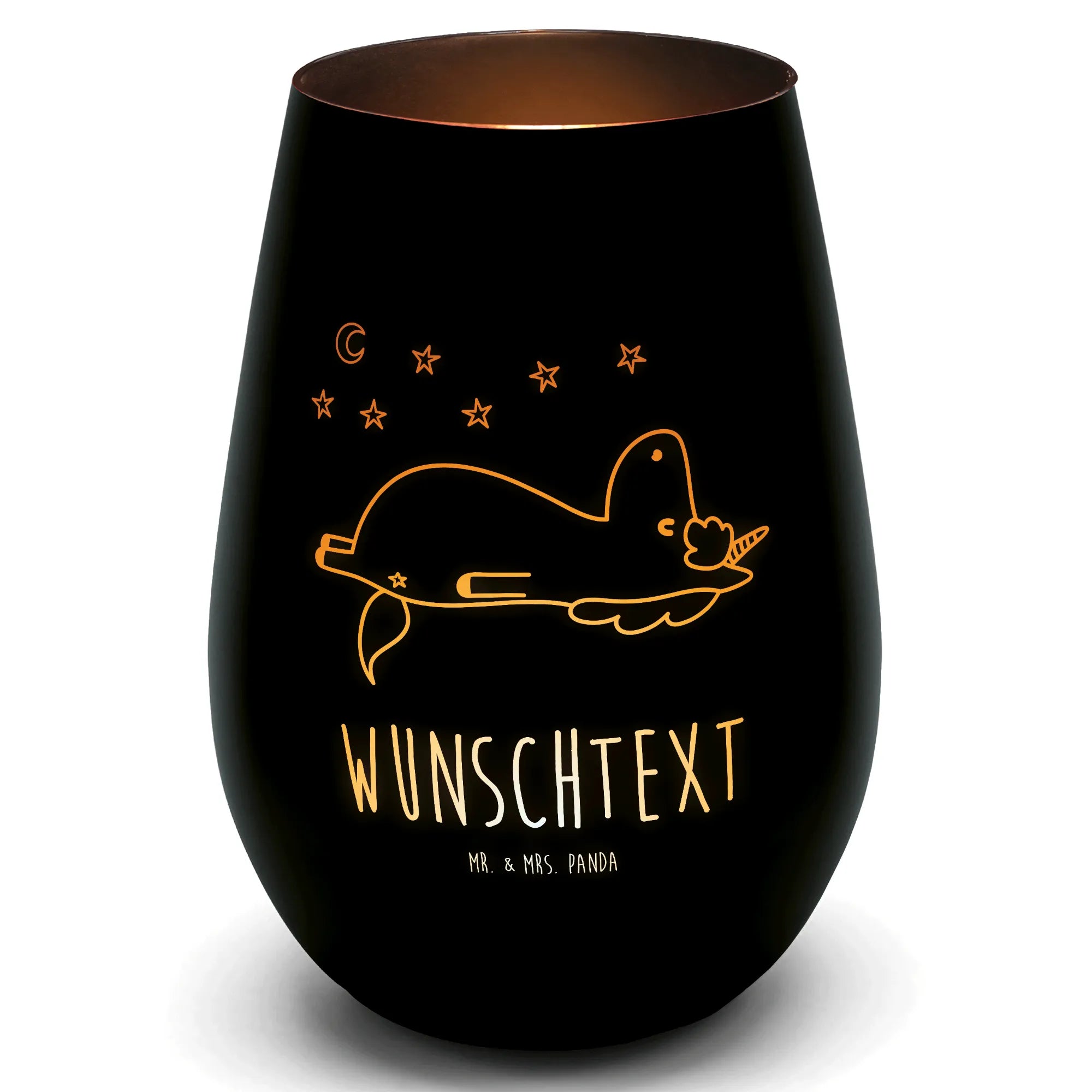 Das personalisierte Gold Windlicht mit dem zauberhaften Einhorn-Motiv und dem Sternenhimmel von Mr. & Mrs. Panda ist das perfekte Geschenk für alle Liebhaber von Magie und Fantasie!