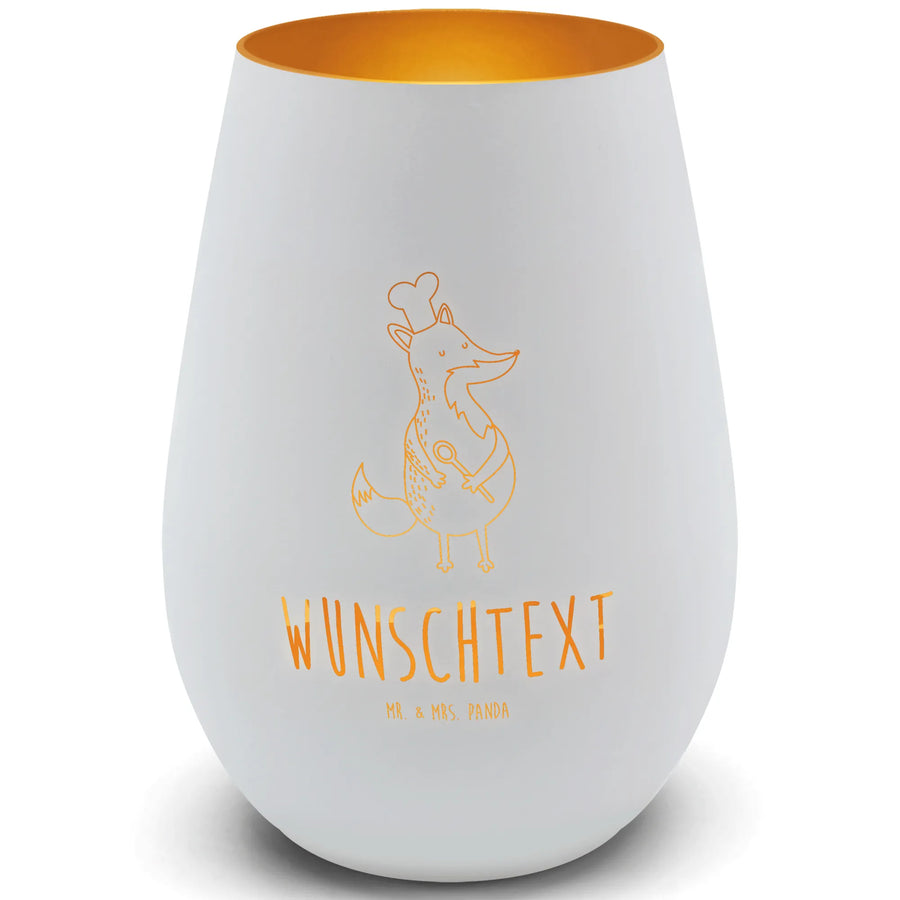 Gold Windlicht Personalisiert Fuchs Koch - Weiß