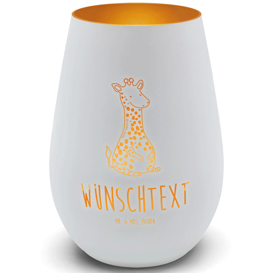 Gold Windlicht Personalisiert Giraffe Zufrieden - Weiß